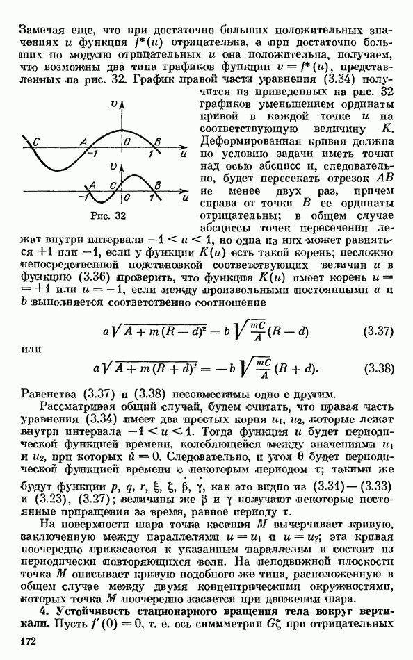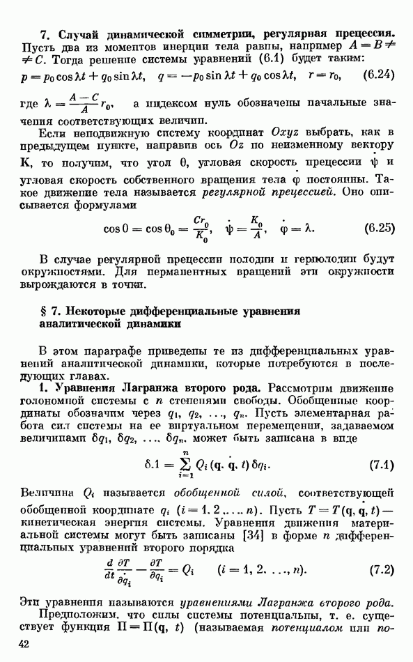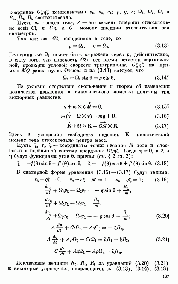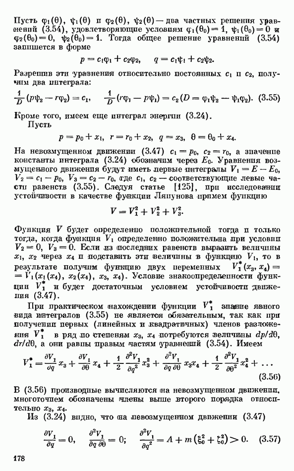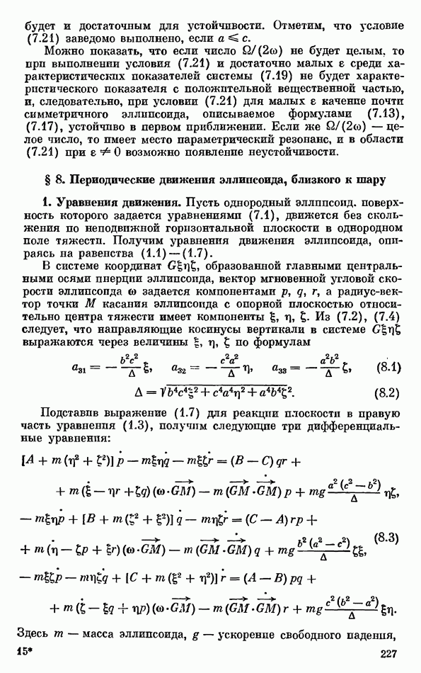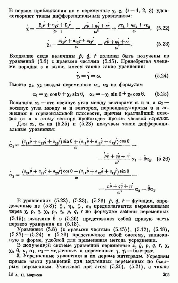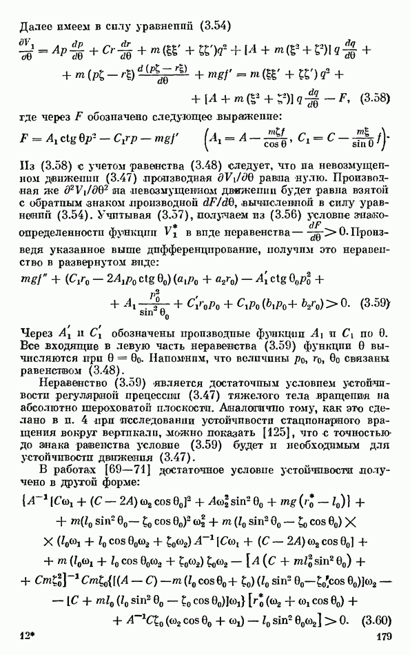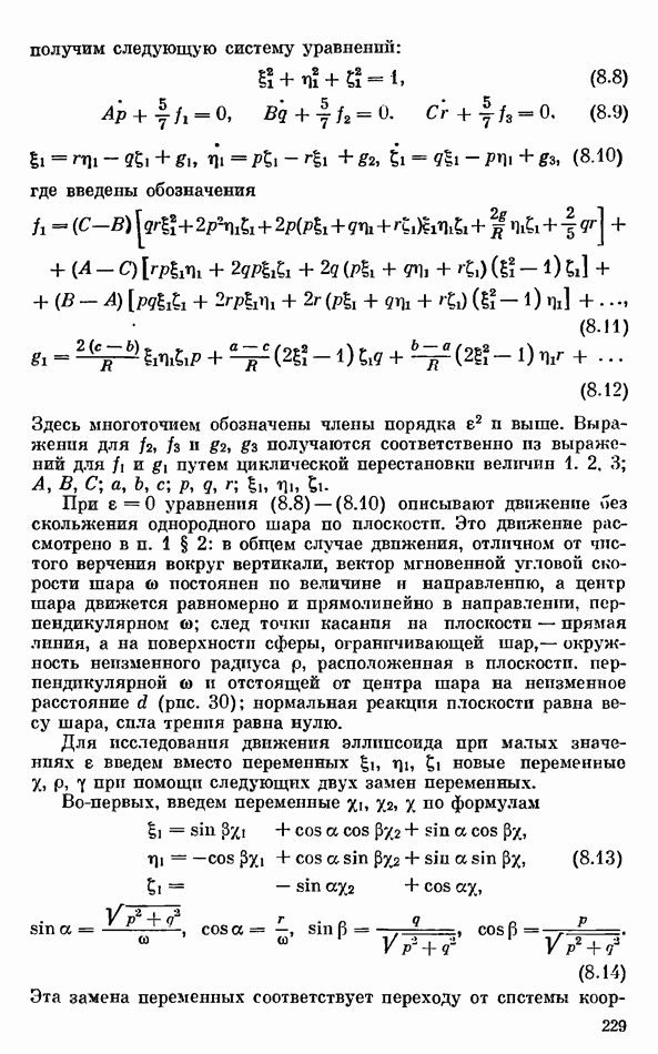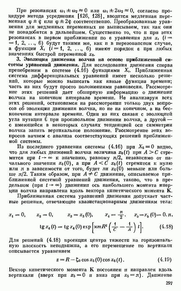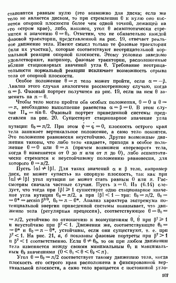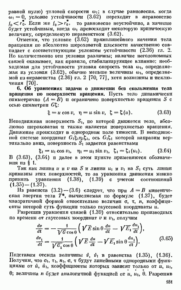 . В линеаризованной спстеме (6.9) первые два уравнения, описывающие изменение со временем углов нутации и собственного вращения, отделяются от третьего уравнения, описывающего вращение тела вокруг вертикали. Замечая, что формально эти два уравнения можно рассматривать как уравнения малых колебаний консервативной системы, сделаем в уравнениях (6.9) замену переменных