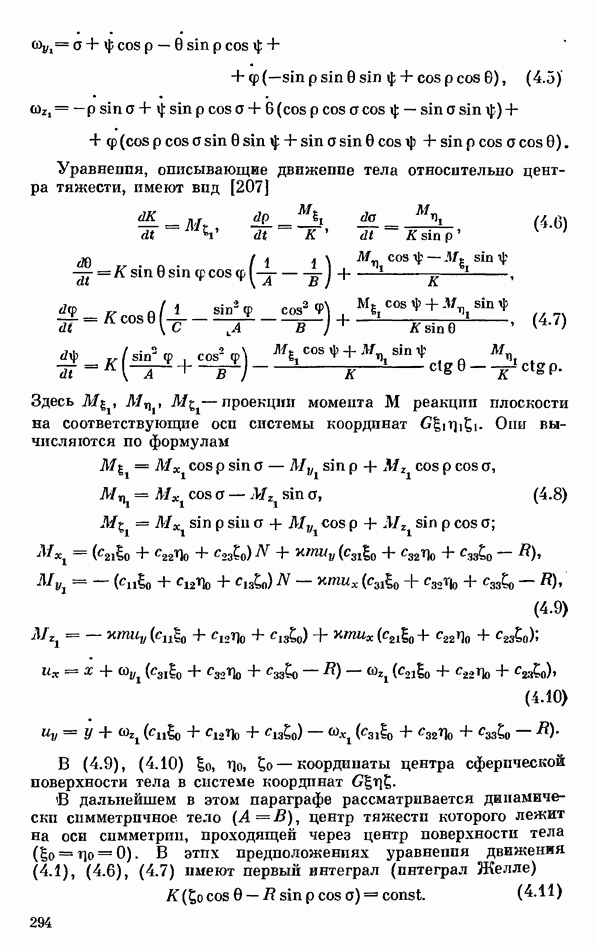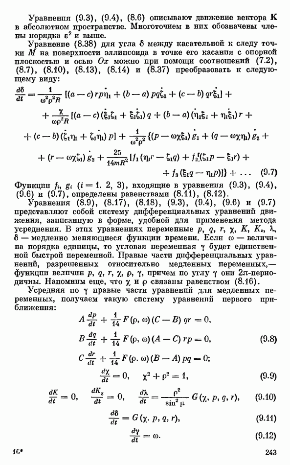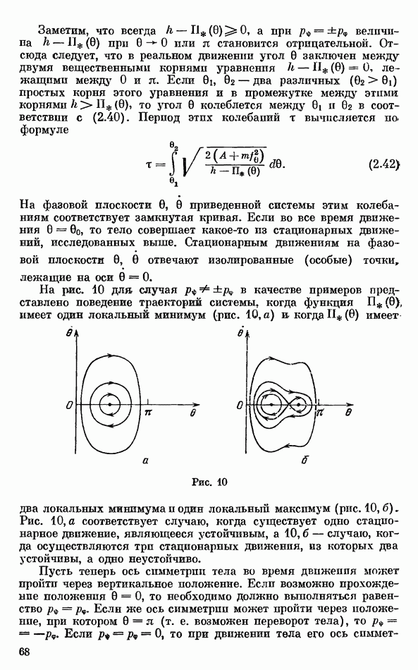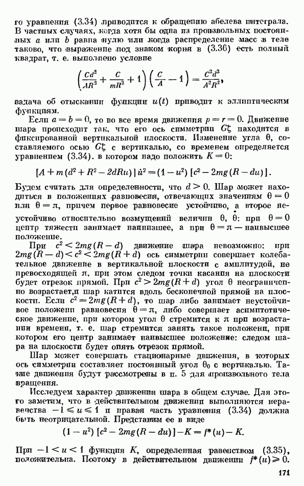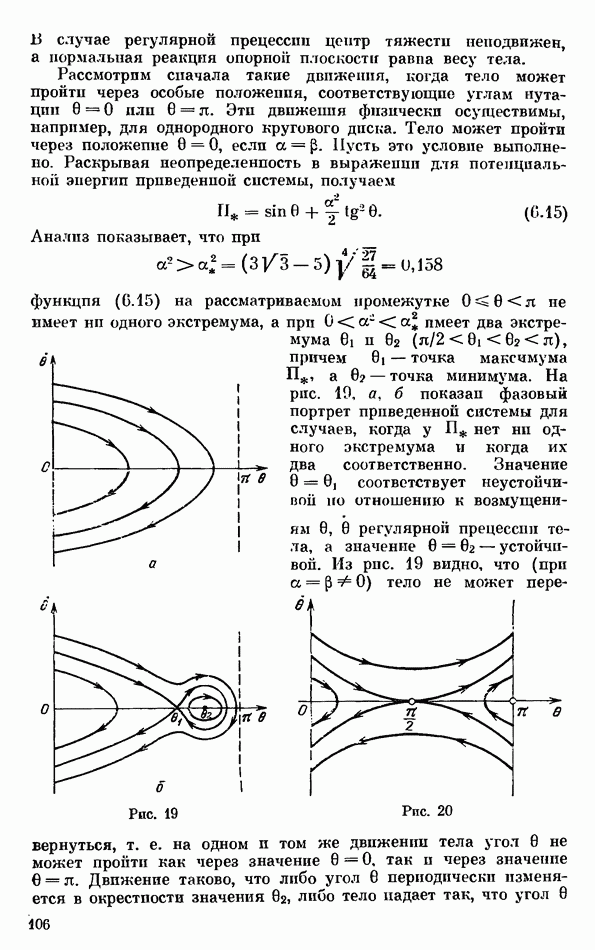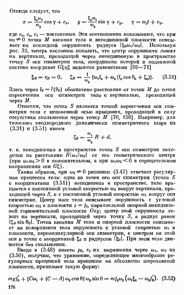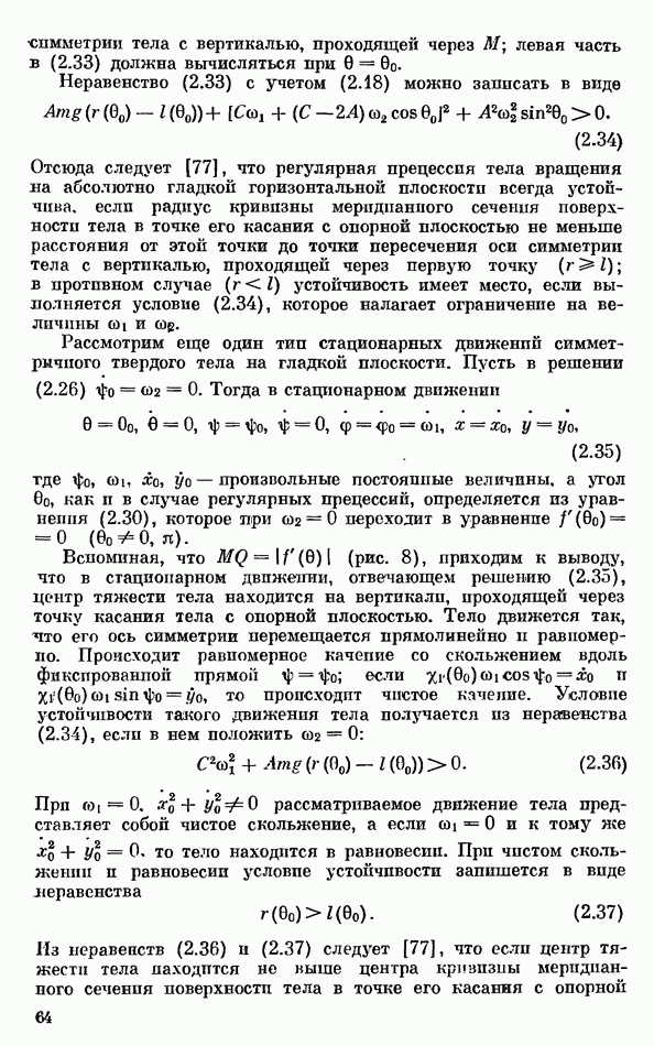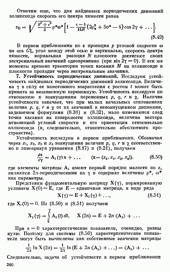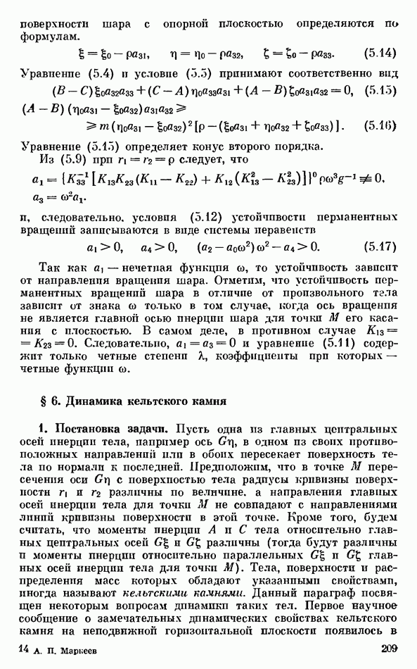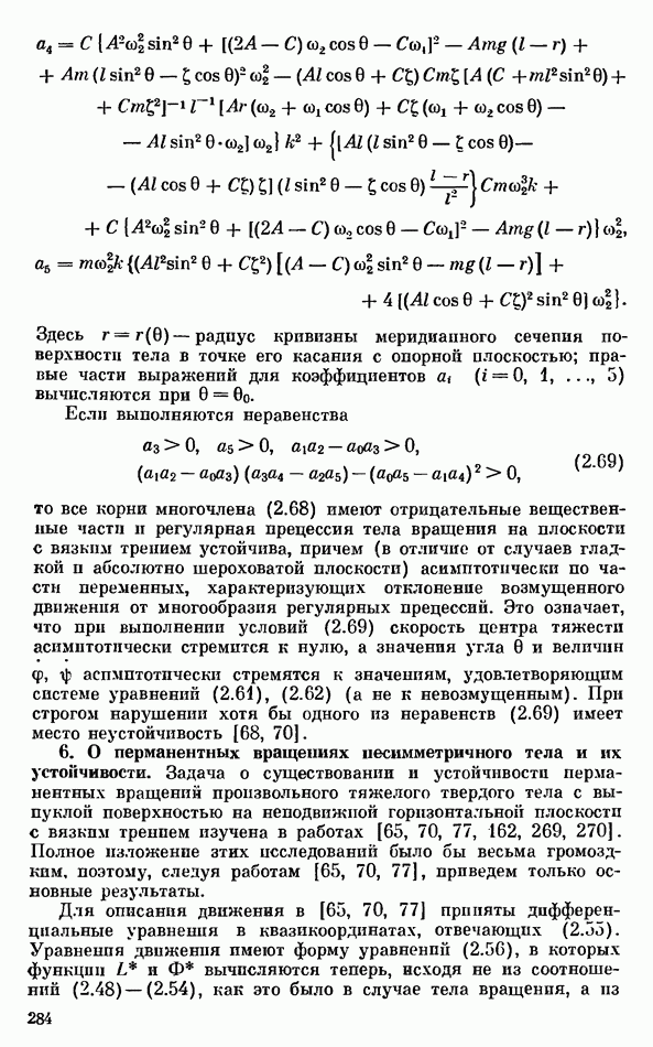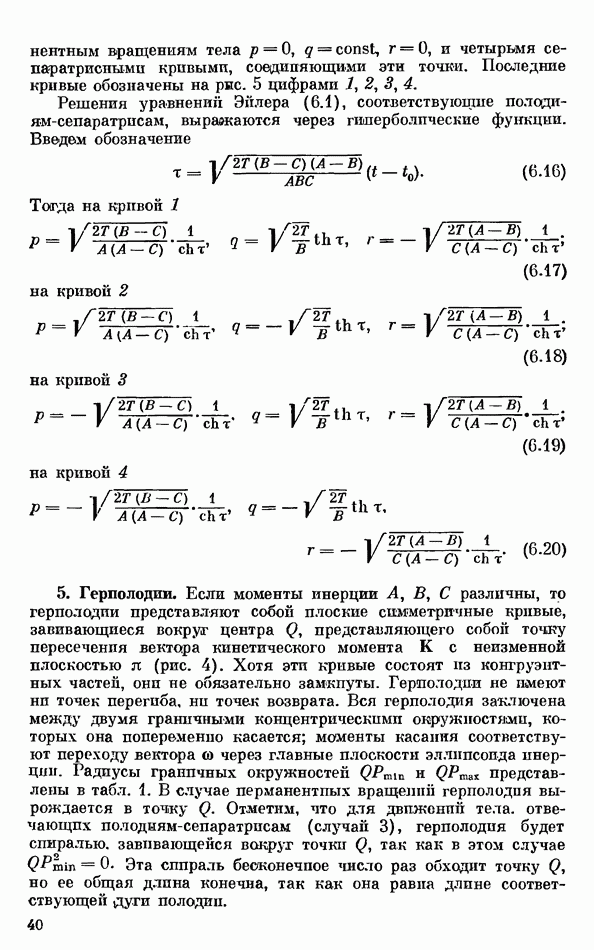 . В линеаризованной спстеме (6.9) первые два уравнения, описывающие изменение со временем углов нутации и собственного вращения, отделяются от третьего уравнения, описывающего вращение тела вокруг вертикали. Замечая, что формально эти два уравнения можно рассматривать как уравнения малых колебаний консервативной системы, сделаем в уравнениях (6.9) замену переменных