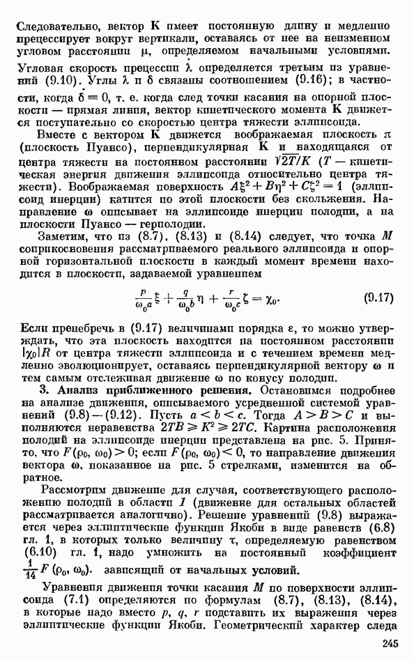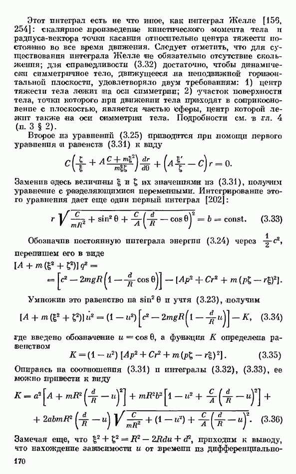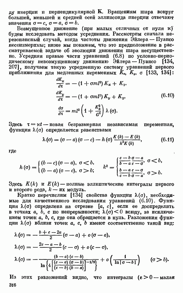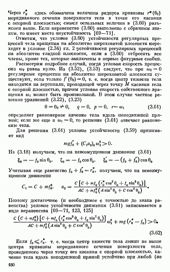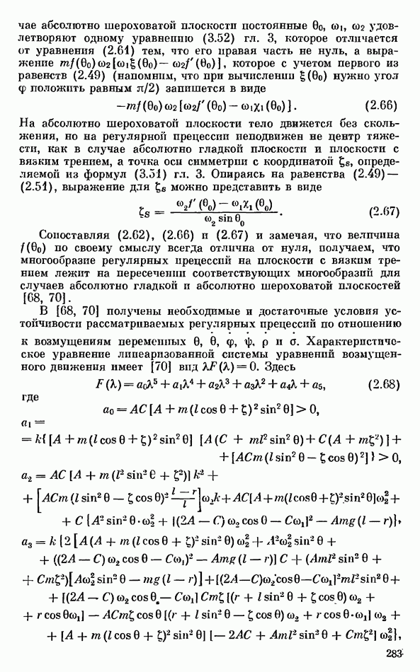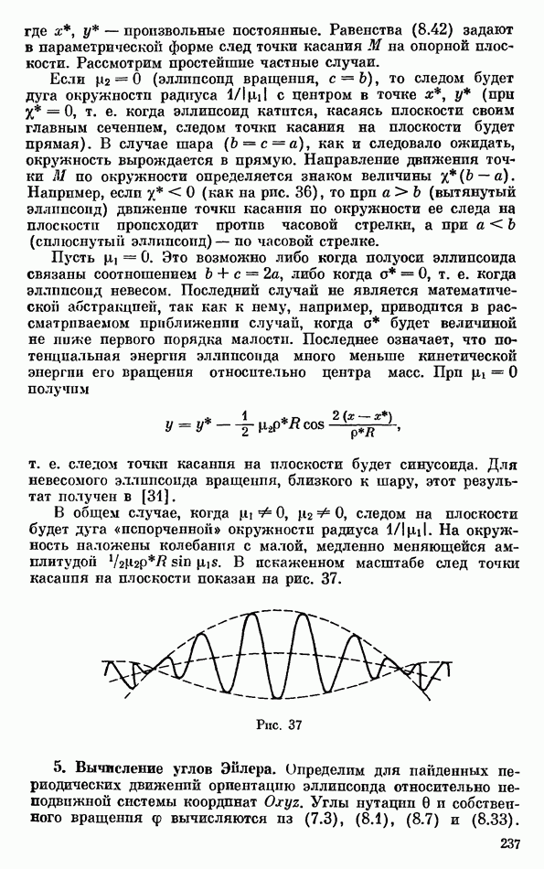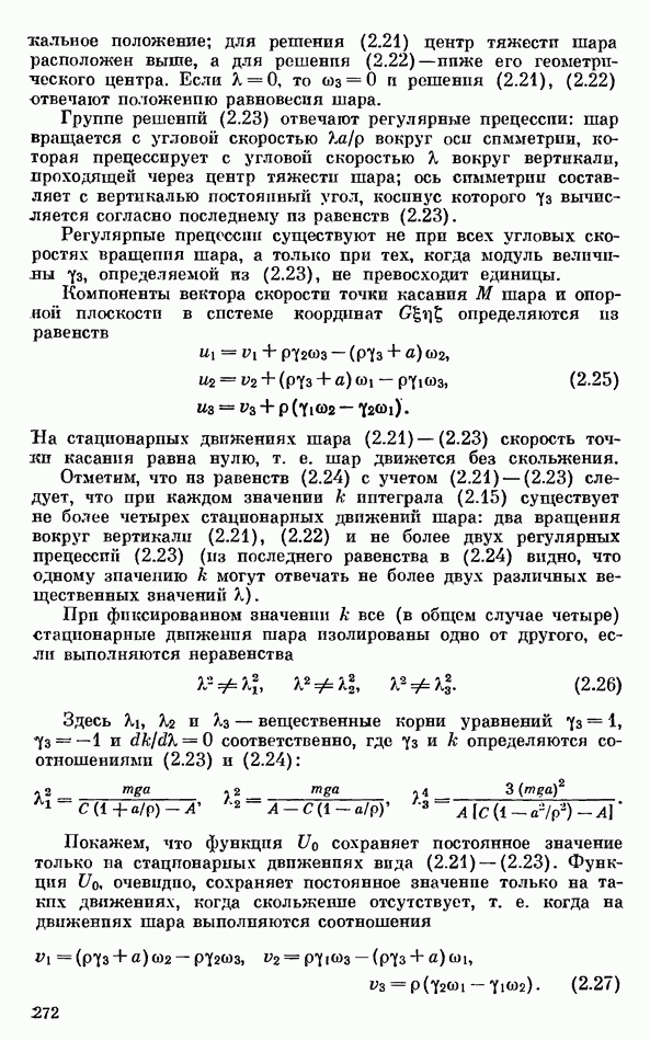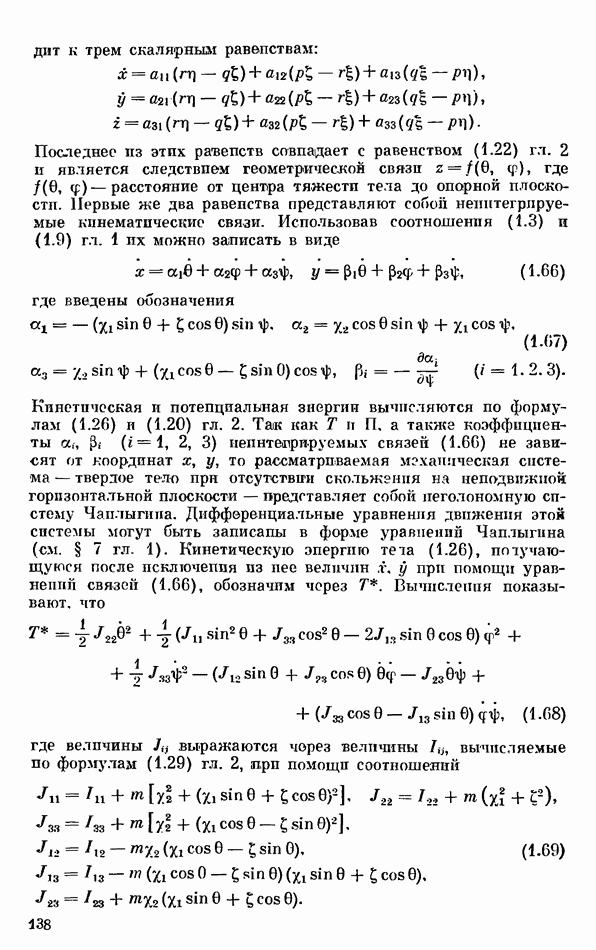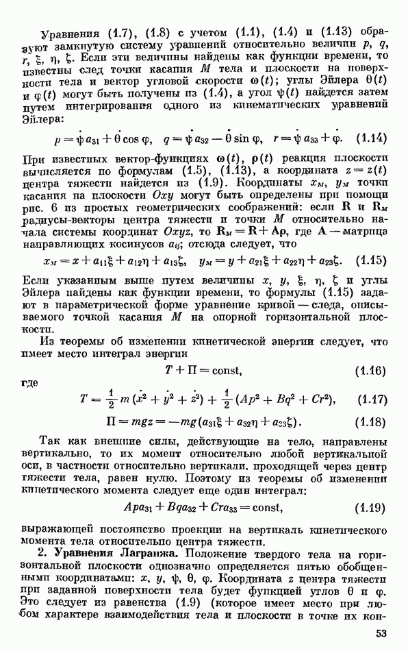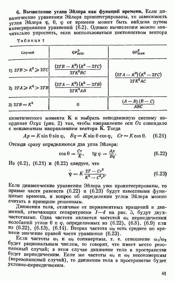 . В линеаризованной спстеме (6.9) первые два уравнения, описывающие изменение со временем углов нутации и собственного вращения, отделяются от третьего уравнения, описывающего вращение тела вокруг вертикали. Замечая, что формально эти два уравнения можно рассматривать как уравнения малых колебаний консервативной системы, сделаем в уравнениях (6.9) замену переменных