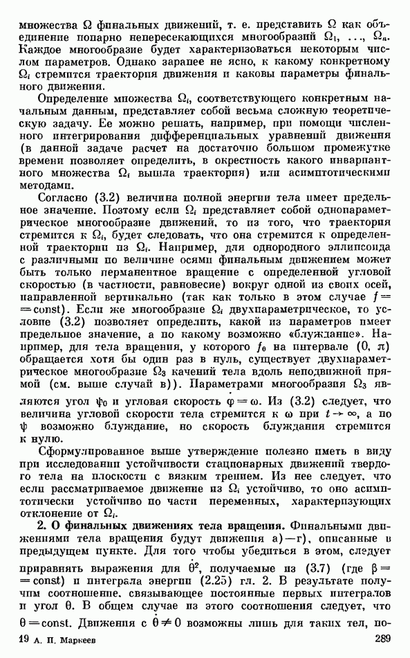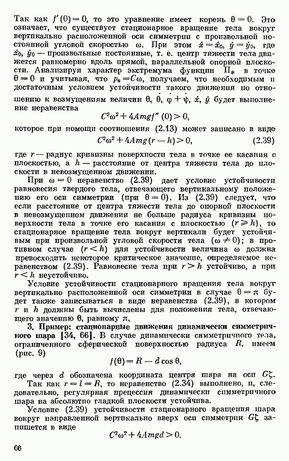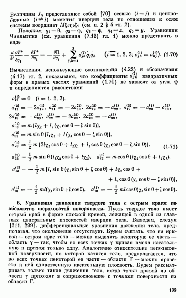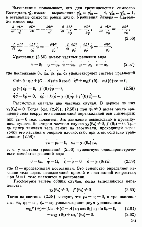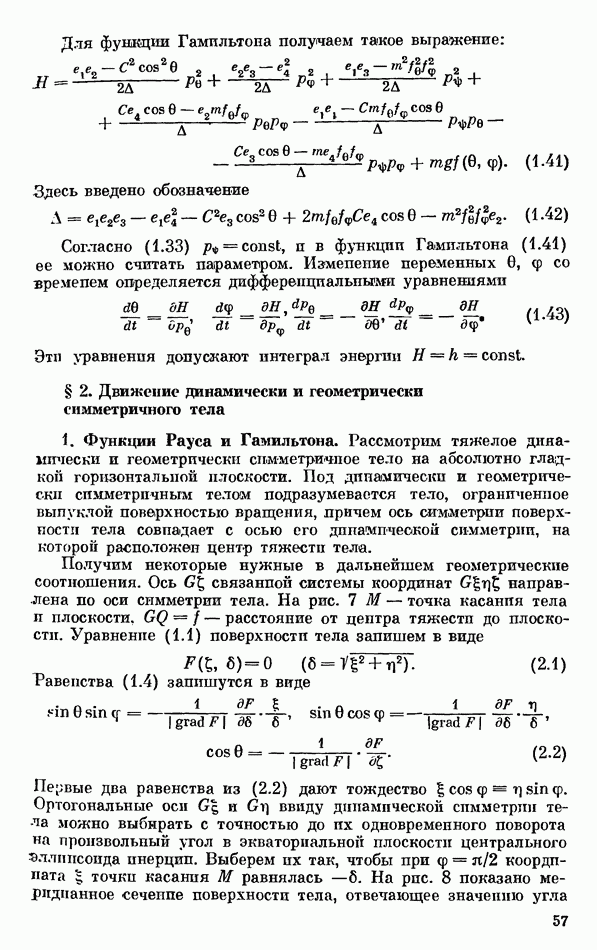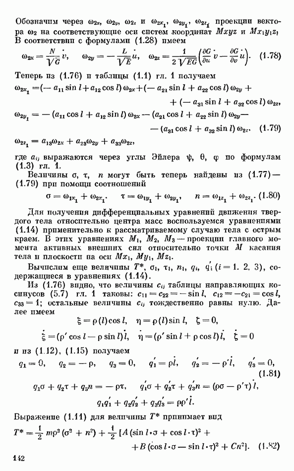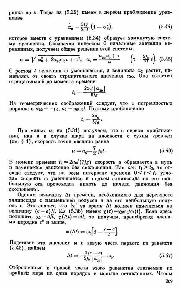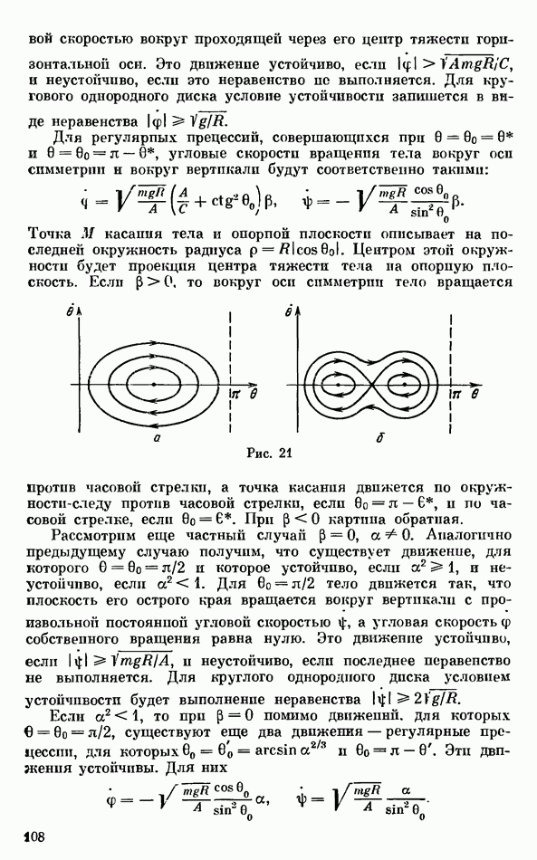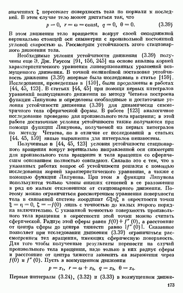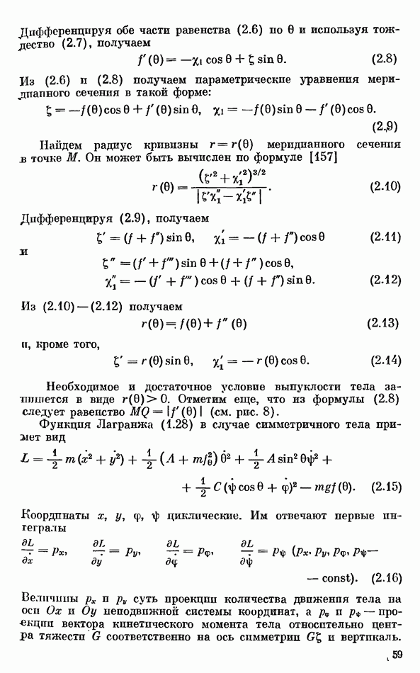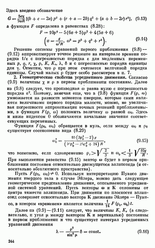 . В линеаризованной спстеме (6.9) первые два уравнения, описывающие изменение со временем углов нутации и собственного вращения, отделяются от третьего уравнения, описывающего вращение тела вокруг вертикали. Замечая, что формально эти два уравнения можно рассматривать как уравнения малых колебаний консервативной системы, сделаем в уравнениях (6.9) замену переменных