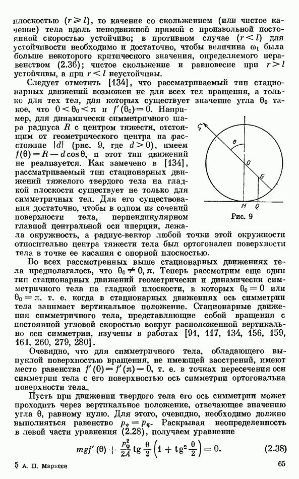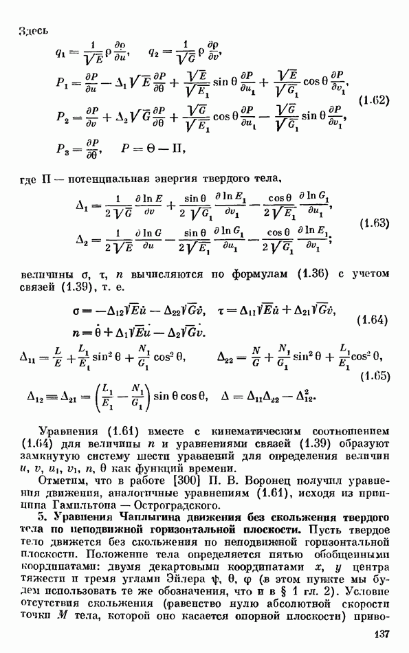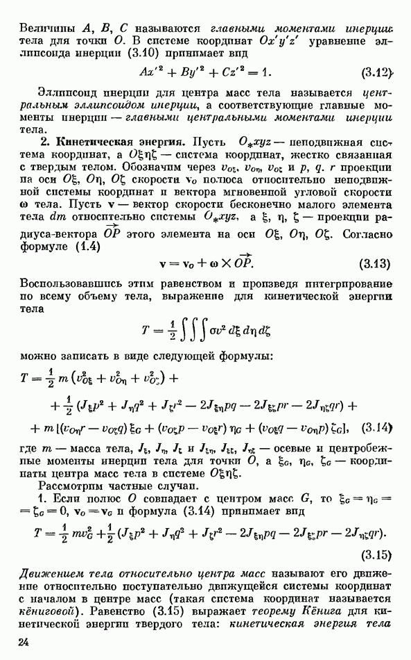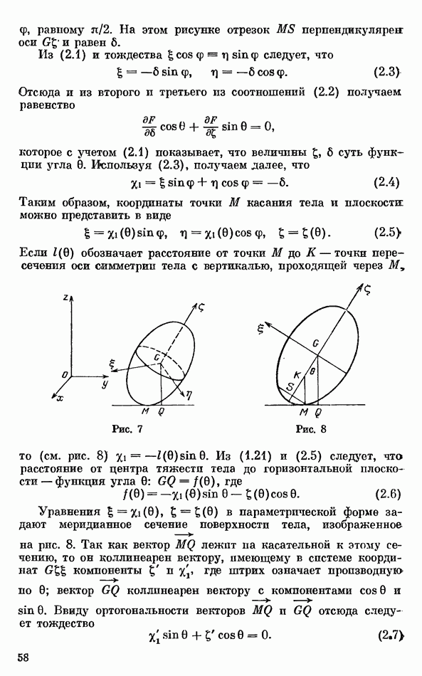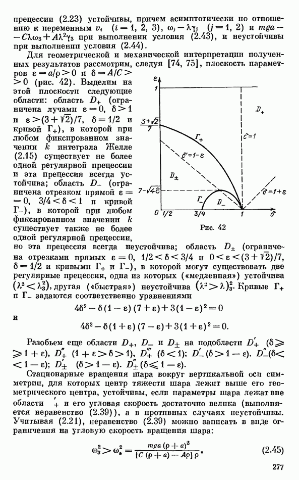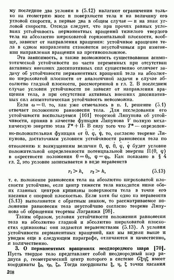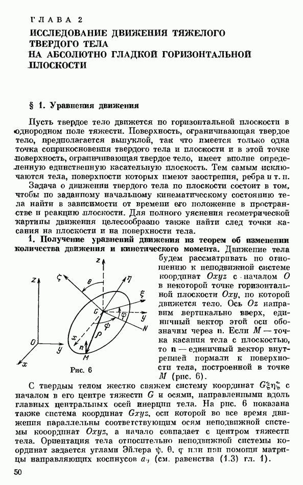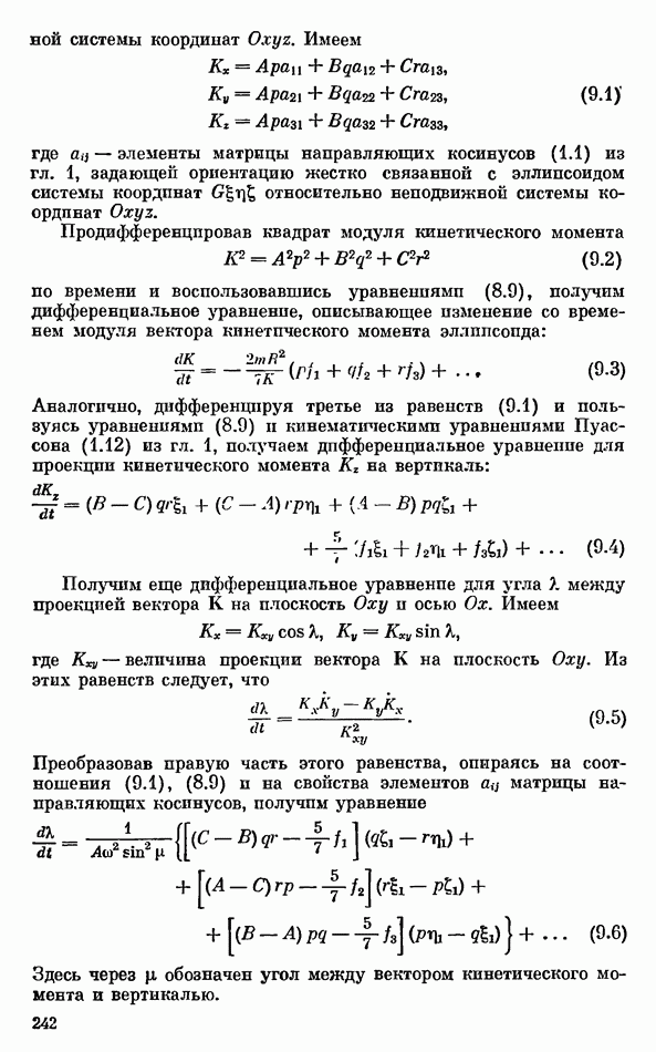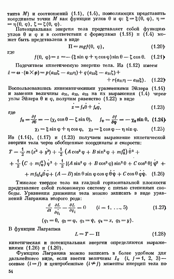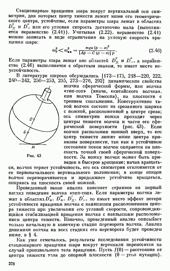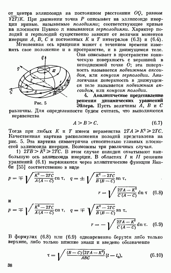. В линеаризованной спстеме (6.9) первые два уравнения, описывающие изменение со временем углов нутации и собственного вращения, отделяются от третьего уравнения, описывающего вращение тела вокруг вертикали. Замечая, что формально эти два уравнения можно рассматривать как уравнения малых колебаний консервативной системы, сделаем в уравнениях (6.9) замену переменных