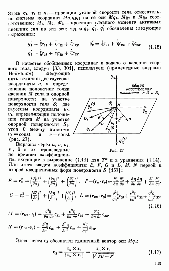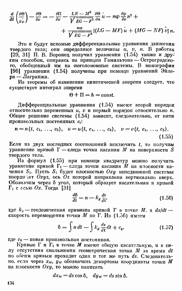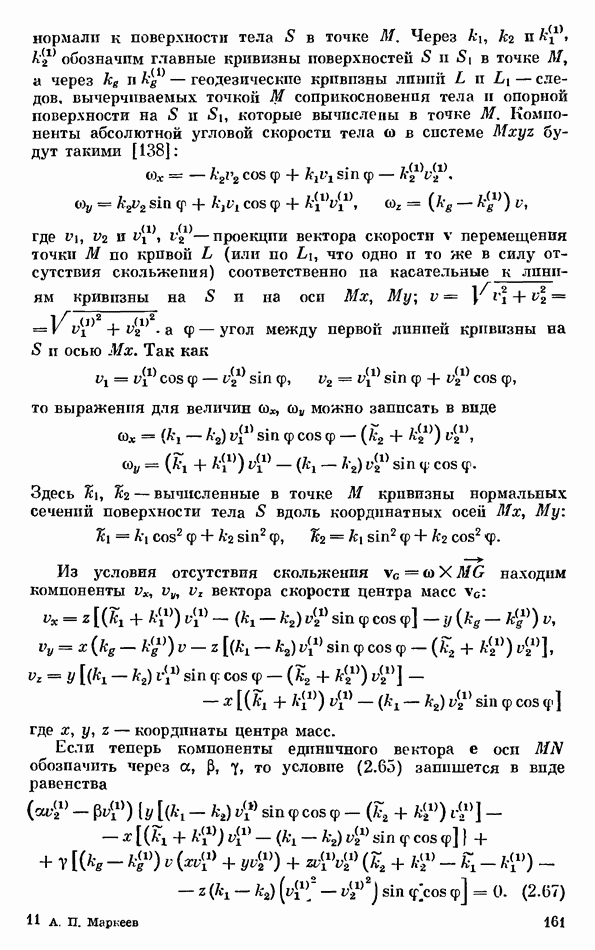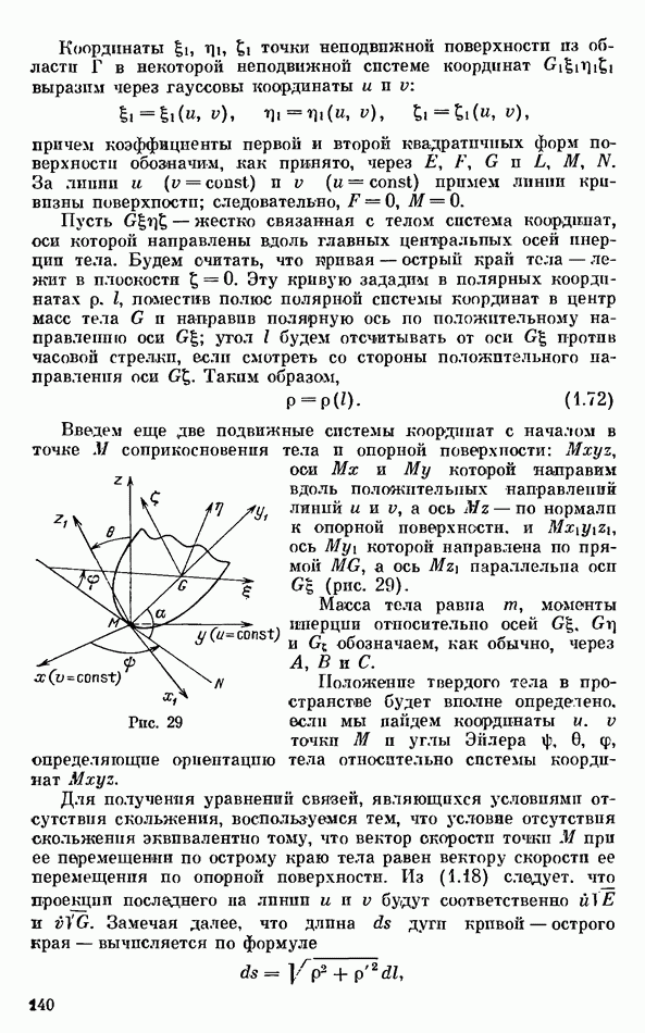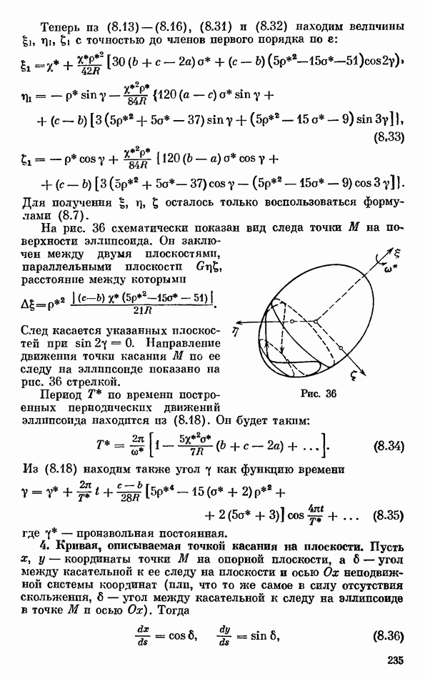 уравнение следа, описываемого точкой касания М на поверхности тела, будет таким: