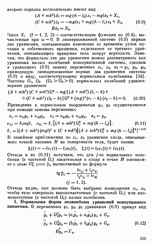 приводящую линеаризованные первые два уравнения системы (6.9) к виду, соответствующему нормальным колебаниям [34]. Частоты