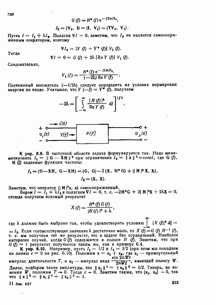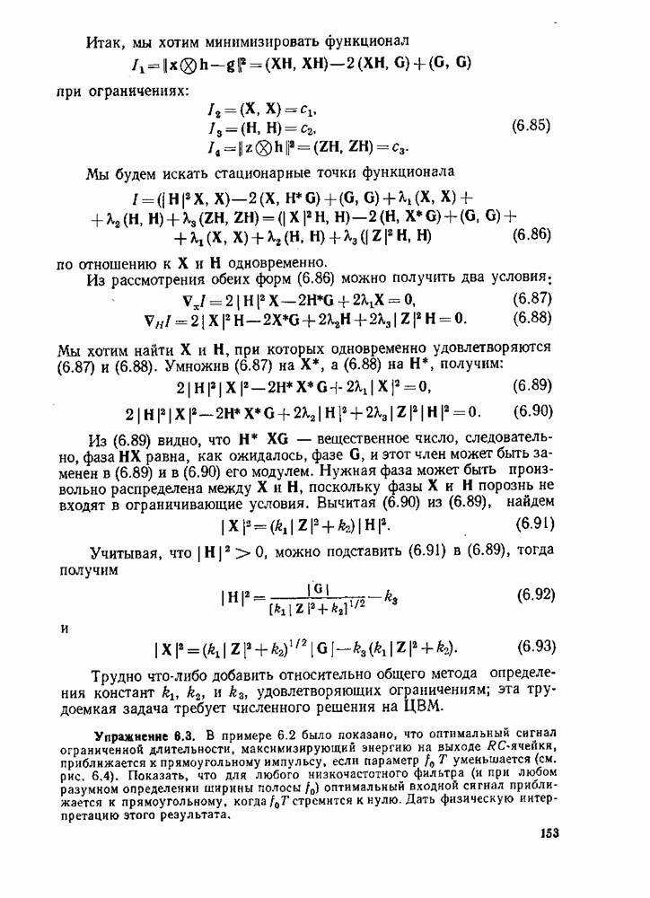 часто называемого фильтром Винера. Чтобы физически пояснить эти результаты, рассмотрим выражение для функционала 1 в частотной области, положив для простоты
