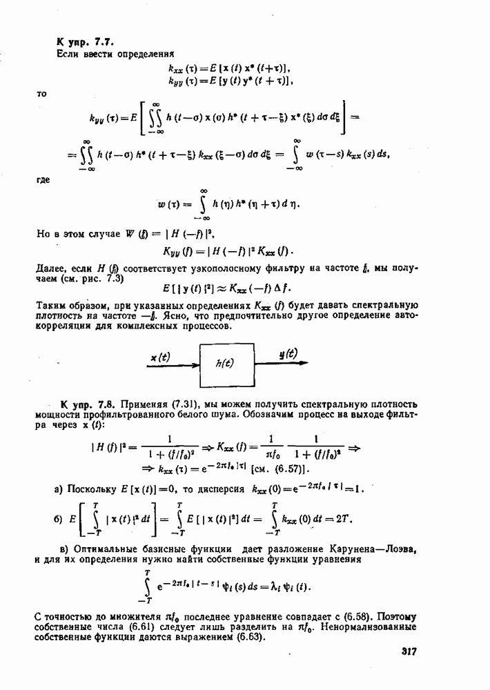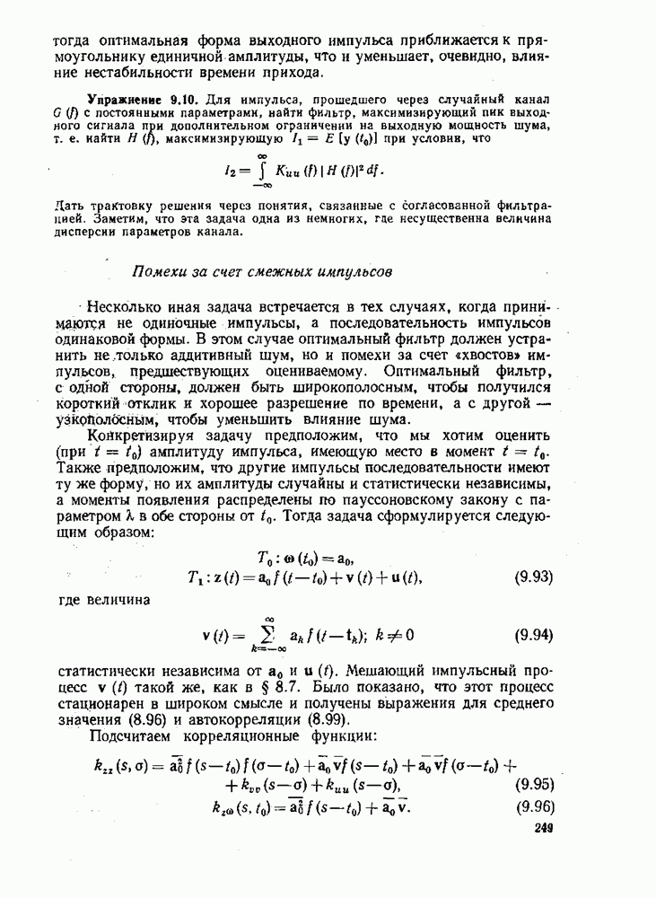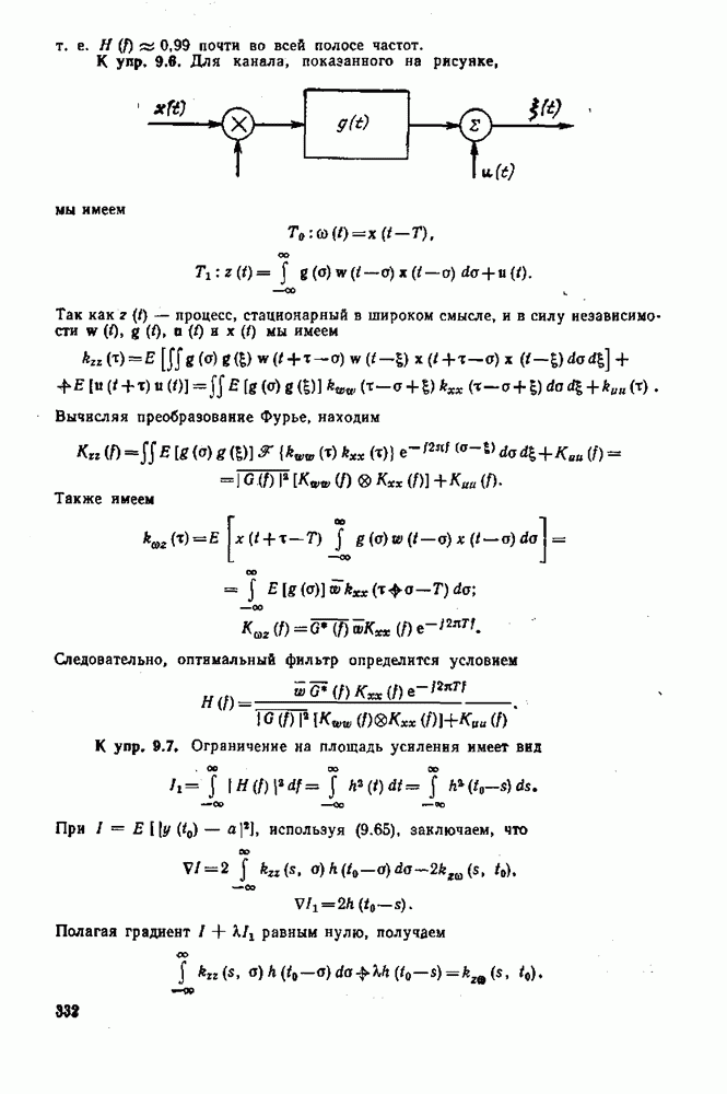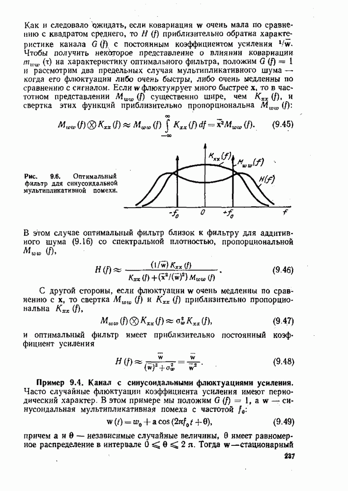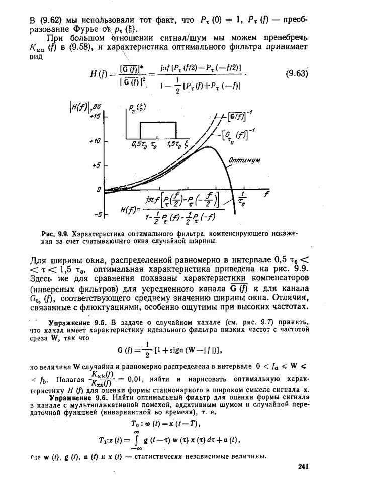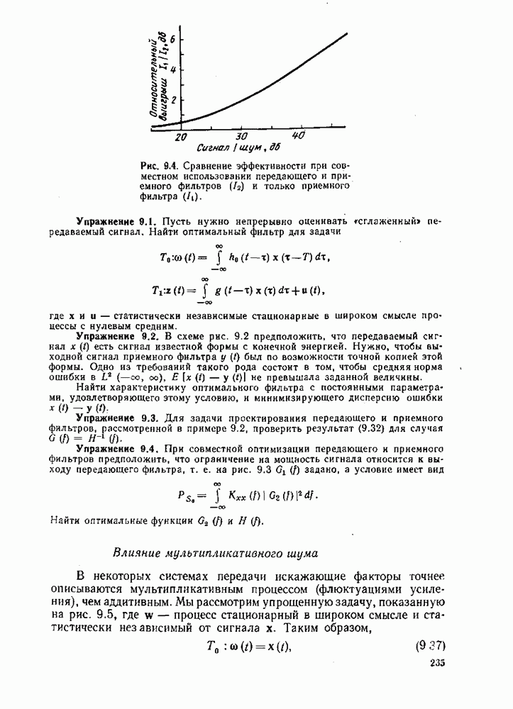 но величина Полагая — 0,01, найти и нарисовать оптимальную характеристику Упражнение 9.6. Найти оптимальный фильтр для оценки формы сигнала в канале с мультипликативной помехой, аддитивным шумом и случайной передаточной функцией (инвариантной во времени), т.
