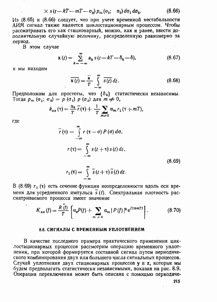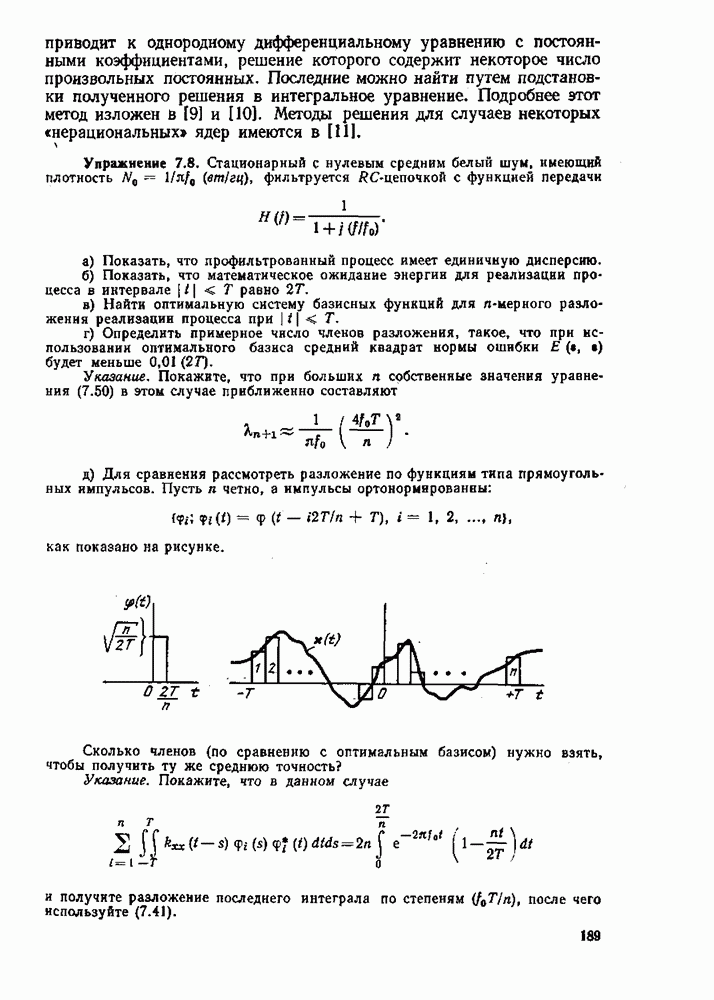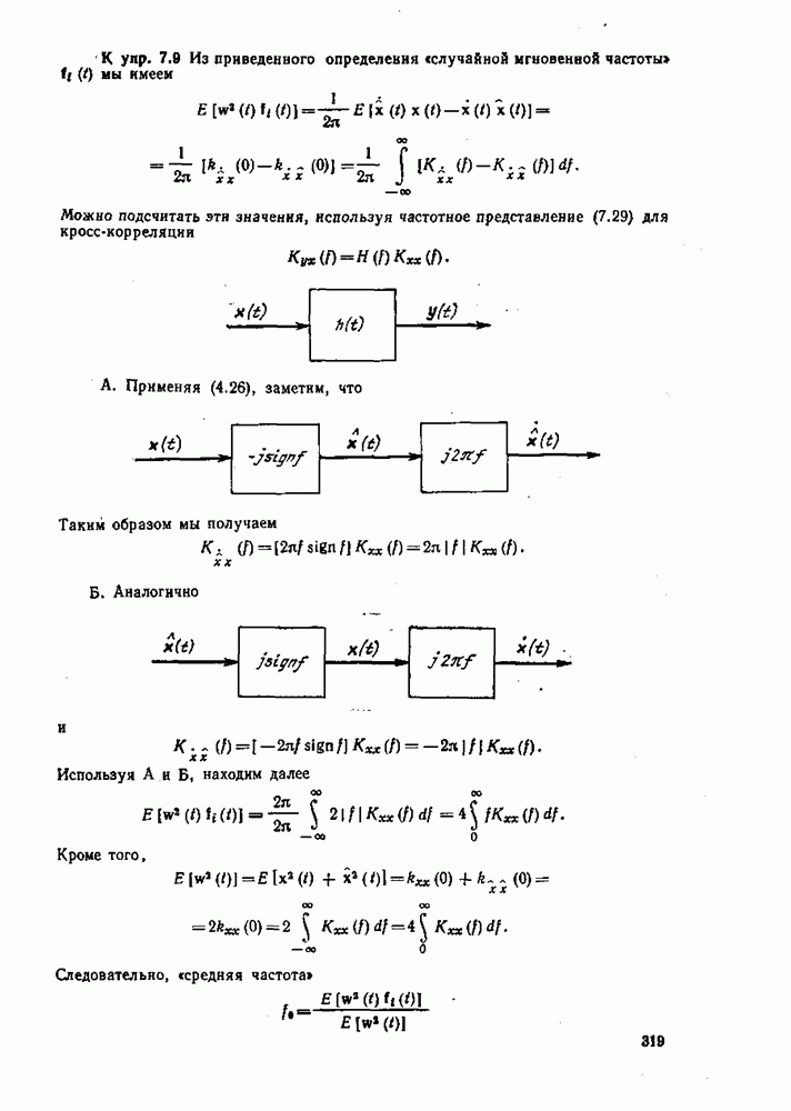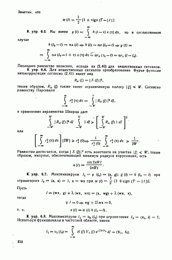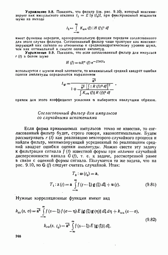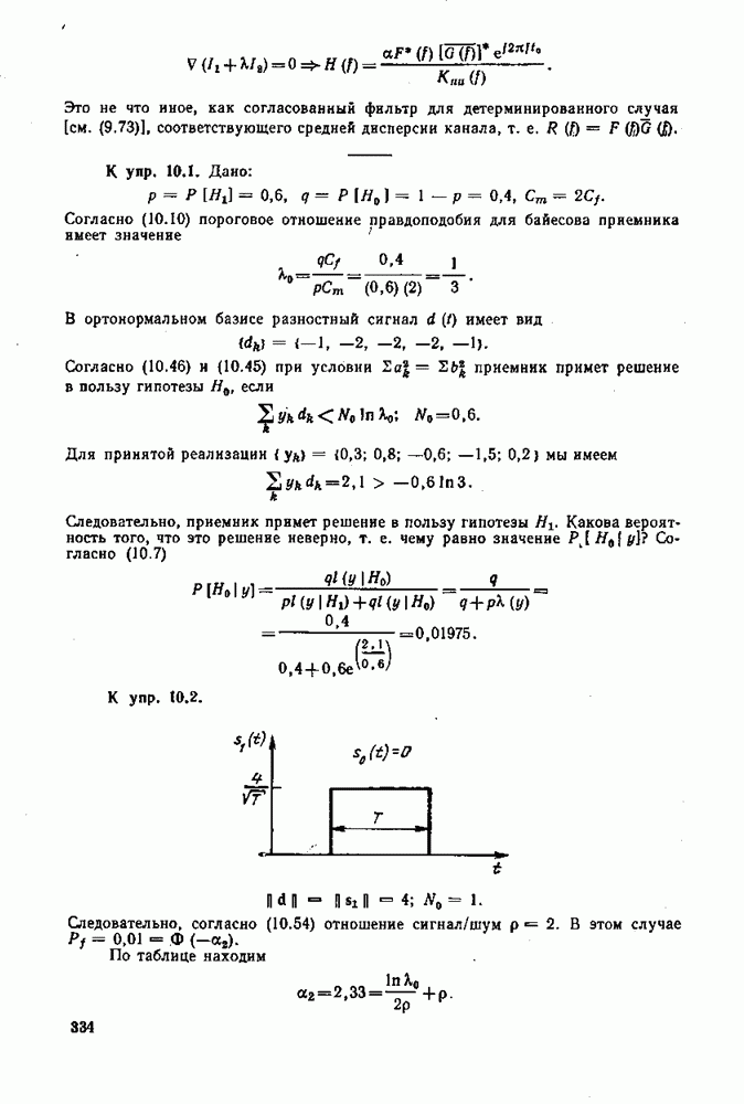 но величина Полагая — 0,01, найти и нарисовать оптимальную характеристику Упражнение 9.6. Найти оптимальный фильтр для оценки формы сигнала в канале с мультипликативной помехой, аддитивным шумом и случайной передаточной функцией (инвариантной во времени), т.