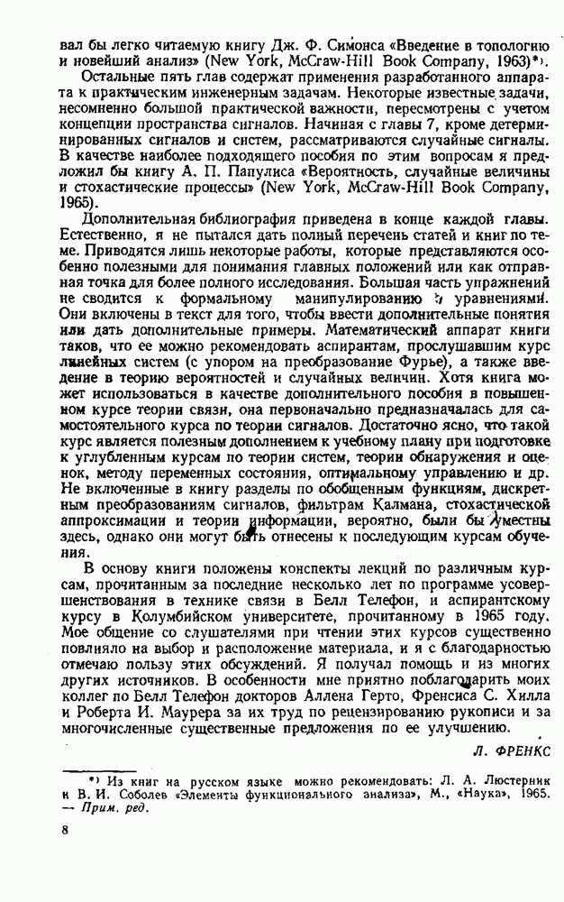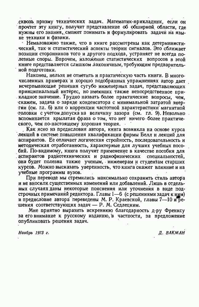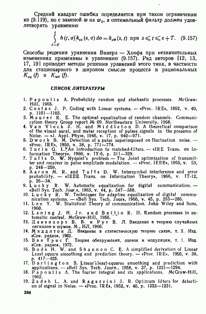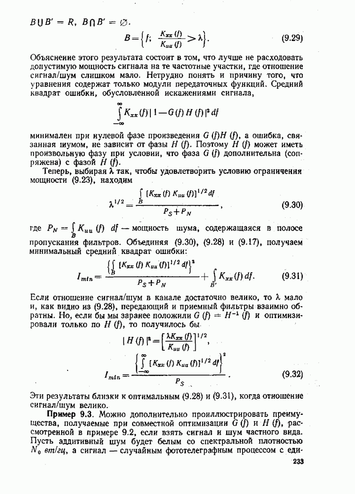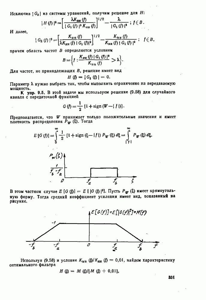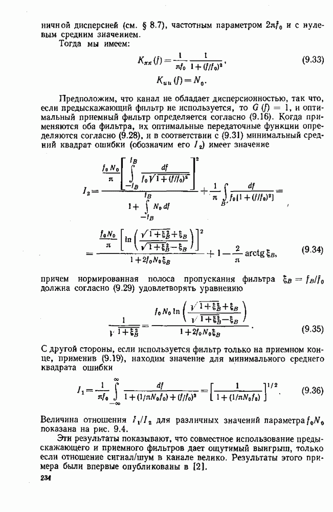 Объяснение этого результата состоит в том, что лучше не расходовать допустимую мощность сигнала на те частотные участки, где отношение сигнал/шум слишком мало. Нетрудно понять и причину того, что уравнения содержат только модули передаточных функций. Средний квадрат ошибки, обусловленной искажениями сигнала,