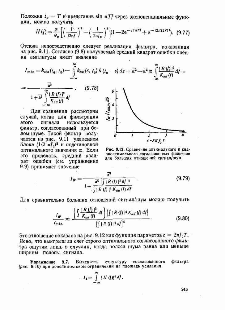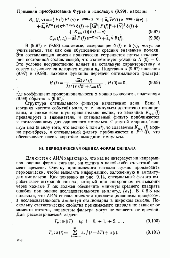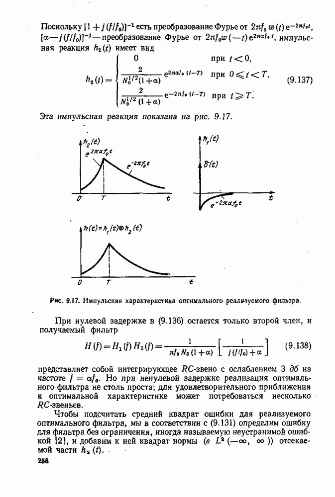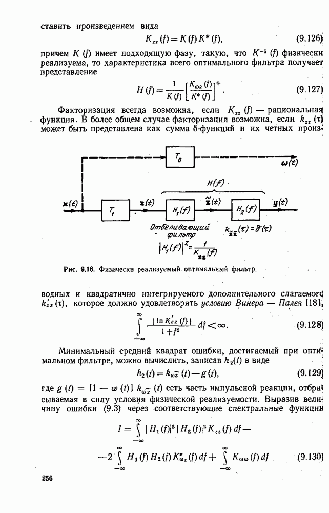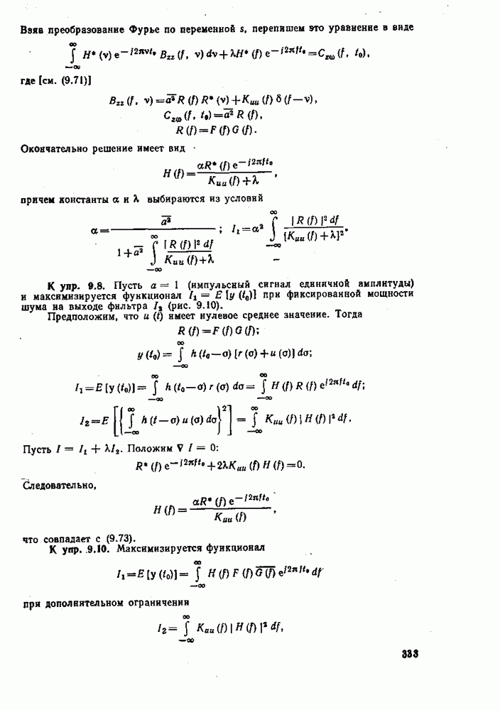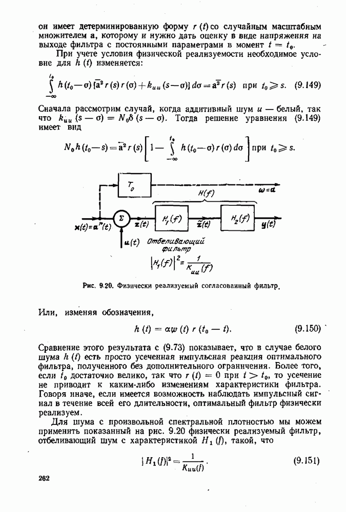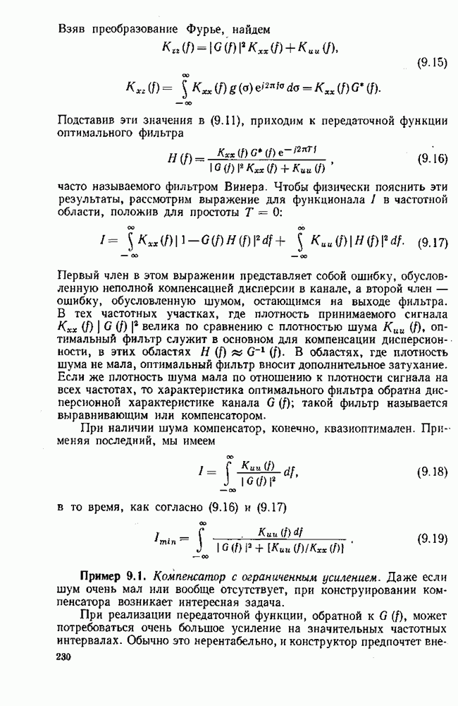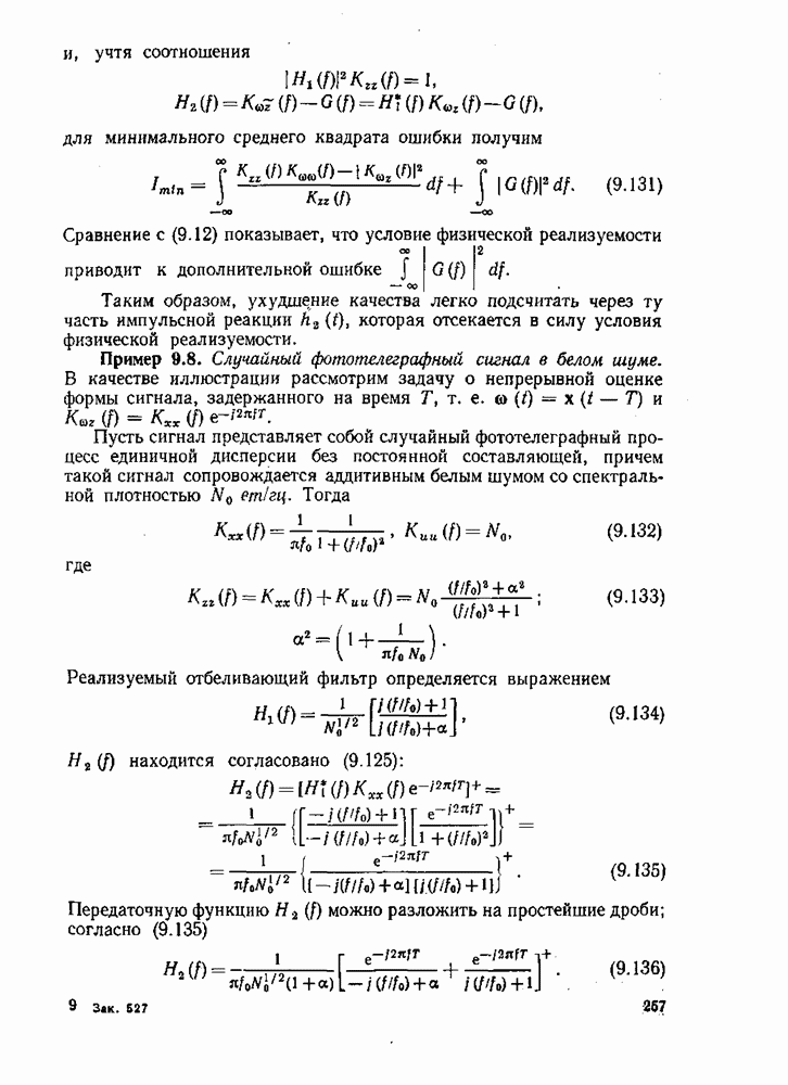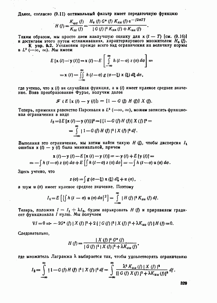 Искомая функция передачи оптимального фильтра далее легко находится путем преобразования Фурье от (9.10):