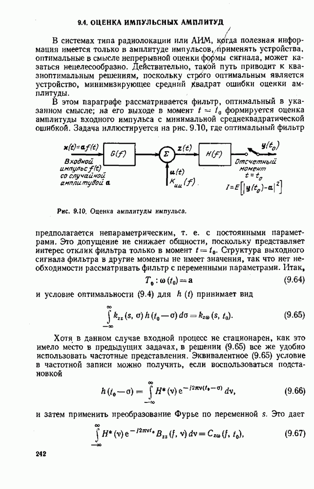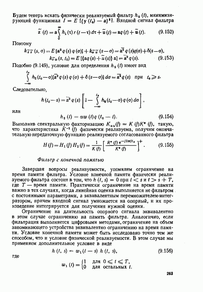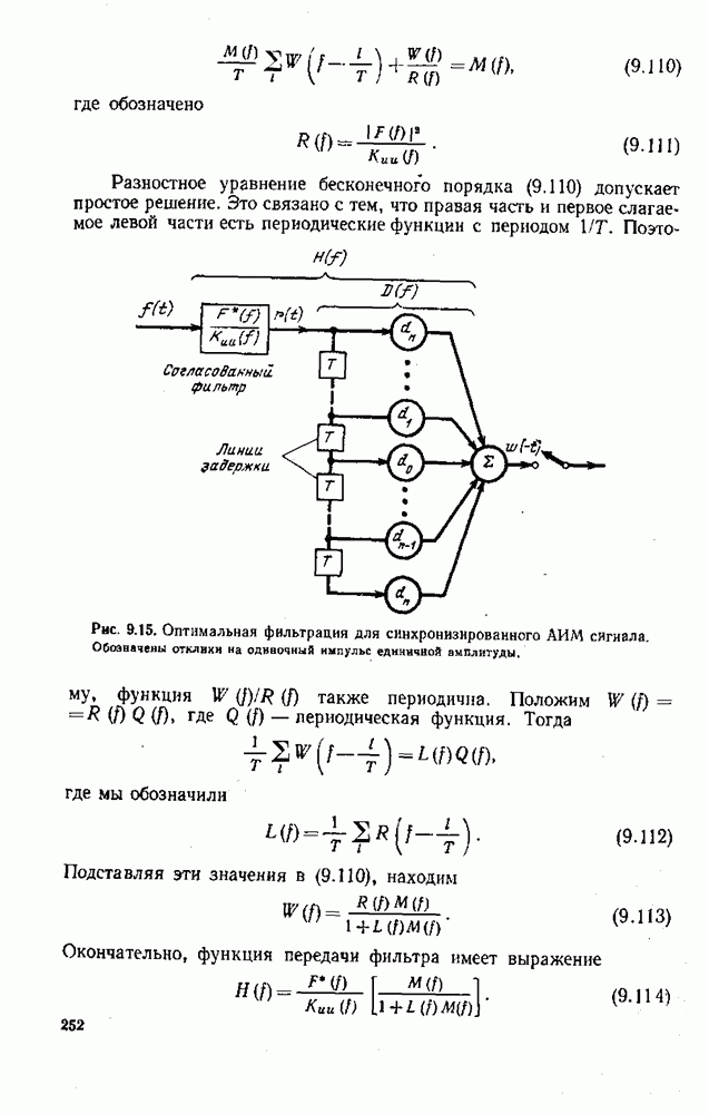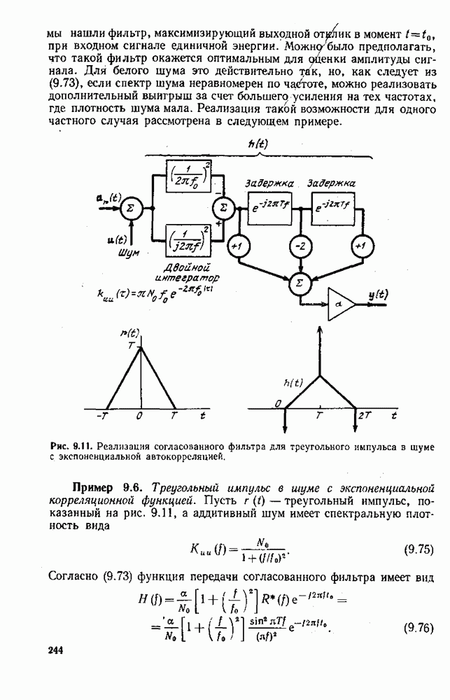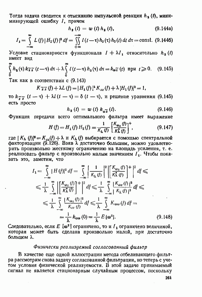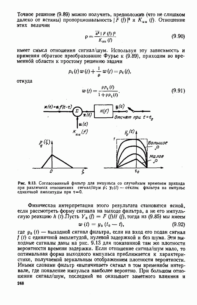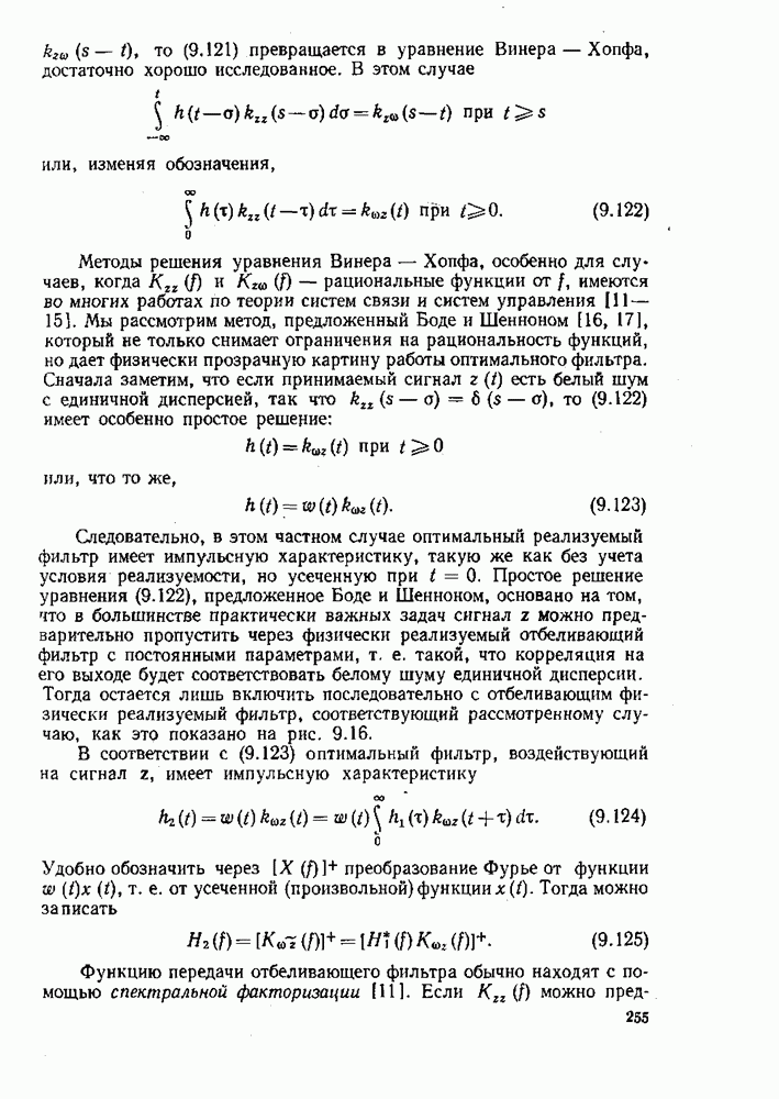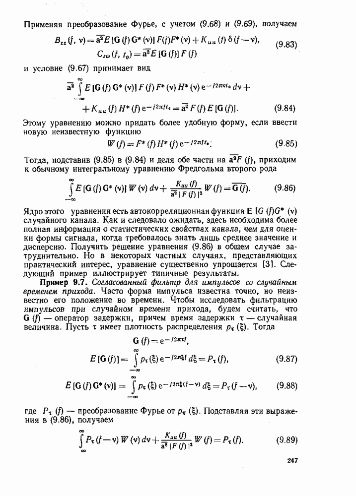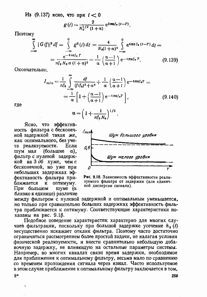 Искомая функция передачи оптимального фильтра далее легко находится путем преобразования Фурье от (9.10):