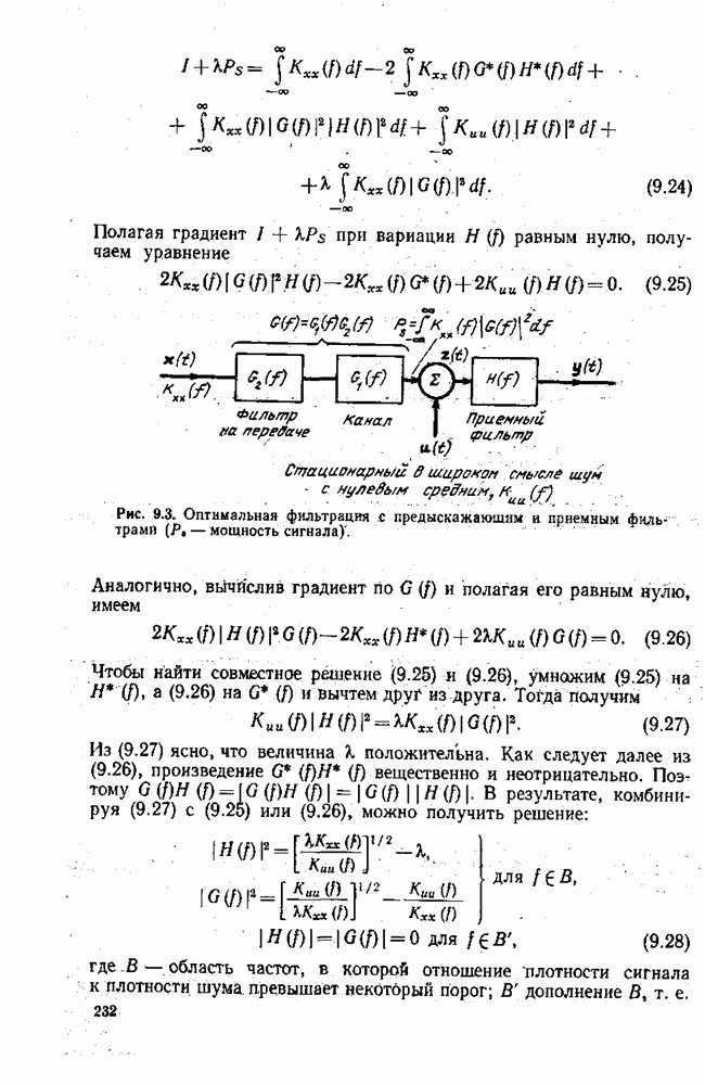 Рис. 9.3. Оптимальная фильтрация с предыскажающим и приемным фильтрами ( Аналогично, вычислив градиент