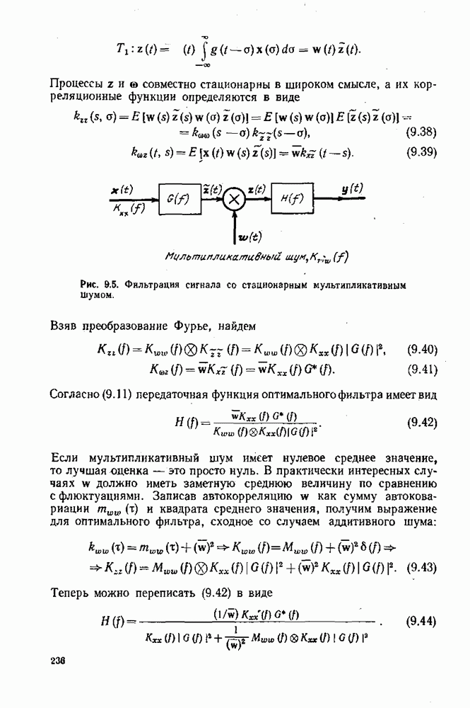 Рис. 9.5. Фильтрация сигнала со стационарным мультипликативным Шумом. Взяв преобразование Фурье, найдем