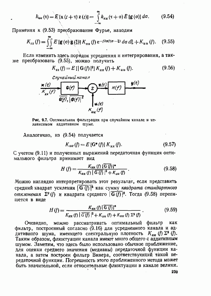 Рис. 9.7. Оптимальная фильтрация при случайном канале и независимом аддитивном шуме. Аналогично, из (9.54) получается