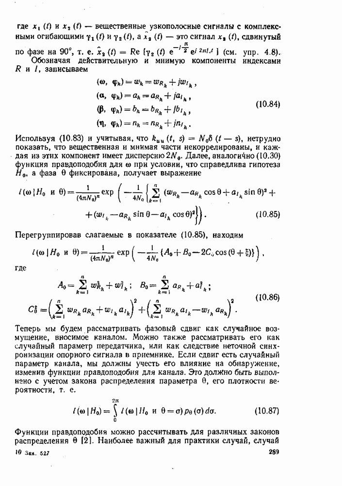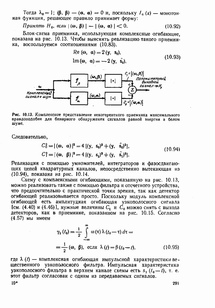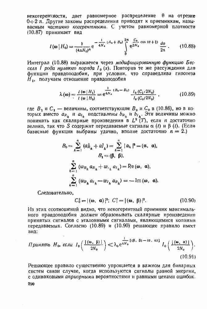 указывает мощность принимаемого сигнала. Из (9.17) и (9,23) ясно, какие члены функционала квадратичны, линейны или постоянны по отношению к