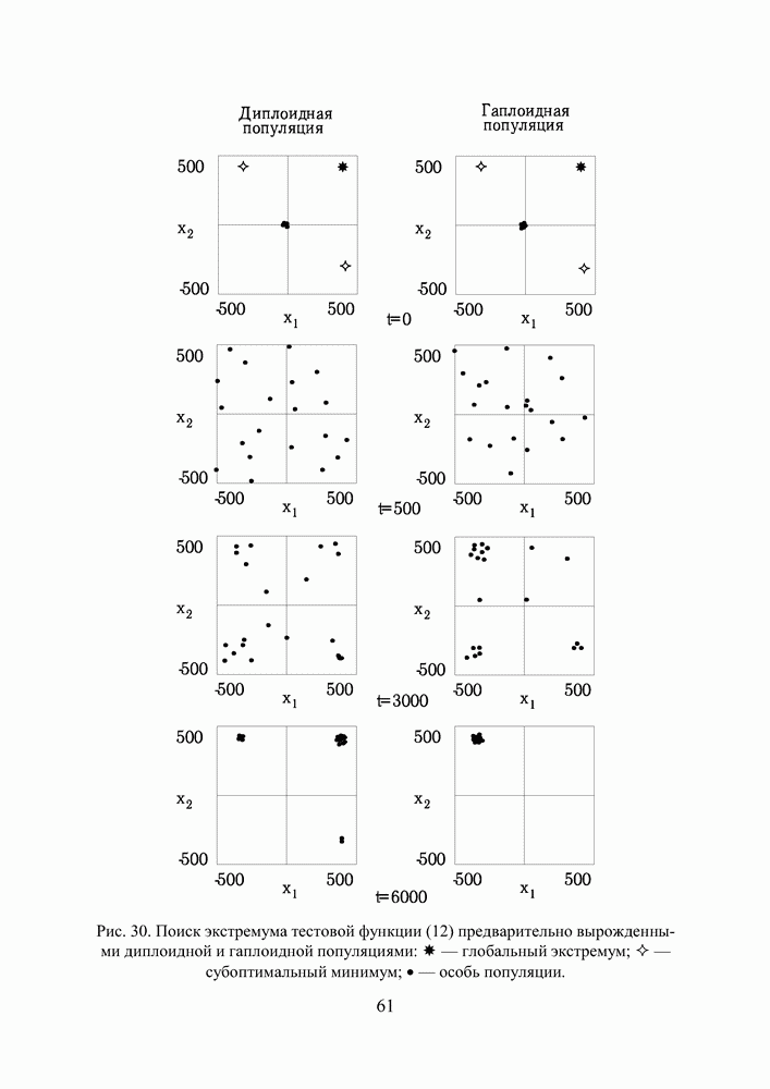 Интегрирование системы осуществлялось с постоянным шагом, равным 0,01 сек. Суммарная ошибка по всем трем переходным процессам принималась в качестве меры неудачности конструкции и использовалась далее в качестве количественного индекса для ранжирования особей в популяции. Кривые переходных процессов для лучшего варианта из популяции на различных этапах поиска представлены на рис. 16.