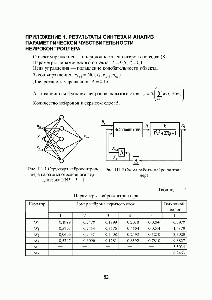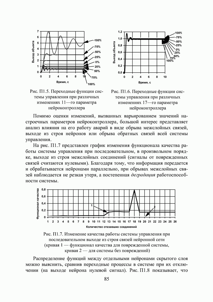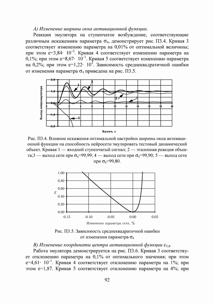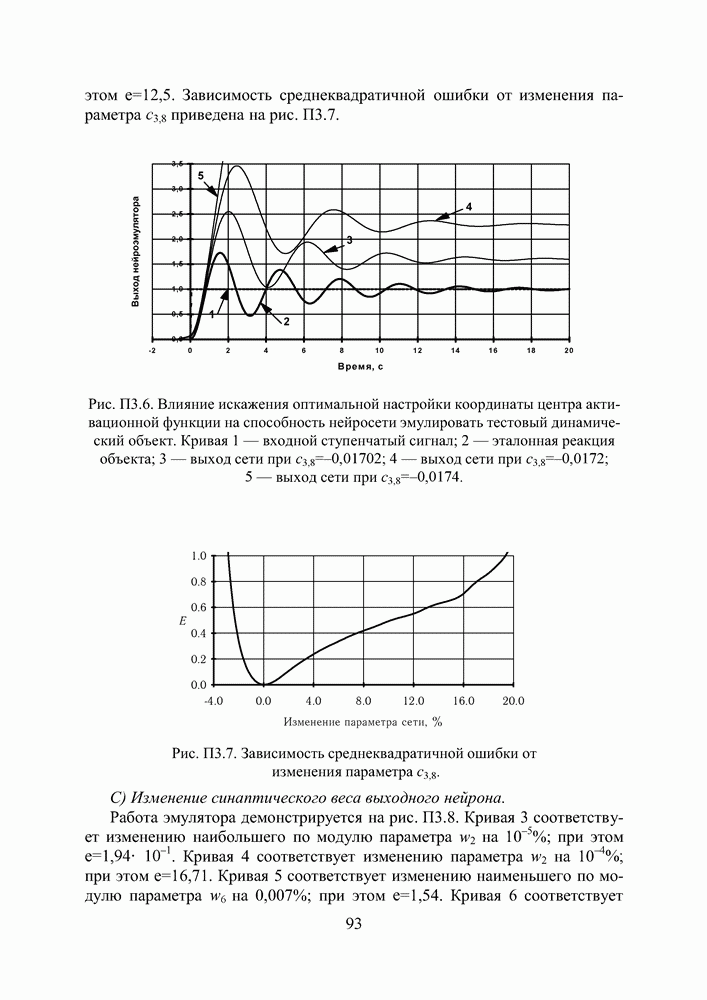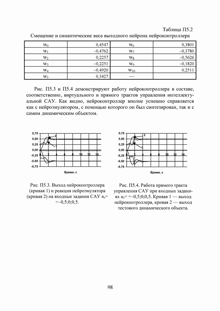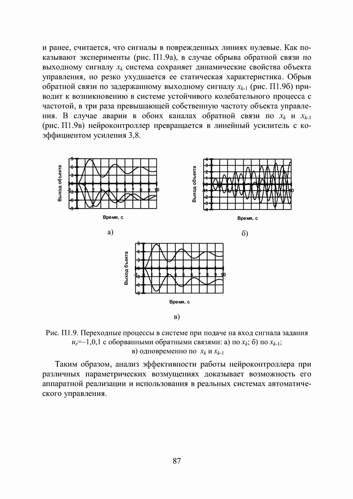 Рис. 14. Первый опыт с нейроконтроллером, аппроксимирующим коэффициенты ПИД-регулятора Структура нейроконтроллера: три ретранслирующих узла во входном слое, четыре скрытых узла с сигмоидальными активационными функциями и один выходной. На входные нейроныг подается разность между входным воздействием В качестве процедуры для тренировки сети мы использовали ГА. Алгоритм обратного распространения ошибки также подошел бы для этой цели, но он требует информации об ошибке на эффекторном слое ИНС. Для получения такой информации в схеме обучения необходимо предусмотреть обращенный нейроэмулятор объекта, роль которого сводится к преобразованию ошибки на выходе объекта в выходной сигнал на выходе нейроконтроллера, что существенно усложняет процедуру тренировки.