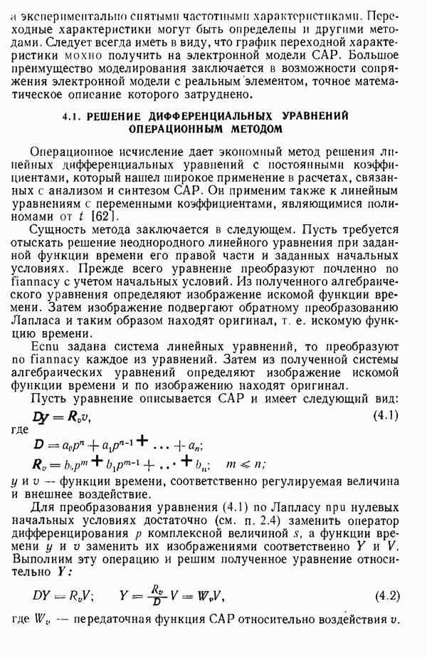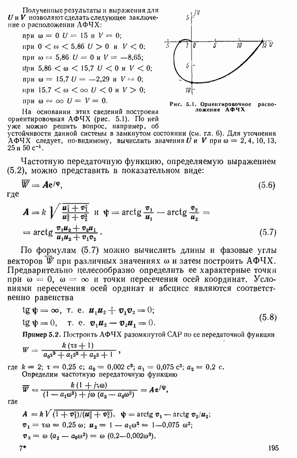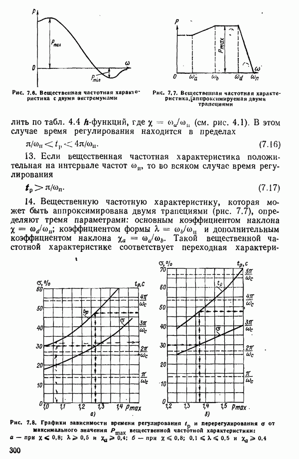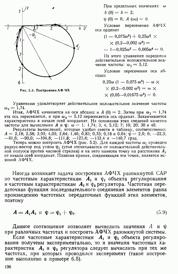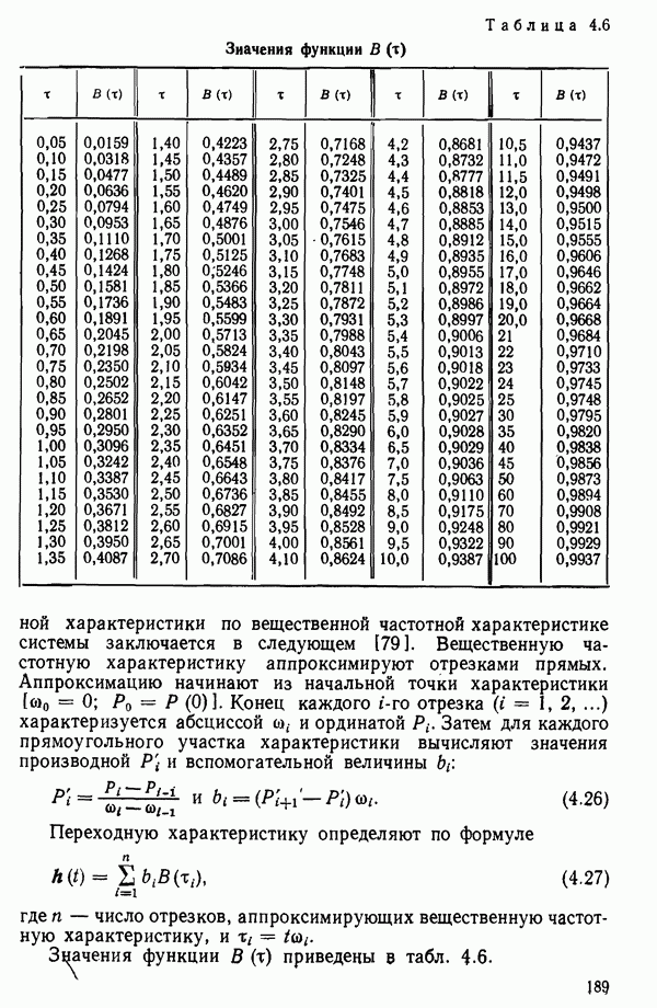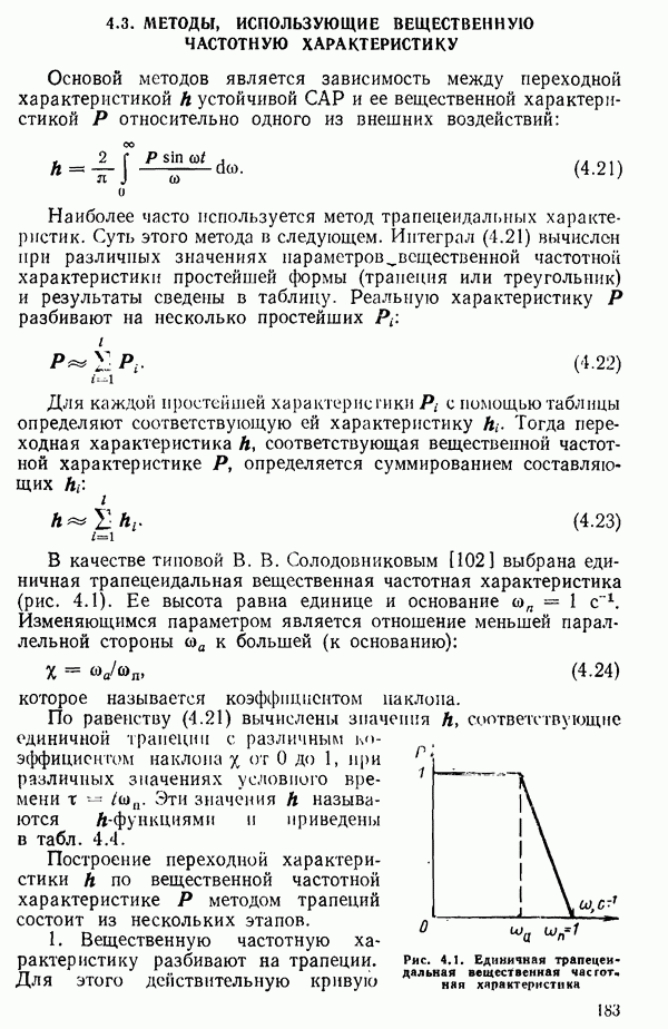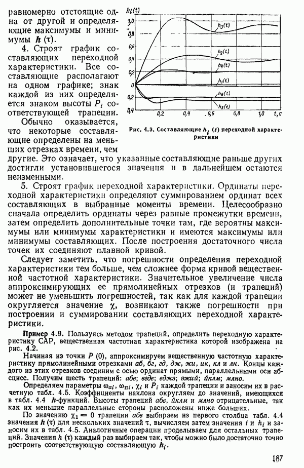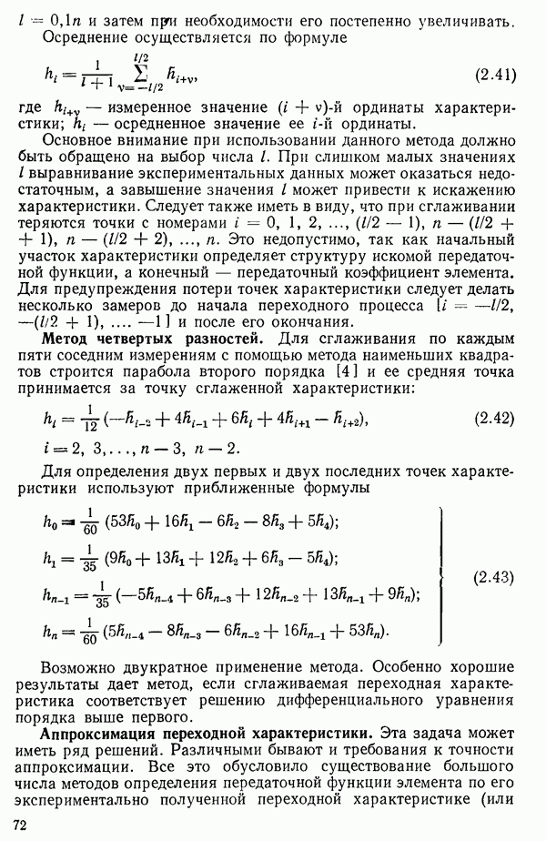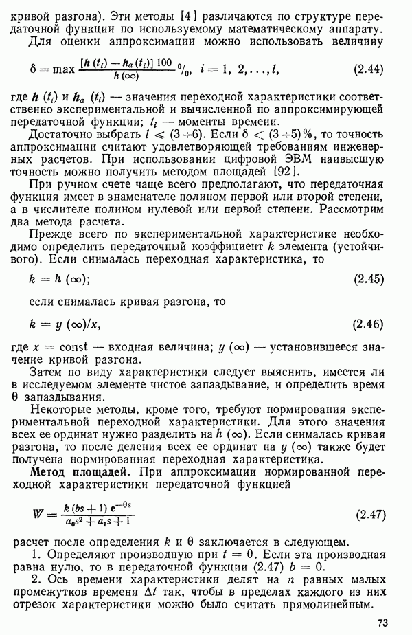 Известны методы определения АФЧХ при аппроксимации кривой разгона трапециями, треугольниками, тригонометрическими функциями или суммой парабол [4]. Шаблоны-транспоранты могут быть использованы для вычисления АФЧХ по кривой разгона после аппроксимации ее небольших участков простыми аналитическими функциями [49]. Предложен [88] метод, основанный на предположении, что кривая разгона представляет собою полупериод колебаний, которые устанавливаются на выходе системы при подаче на ее вход периодических колебаний прямоугольной формы. Используются и многие другие методы.