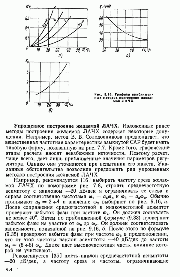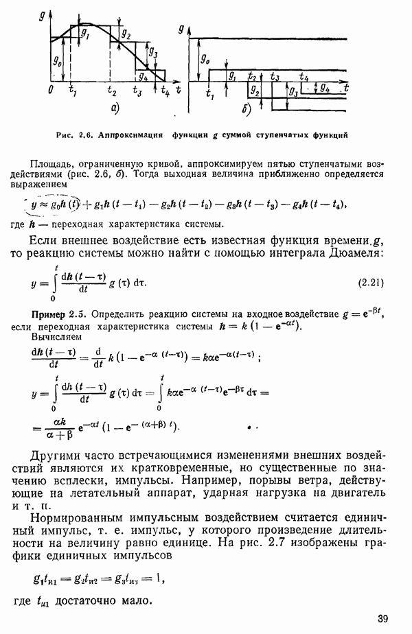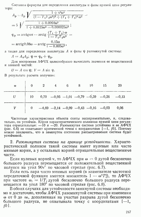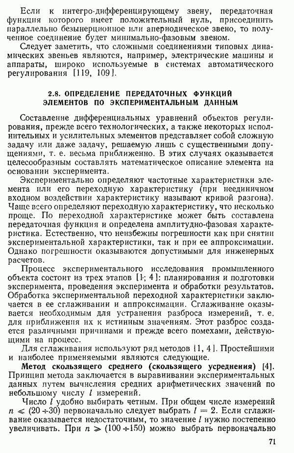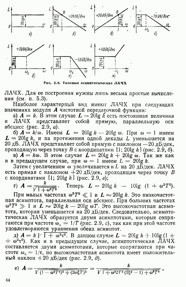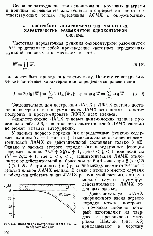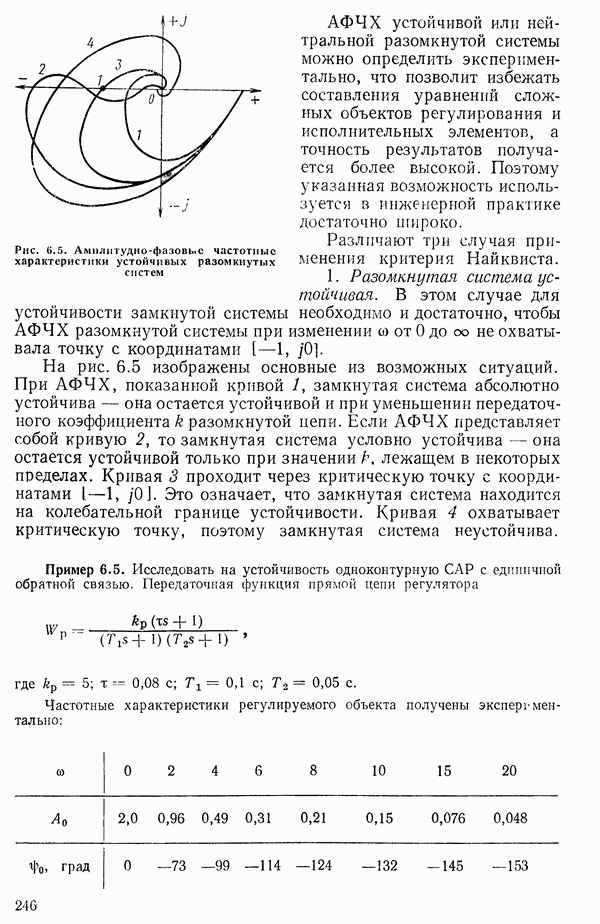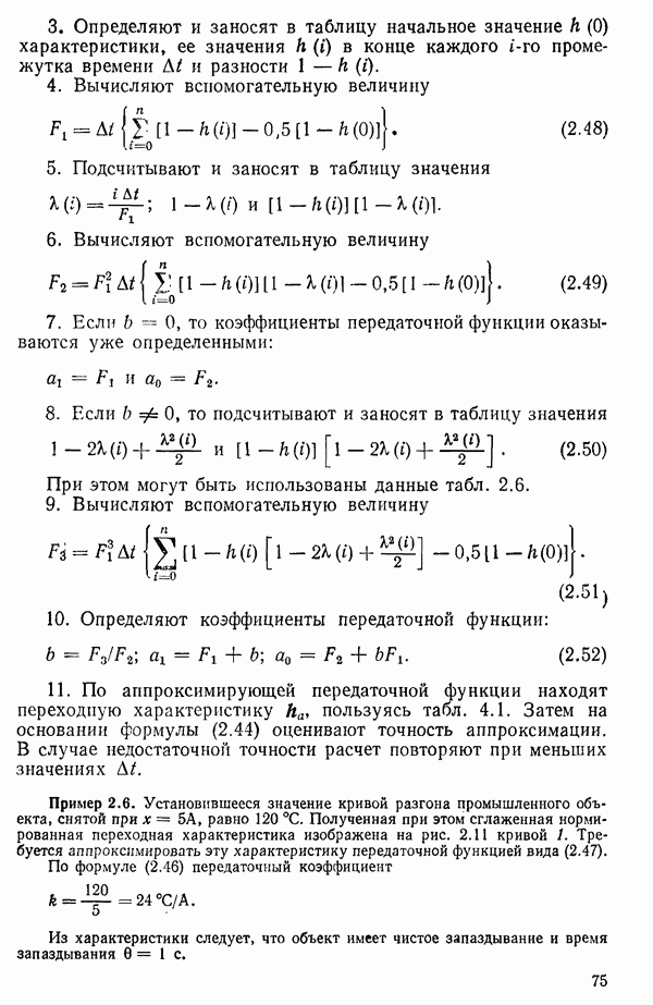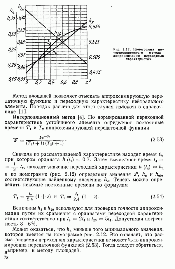 Известны методы определения АФЧХ при аппроксимации кривой разгона трапециями, треугольниками, тригонометрическими функциями или суммой парабол [4]. Шаблоны-транспоранты могут быть использованы для вычисления АФЧХ по кривой разгона после аппроксимации ее небольших участков простыми аналитическими функциями [49]. Предложен [88] метод, основанный на предположении, что кривая разгона представляет собою полупериод колебаний, которые устанавливаются на выходе системы при подаче на ее вход периодических колебаний прямоугольной формы. Используются и многие другие методы.