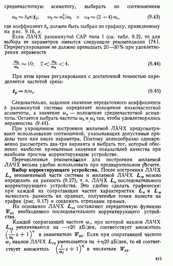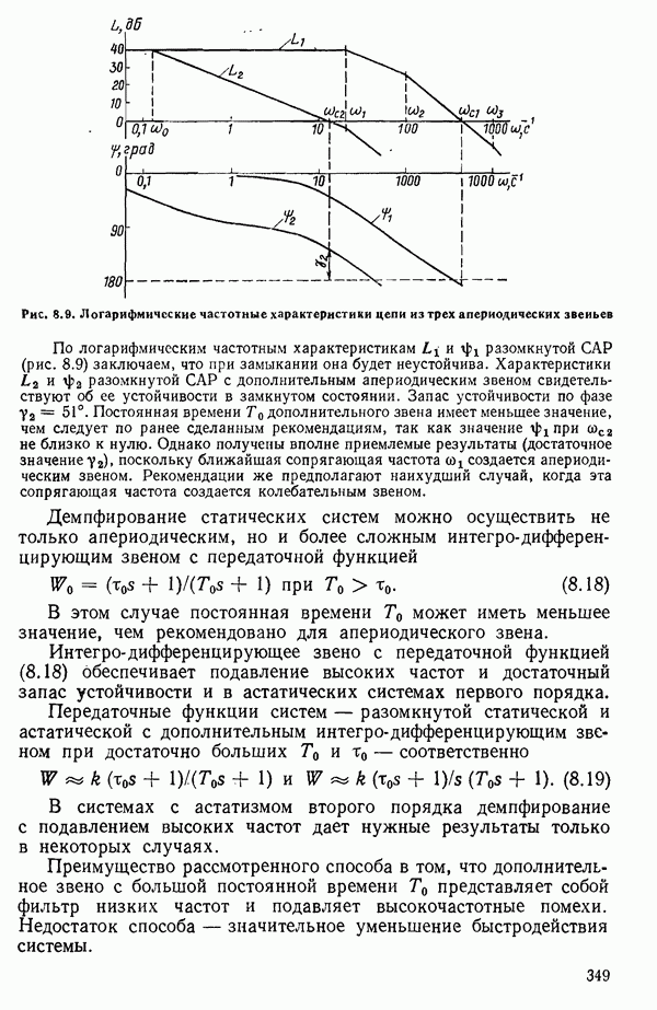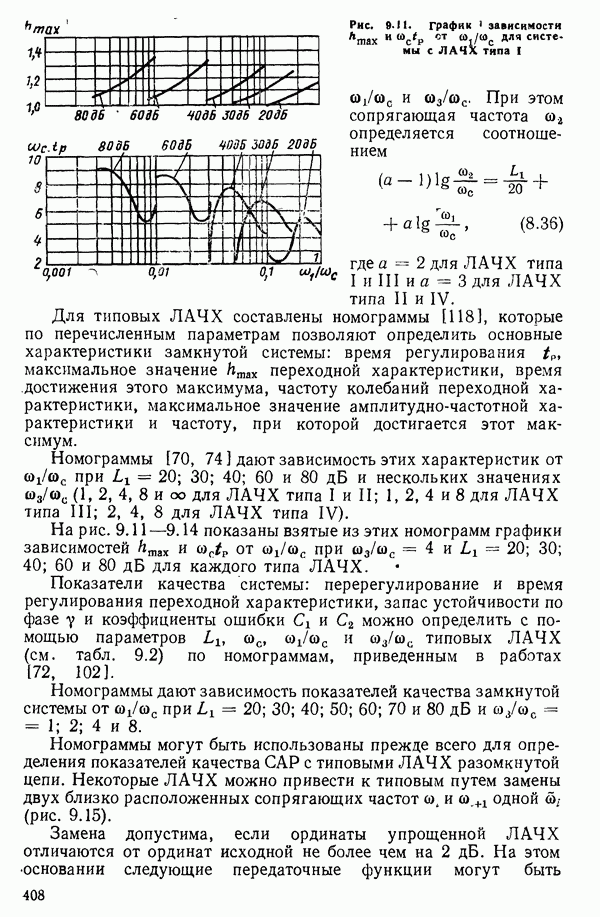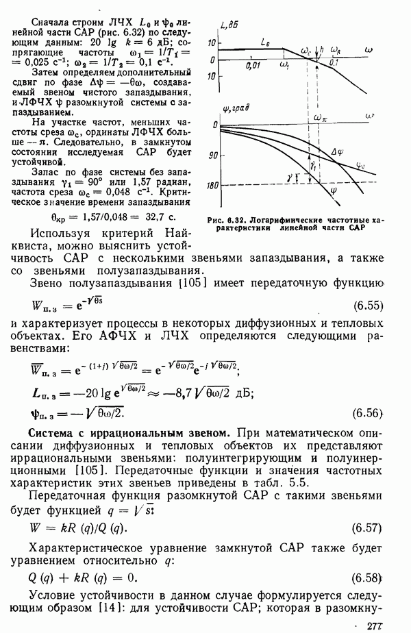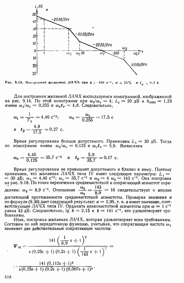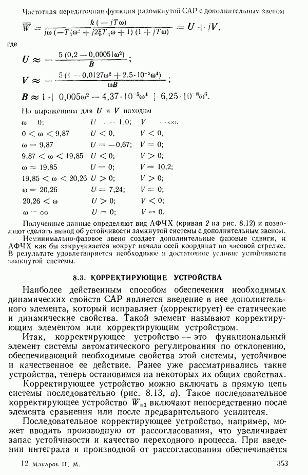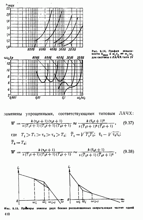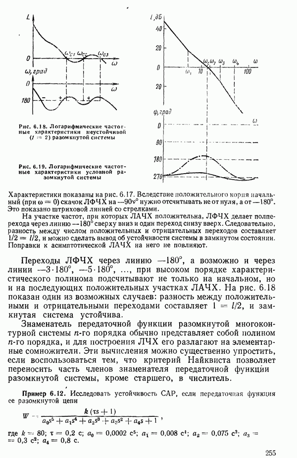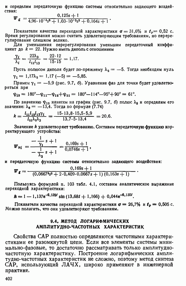 Известны методы определения АФЧХ при аппроксимации кривой разгона трапециями, треугольниками, тригонометрическими функциями или суммой парабол [4]. Шаблоны-транспоранты могут быть использованы для вычисления АФЧХ по кривой разгона после аппроксимации ее небольших участков простыми аналитическими функциями [49]. Предложен [88] метод, основанный на предположении, что кривая разгона представляет собою полупериод колебаний, которые устанавливаются на выходе системы при подаче на ее вход периодических колебаний прямоугольной формы. Используются и многие другие методы.