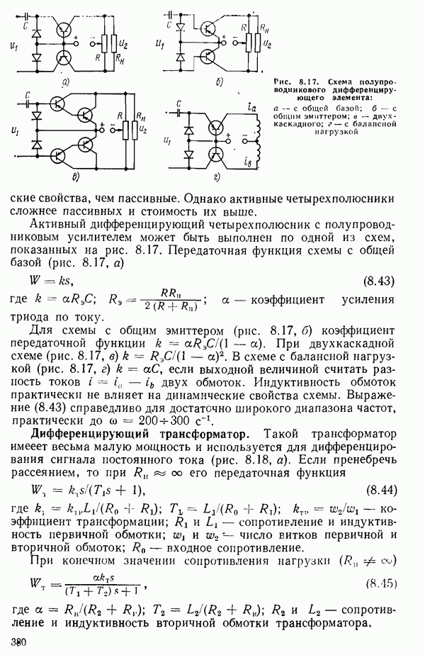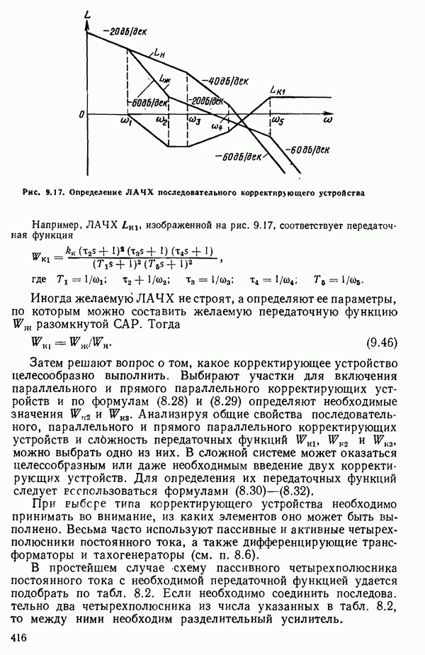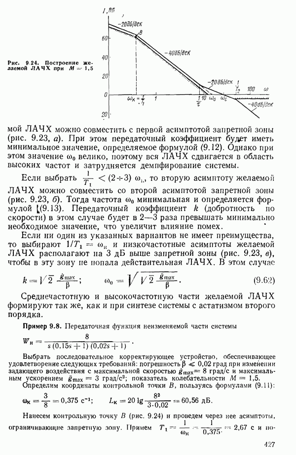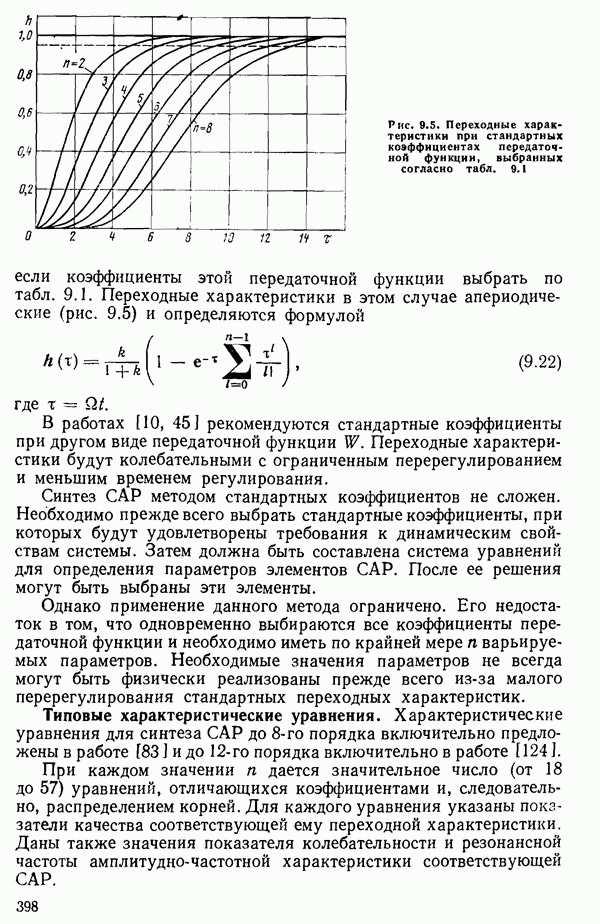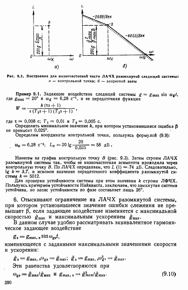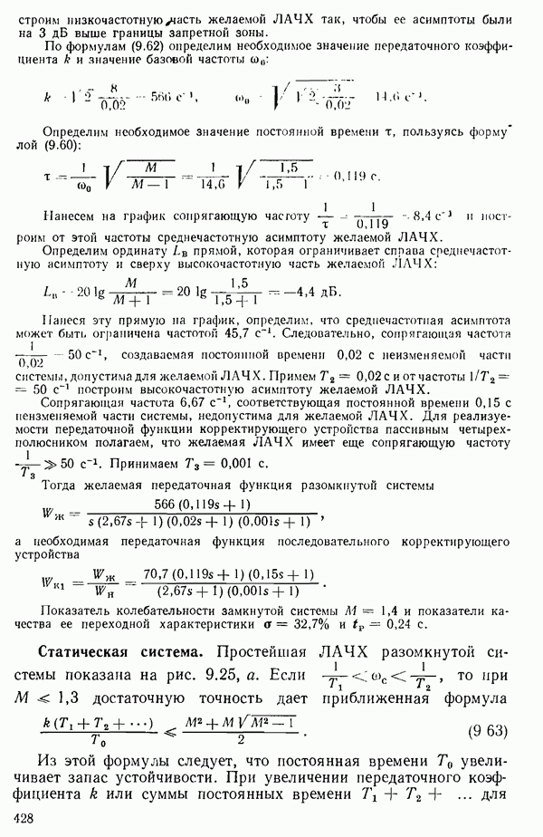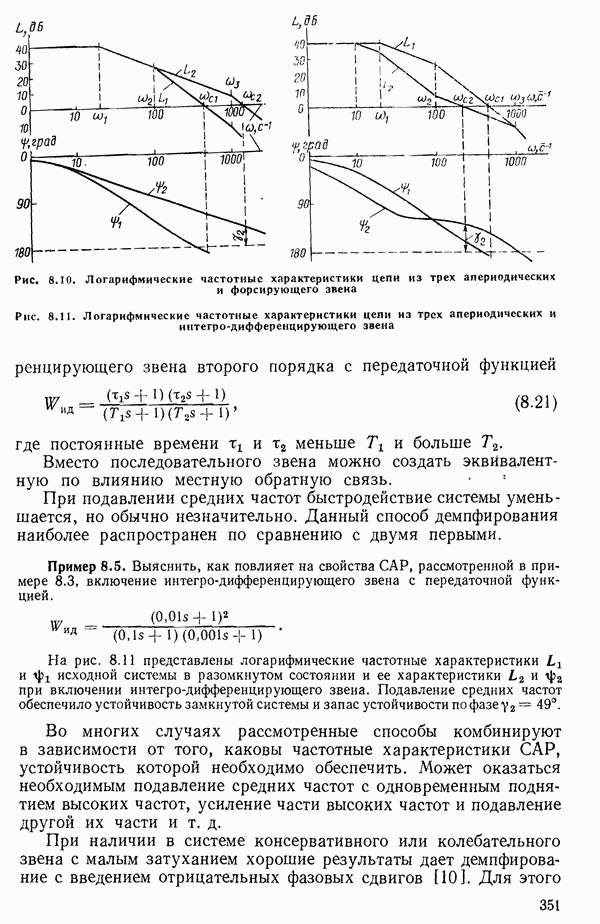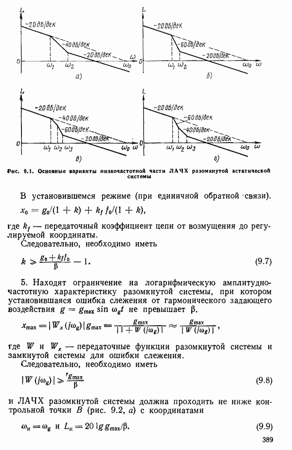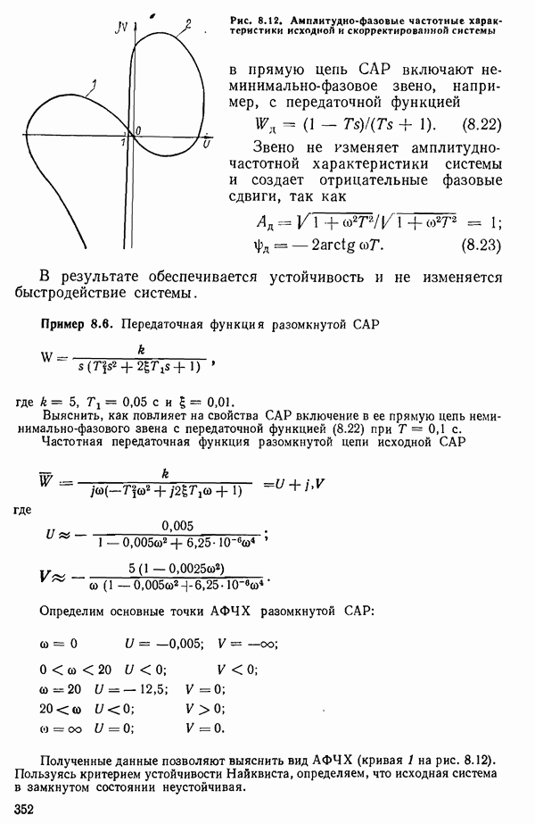 Известны методы определения АФЧХ при аппроксимации кривой разгона трапециями, треугольниками, тригонометрическими функциями или суммой парабол [4]. Шаблоны-транспоранты могут быть использованы для вычисления АФЧХ по кривой разгона после аппроксимации ее небольших участков простыми аналитическими функциями [49]. Предложен [88] метод, основанный на предположении, что кривая разгона представляет собою полупериод колебаний, которые устанавливаются на выходе системы при подаче на ее вход периодических колебаний прямоугольной формы. Используются и многие другие методы.