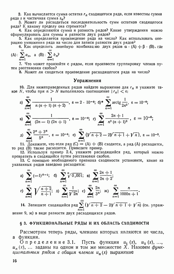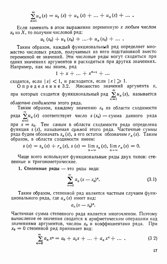§ 3. ФУНКЦИОНАЛЬНЫЕ РЯДЫ И ИХ ОБЛАСТЬ СХОДИМОСТИРассмотрим теперь ряды, членами которых являются не числа, а функции. Определение 3.1. Пусть функции
