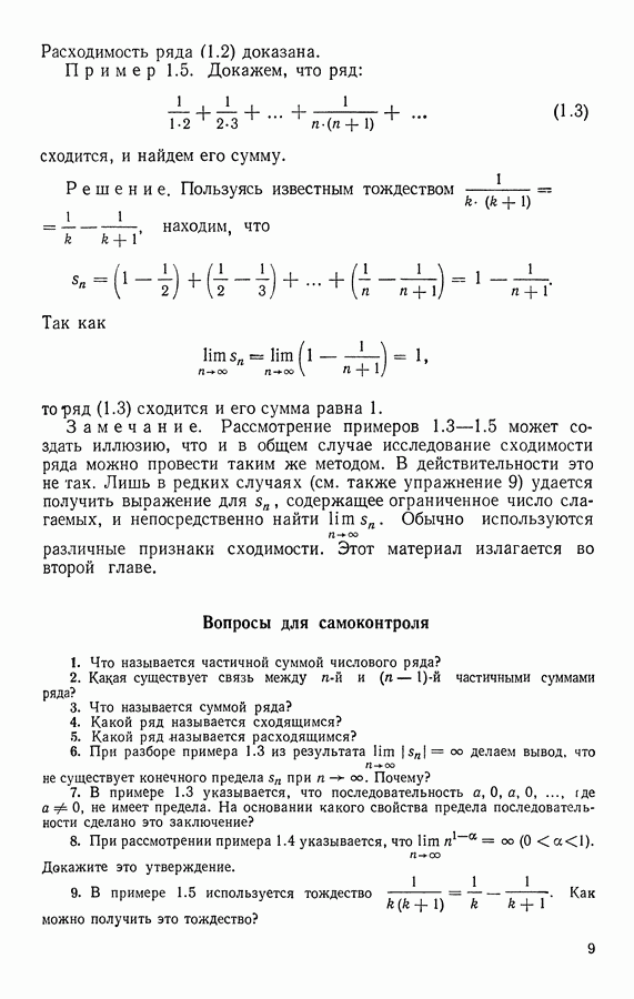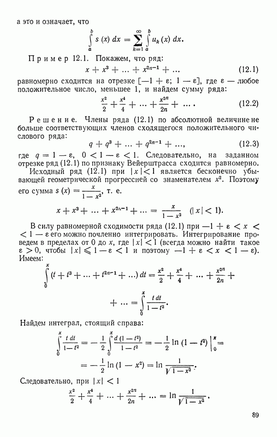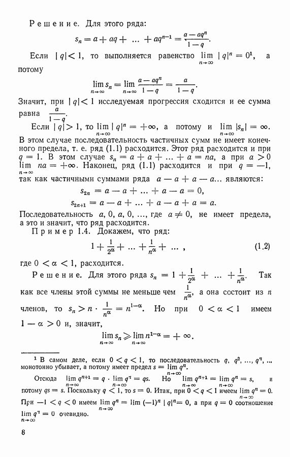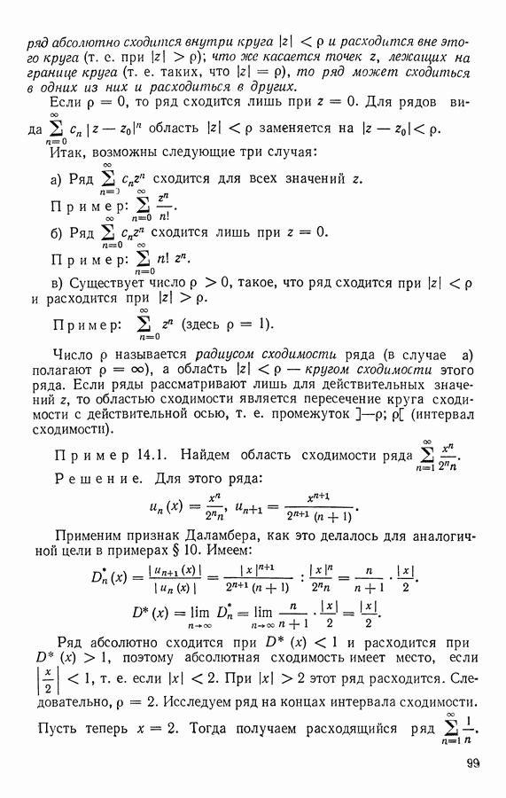 Таким образом, каждый функциональный ряд определяет множество числовых рядов, получаемых из него подстановкой вместо переменной ее значений. Эти числовые ряды могут сходиться при одних значениях аргументов и расходиться при других значениях. Например, как мы знаем, ряд