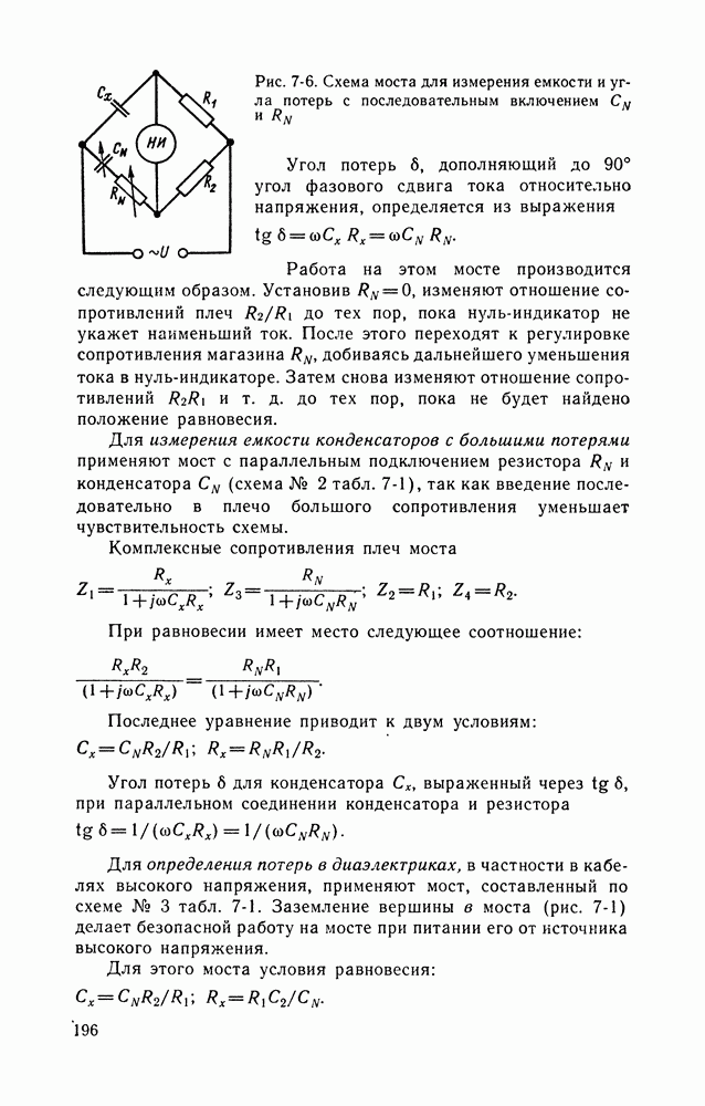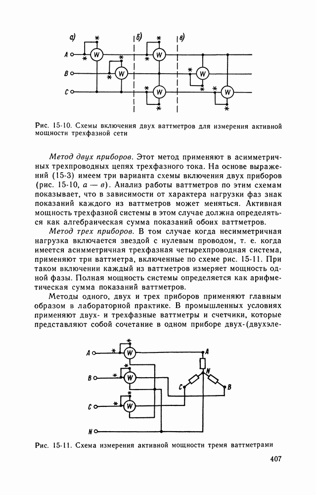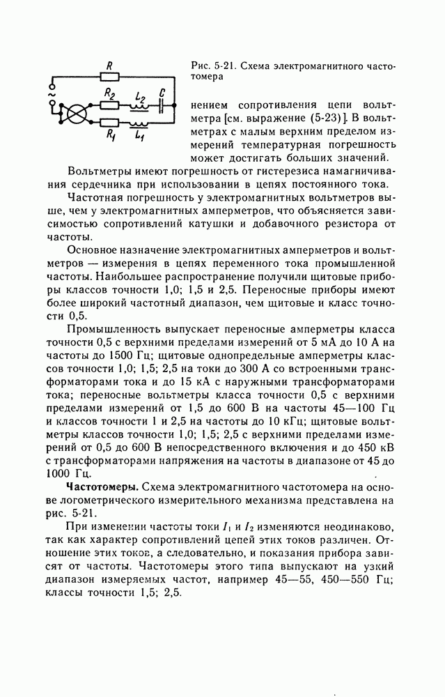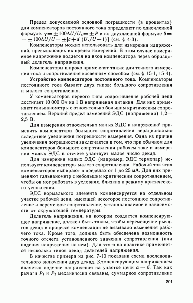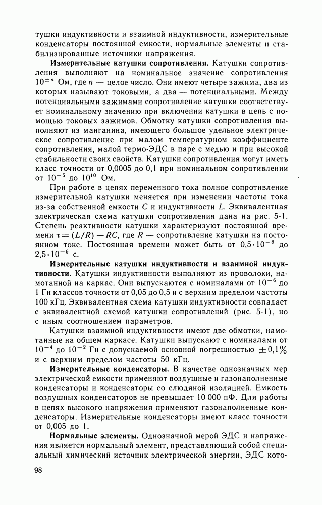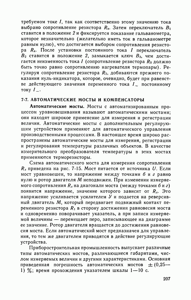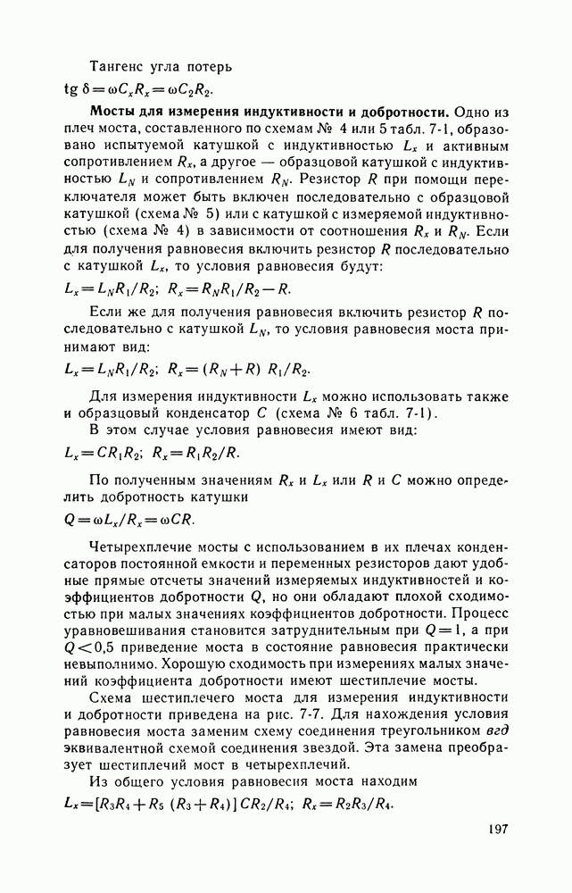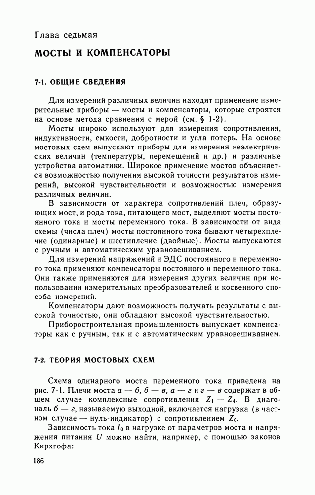 15-4. ИЗМЕРЕНИЯ ПАРАМЕТРОВ ЦЕПЕЙ ПОСТОЯННОГО И ПЕРЕМЕННОГО ТОКАИзмерение сопротивления постоянному току.Диапазон измеряемых в настоящее время сопротивлений достаточно широк (от Прямые измерения. Сопротивления в диапазоне от единиц ом до единиц и десятков мегом измеряют мостами (одинарными) постоянного тока, цифровыми, электронными и магнитоэлектрическими омметрами. Промышленность выпускает различные типы этих приборов, различающиеся точностью, удобством эксплуатации, габаритами, массой и другими характеристиками. В табл. 15-7 приведены классы точности или допускаемые основные погрешности (в процентах) на верхних пределах измерений, достигнутые в настоящее время для широко используемых средств измерений сопротивления постоянному току. Для измерения с высокой точностью применяют мосты постоянного тока. Так, мосты Таблица 15-7 (см. скан) требуют внешних источников питания и высокочувствительных нуль-индикаторов, в качестве которых наиболее часто используют гальванометры. Выпускают переносные мосты со встроенными гальванометром и источником питания. Однако они имеют меньшую точность измерений. Имеются также автоматические мосты, которые используются в основном для измерений сопротивлений терморезисторов (см. § 7-7). Высокую точность измерений можно получить, применяя цифровые приборы (см. табл. 15-7). Например, универсальный вольтметр типа При измерениях, когда не требуется высокой точности, применяют электронные и магнитоэлектрические омметры, выпускаемые в виде отдельных приборов, например