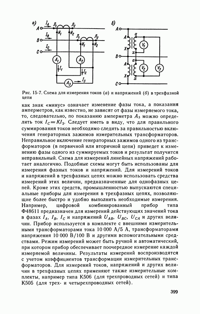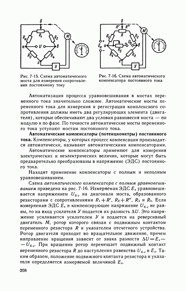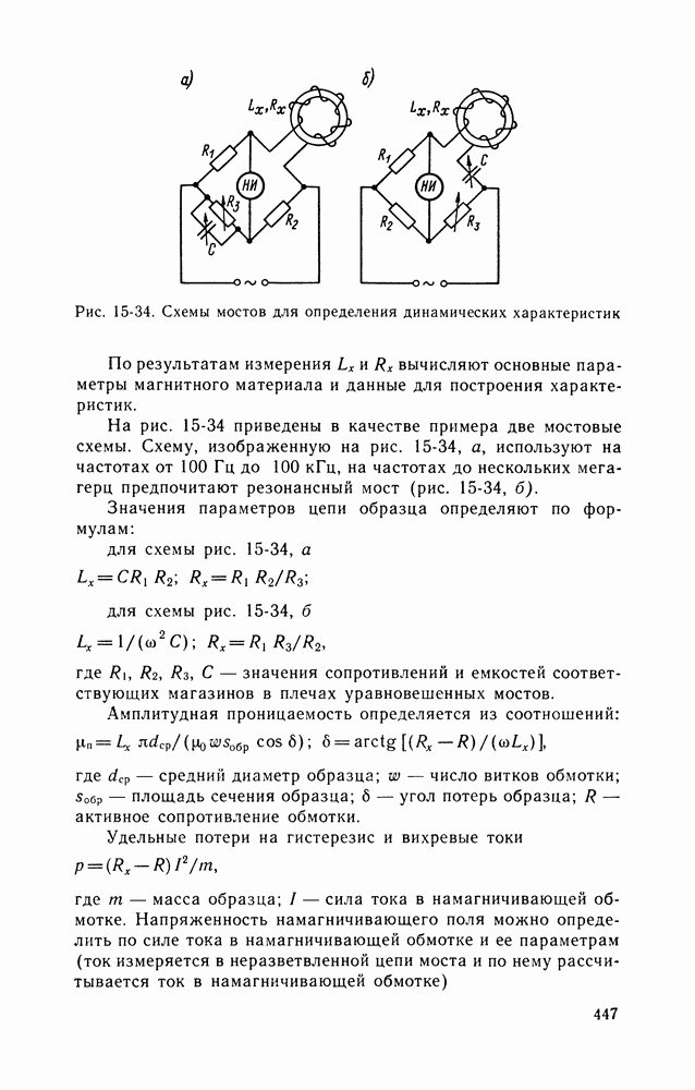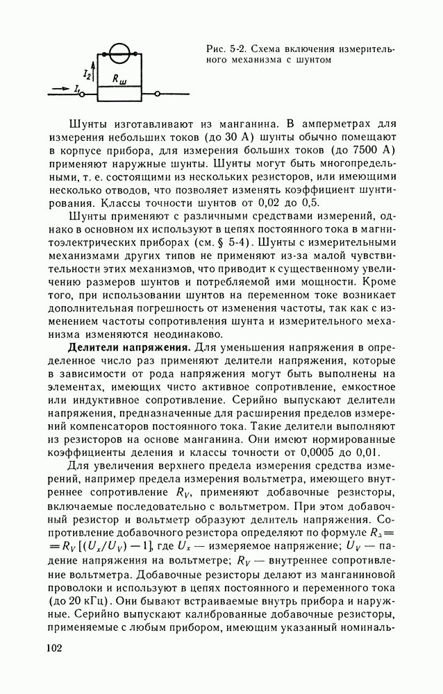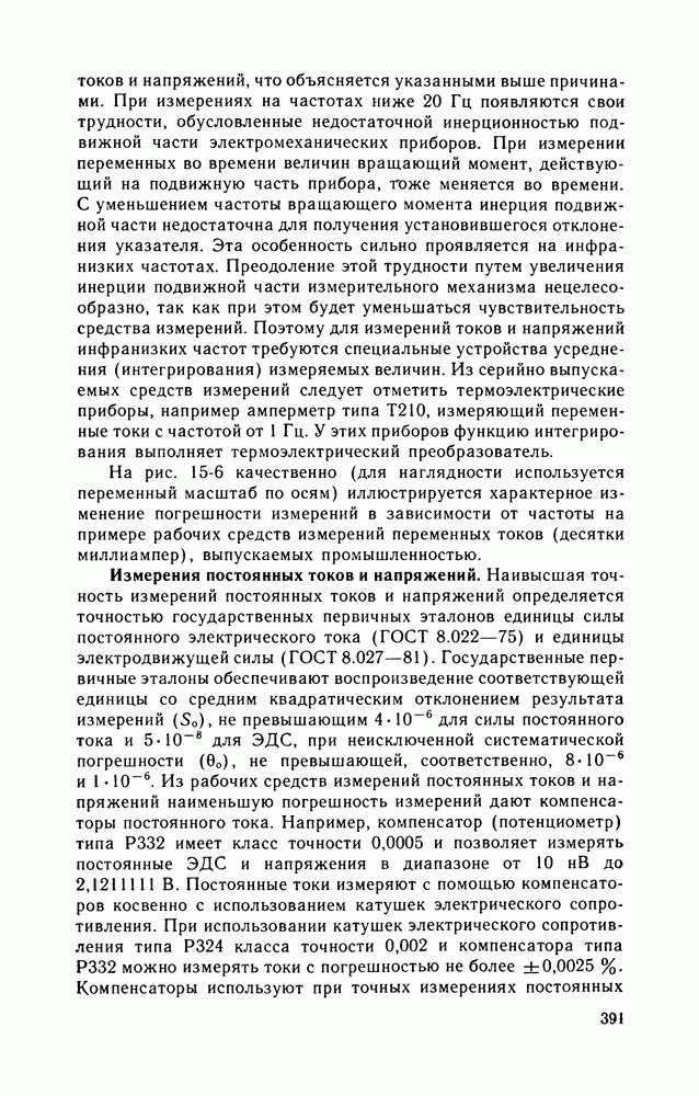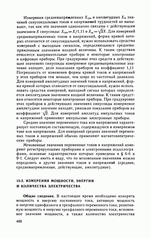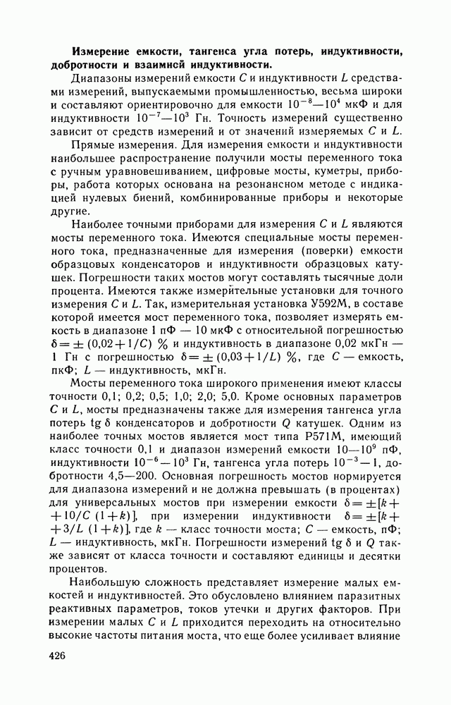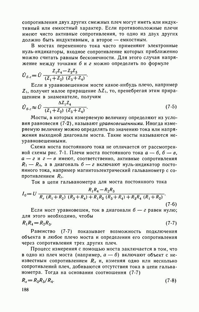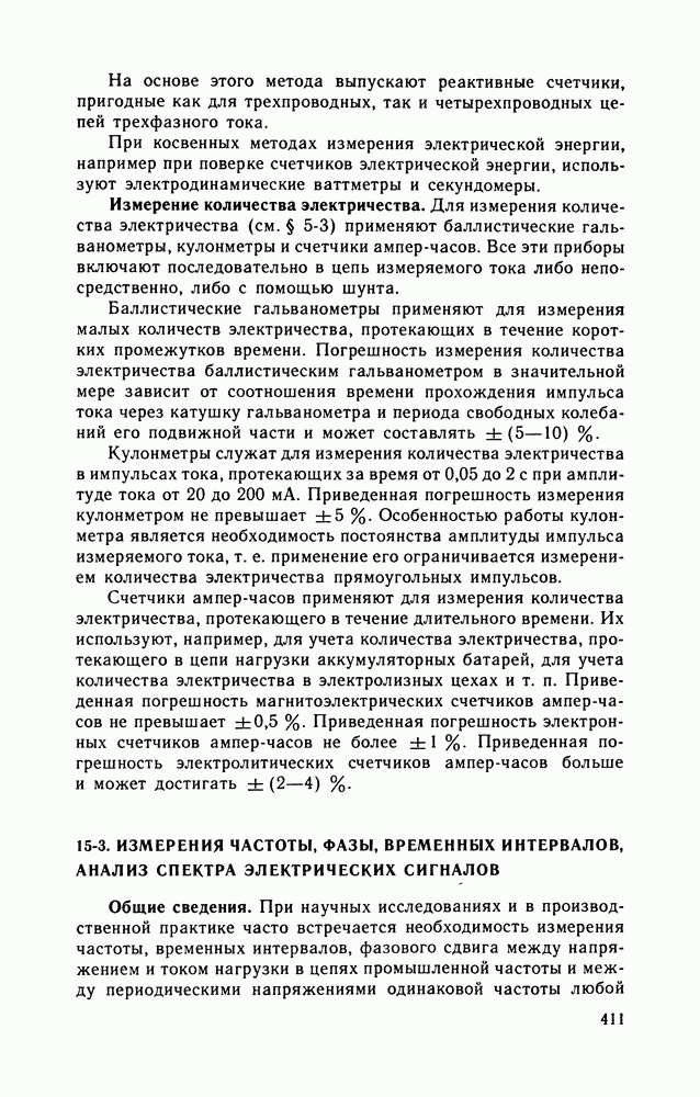 15-4. ИЗМЕРЕНИЯ ПАРАМЕТРОВ ЦЕПЕЙ ПОСТОЯННОГО И ПЕРЕМЕННОГО ТОКАИзмерение сопротивления постоянному току.Диапазон измеряемых в настоящее время сопротивлений достаточно широк (от Прямые измерения. Сопротивления в диапазоне от единиц ом до единиц и десятков мегом измеряют мостами (одинарными) постоянного тока, цифровыми, электронными и магнитоэлектрическими омметрами. Промышленность выпускает различные типы этих приборов, различающиеся точностью, удобством эксплуатации, габаритами, массой и другими характеристиками. В табл. 15-7 приведены классы точности или допускаемые основные погрешности (в процентах) на верхних пределах измерений, достигнутые в настоящее время для широко используемых средств измерений сопротивления постоянному току. Для измерения с высокой точностью применяют мосты постоянного тока. Так, мосты Таблица 15-7 (см. скан) требуют внешних источников питания и высокочувствительных нуль-индикаторов, в качестве которых наиболее часто используют гальванометры. Выпускают переносные мосты со встроенными гальванометром и источником питания. Однако они имеют меньшую точность измерений. Имеются также автоматические мосты, которые используются в основном для измерений сопротивлений терморезисторов (см. § 7-7). Высокую точность измерений можно получить, применяя цифровые приборы (см. табл. 15-7). Например, универсальный вольтметр типа При измерениях, когда не требуется высокой точности, применяют электронные и магнитоэлектрические омметры, выпускаемые в виде отдельных приборов, например