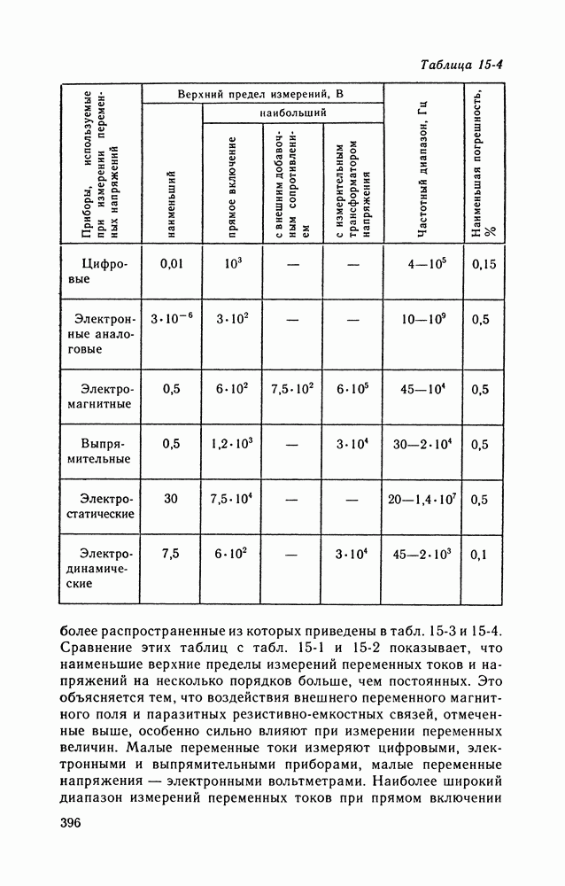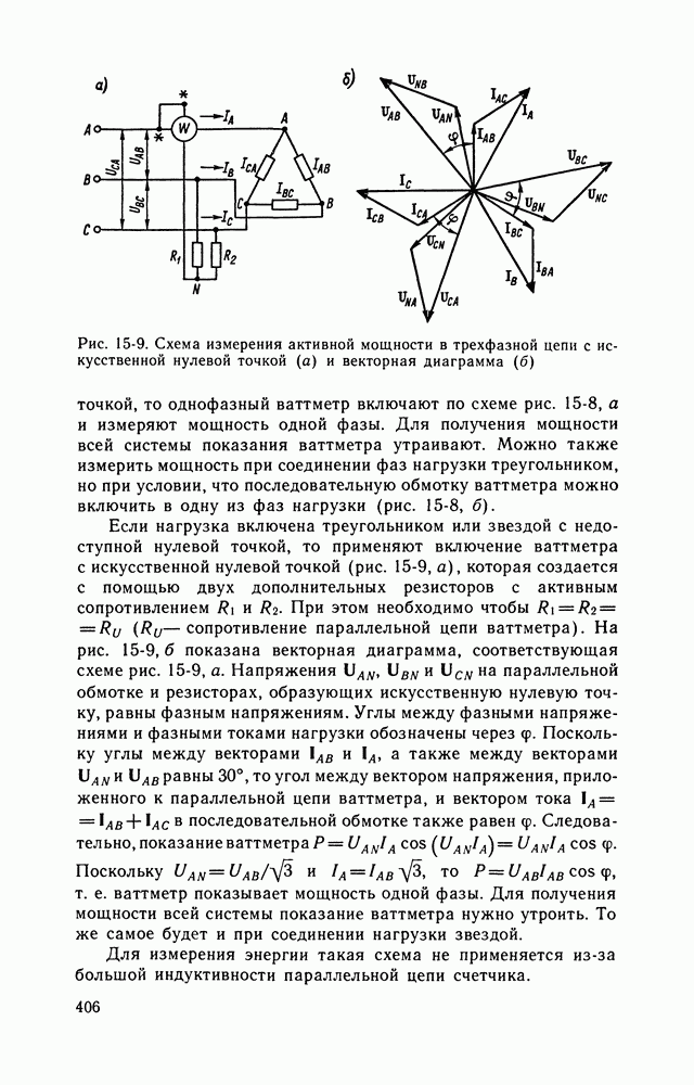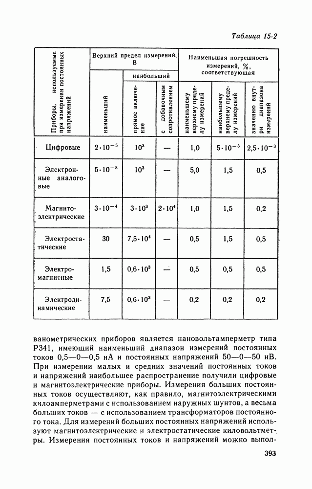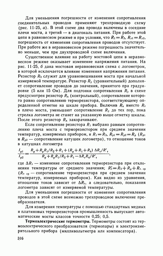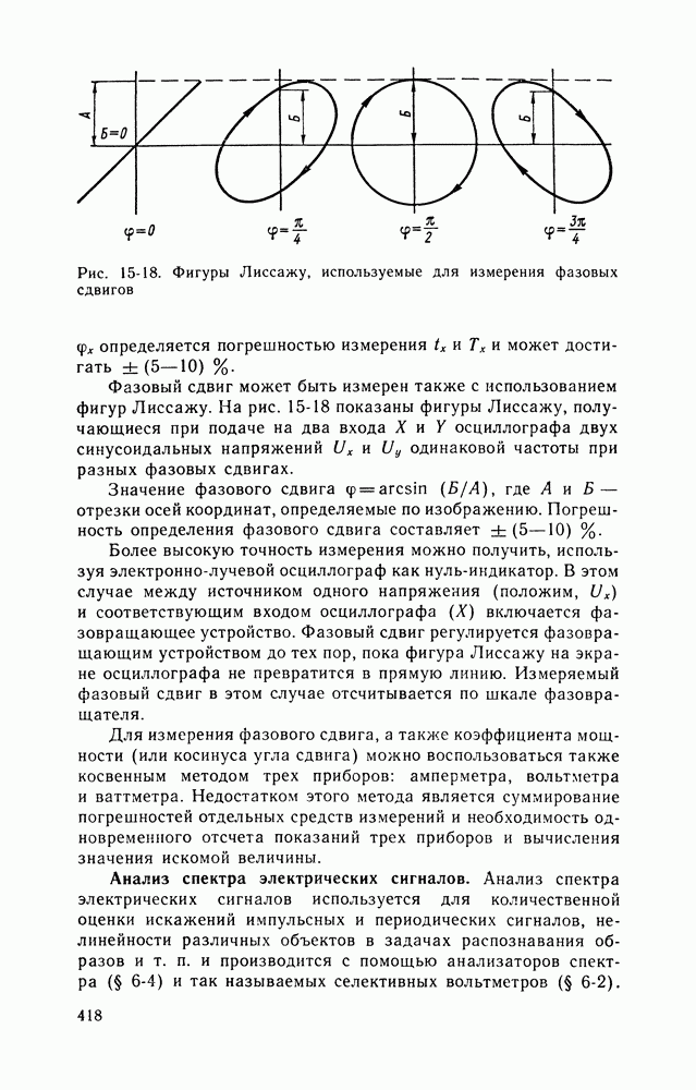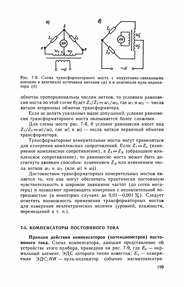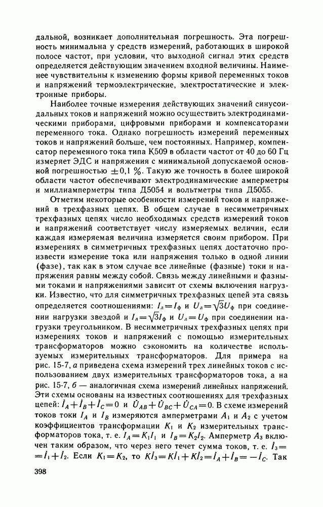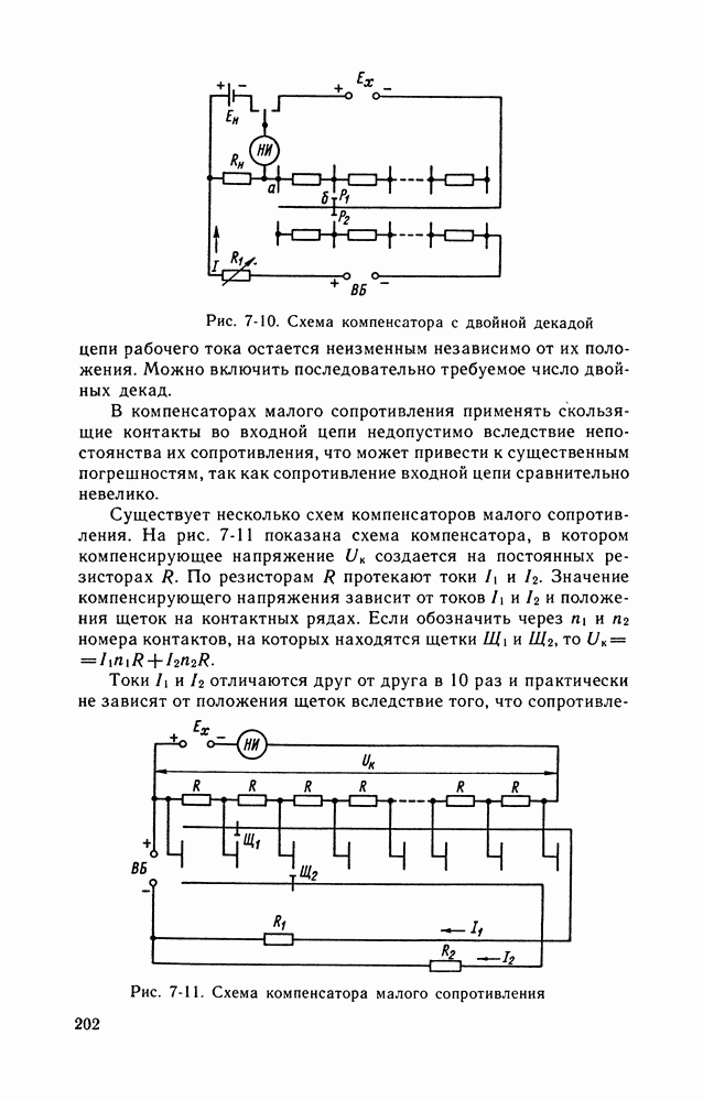 15-4. ИЗМЕРЕНИЯ ПАРАМЕТРОВ ЦЕПЕЙ ПОСТОЯННОГО И ПЕРЕМЕННОГО ТОКАИзмерение сопротивления постоянному току.Диапазон измеряемых в настоящее время сопротивлений достаточно широк (от Прямые измерения. Сопротивления в диапазоне от единиц ом до единиц и десятков мегом измеряют мостами (одинарными) постоянного тока, цифровыми, электронными и магнитоэлектрическими омметрами. Промышленность выпускает различные типы этих приборов, различающиеся точностью, удобством эксплуатации, габаритами, массой и другими характеристиками. В табл. 15-7 приведены классы точности или допускаемые основные погрешности (в процентах) на верхних пределах измерений, достигнутые в настоящее время для широко используемых средств измерений сопротивления постоянному току. Для измерения с высокой точностью применяют мосты постоянного тока. Так, мосты Таблица 15-7 (см. скан) требуют внешних источников питания и высокочувствительных нуль-индикаторов, в качестве которых наиболее часто используют гальванометры. Выпускают переносные мосты со встроенными гальванометром и источником питания. Однако они имеют меньшую точность измерений. Имеются также автоматические мосты, которые используются в основном для измерений сопротивлений терморезисторов (см. § 7-7). Высокую точность измерений можно получить, применяя цифровые приборы (см. табл. 15-7). Например, универсальный вольтметр типа При измерениях, когда не требуется высокой точности, применяют электронные и магнитоэлектрические омметры, выпускаемые в виде отдельных приборов, например