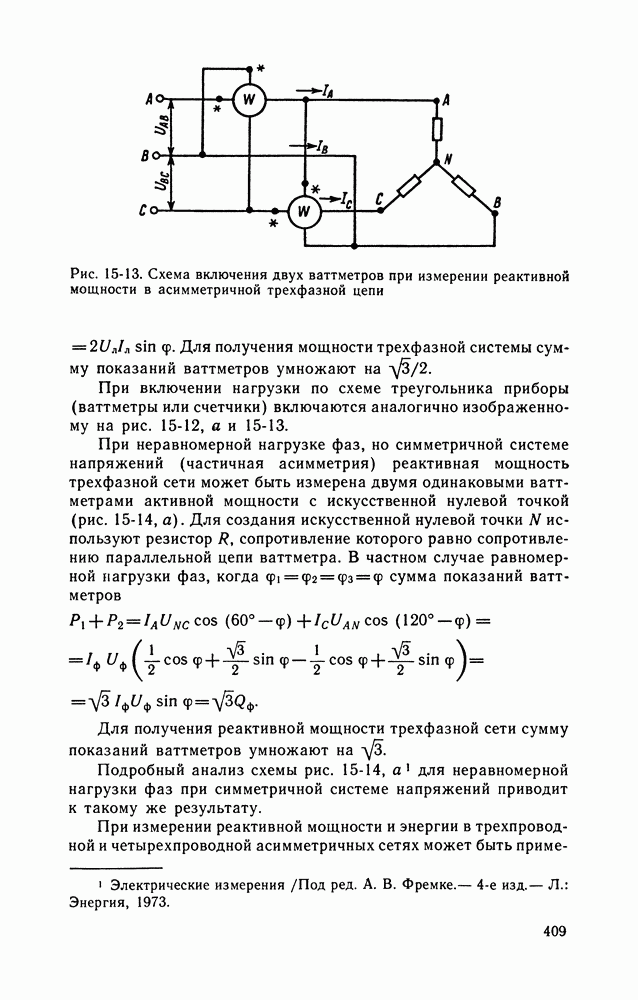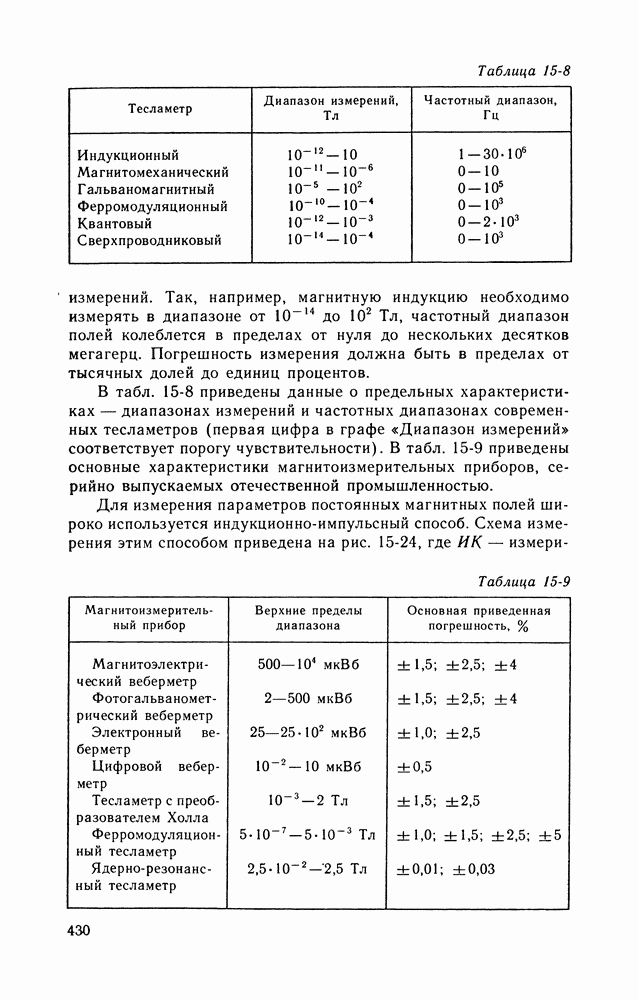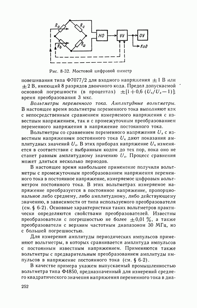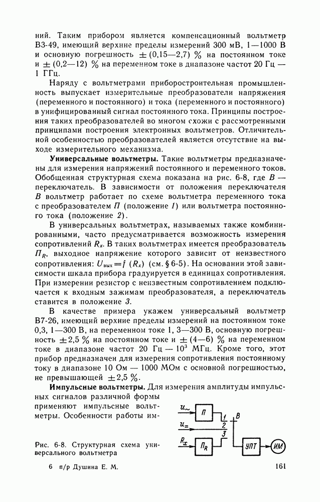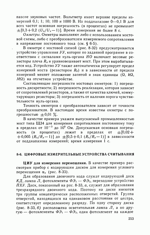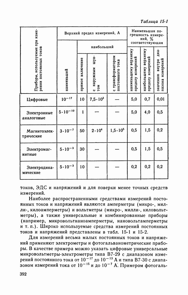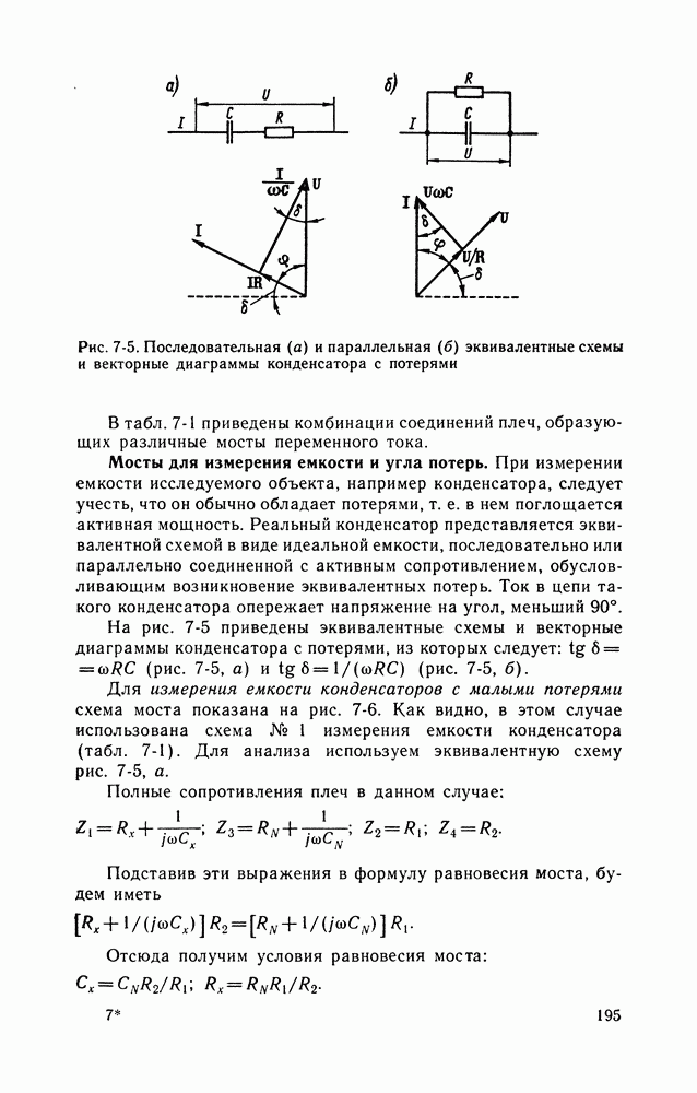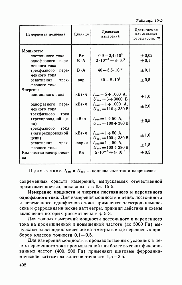 15-4. ИЗМЕРЕНИЯ ПАРАМЕТРОВ ЦЕПЕЙ ПОСТОЯННОГО И ПЕРЕМЕННОГО ТОКАИзмерение сопротивления постоянному току.Диапазон измеряемых в настоящее время сопротивлений достаточно широк (от Прямые измерения. Сопротивления в диапазоне от единиц ом до единиц и десятков мегом измеряют мостами (одинарными) постоянного тока, цифровыми, электронными и магнитоэлектрическими омметрами. Промышленность выпускает различные типы этих приборов, различающиеся точностью, удобством эксплуатации, габаритами, массой и другими характеристиками. В табл. 15-7 приведены классы точности или допускаемые основные погрешности (в процентах) на верхних пределах измерений, достигнутые в настоящее время для широко используемых средств измерений сопротивления постоянному току. Для измерения с высокой точностью применяют мосты постоянного тока. Так, мосты Таблица 15-7 (см. скан) требуют внешних источников питания и высокочувствительных нуль-индикаторов, в качестве которых наиболее часто используют гальванометры. Выпускают переносные мосты со встроенными гальванометром и источником питания. Однако они имеют меньшую точность измерений. Имеются также автоматические мосты, которые используются в основном для измерений сопротивлений терморезисторов (см. § 7-7). Высокую точность измерений можно получить, применяя цифровые приборы (см. табл. 15-7). Например, универсальный вольтметр типа При измерениях, когда не требуется высокой точности, применяют электронные и магнитоэлектрические омметры, выпускаемые в виде отдельных приборов, например