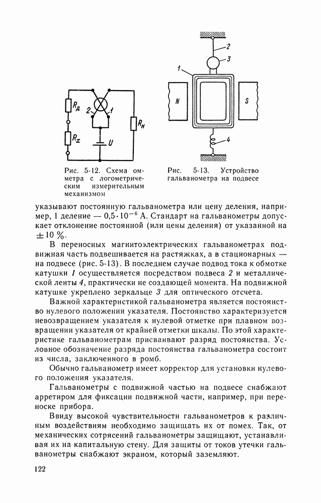 Рис. 15-20. Схемы измерений сопротивлений методом сравнения на Большие сопротивления можно измерять, используя заряд конденсатора С (см. рис. 15-21) через объект с неизвестным сопротивлением Первое максимальное отклонение баллистического гальванометра