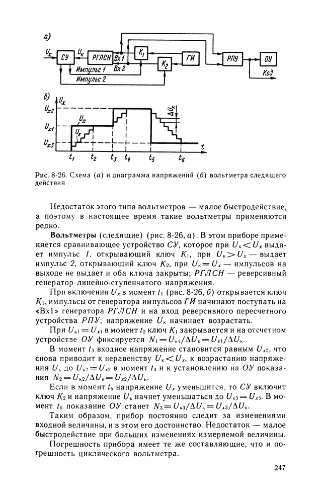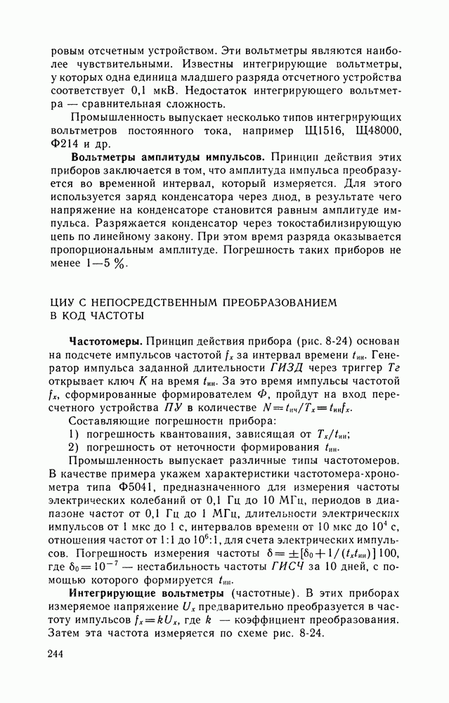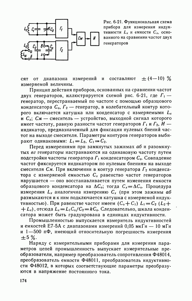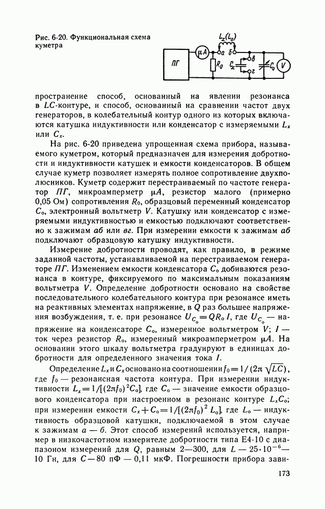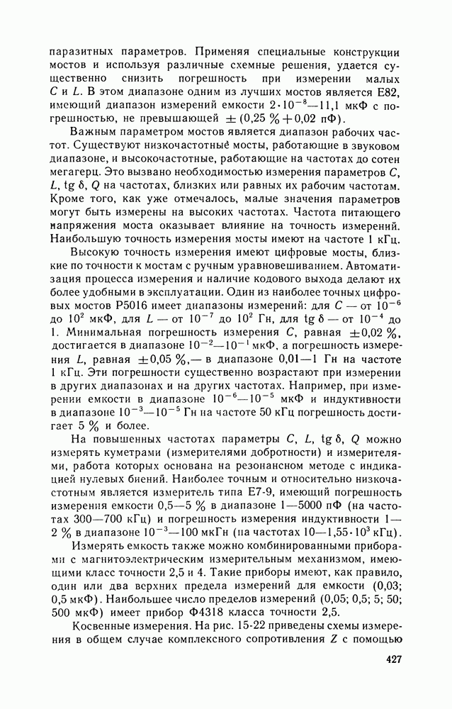 Рис. 15-21. Схема измерений больших сопротивлений по заряду и разряду конденсатора Измерение емкости, тангенса угла потерь, индуктивности, добротности и взаимной индуктивности.Диапазоны измерений емкости С и индуктивности Прямые измерения. Для измерения емкости и индуктивности наибольшее распространение получили мосты переменного тока с ручным уравновешиванием, цифровые мосты, куметры, приборы, работа которых основана на резонансном методе с индикацией нулевых биений, комбинированные приборы и некоторые другие. Наиболее точными приборами для измерения С и Мосты переменного тока широкого применения имеют классы точности 0,1; 0,2; 0,5; 1,0; 2,0; 5,0. Кроме основных параметров С и Наибольшую сложность представляет измерение малых емкостей и индуктивностей. Это обусловлено влиянием паразитных реактивных параметров, токов утечки и других факторов. При измерении малых С и паразитных параметров. Применяя специальные конструкции мостов и используя различные схемные решения, удается существенно снизить погрешность при измерении малых С и Важным параметром мостов является диапазон рабочих частот. Существуют низкочастотныё мосты, работающие в звуковом диапазоне, и высокочастотные, работающие на частотах до сотен мегагерц. Это вызвано необходимостью измерения параметров Высокую точность измерения имеют цифровые мосты, близкие по точности к мостам с ручным уравновешиванием. Автоматизация процесса измерения и наличие кодового выхода делают их более удобными в эксплуатации. Один из наиболее точных цифровых мостов На повышенных частотах параметры Измерять емкость также можно комбинированными приборами с магнитоэлектрическим измерительным механизмом, имеющими класс точности 2,5 и 4. Такие приборы имеют, как правило, один или два верхних предела измерений для емкости (0,03; 0,5 мкФ). Наибольшее число пределов измерений (0,05; 0,5; 5; 50; 500 мкФ) имеет прибор Косвенные измерения. На рис. 15-22 приведены схемы измерения в общем случае комплексного сопротивления