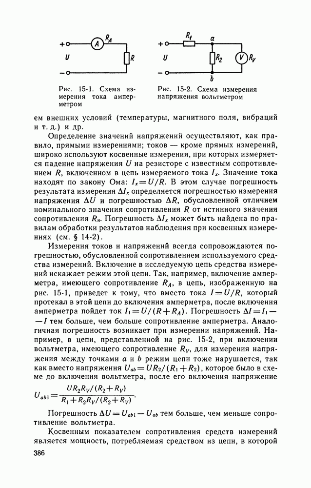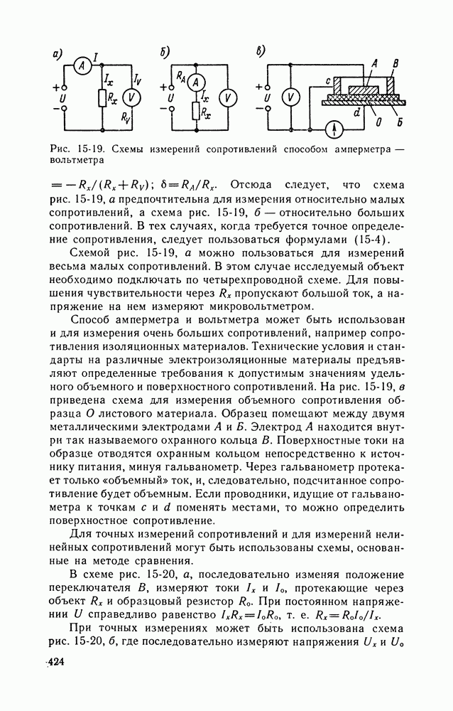Рис. 15-19. Схемы измерений сопротивлений способом амперметра — вольтметра