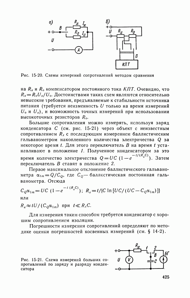 Для измерения таким способом требуется конденсатор с хорошим сопротивлением изоляции. Погрешности измерения сопротивлений определяют по методике оценки погрешностей косвенных измерений (см. § 14-2).