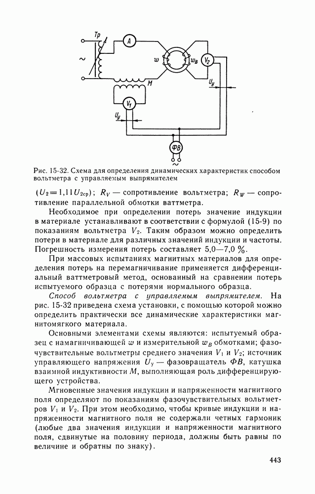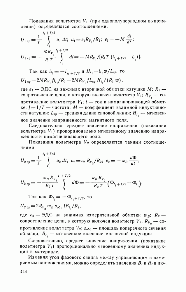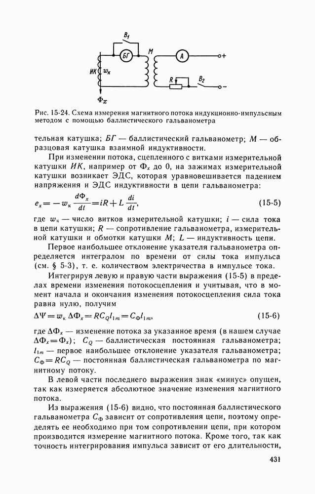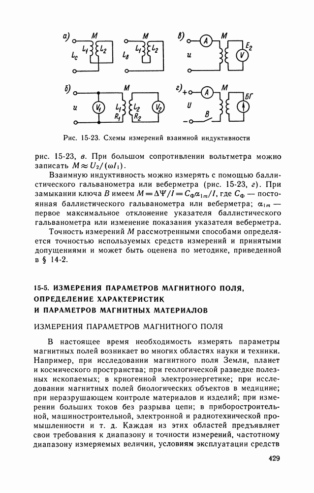 Рис. 15-23. Схемы измерений взаимной индуктивности рис. 15-23, в. При большом сопротивлении вольтметра можно записать Взаимную индуктивность можно измерять с помощью баллистического гальванометра или веберметра (рис. 15-23, г). При замыкании ключа В имеем Точность измерений М рассмотренными способами определяется точностью используемых средств измерений и принятыми допущениями и может быть оценена по методике, приведенной в § 14-2.