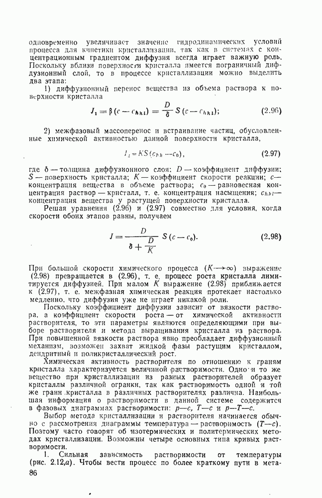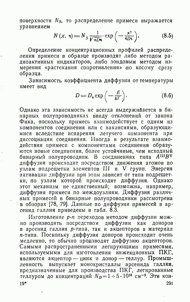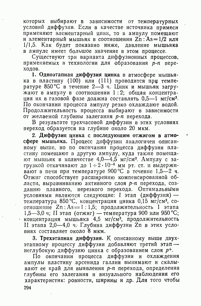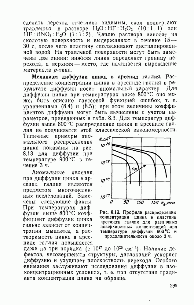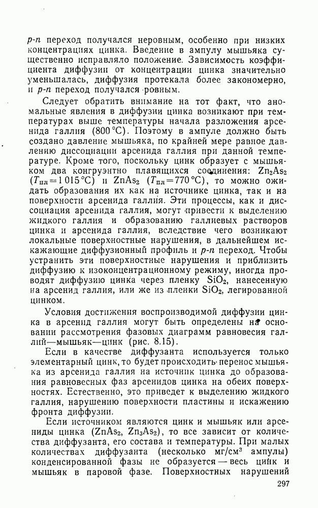Наличие температурного градиента создает разные равновесные концентрации в зоне источника и зоне подложки и, следовательно, по длине ампулы возникают концентрационные градиенты компонентов газовой фазы. Вследствие температурного и концентрационного градиентов в ампуле имеют место конвекционные и диффузионные потоки, в результате которых в зоне источника происходит переход арсенида галлия в газовую фазу в виде