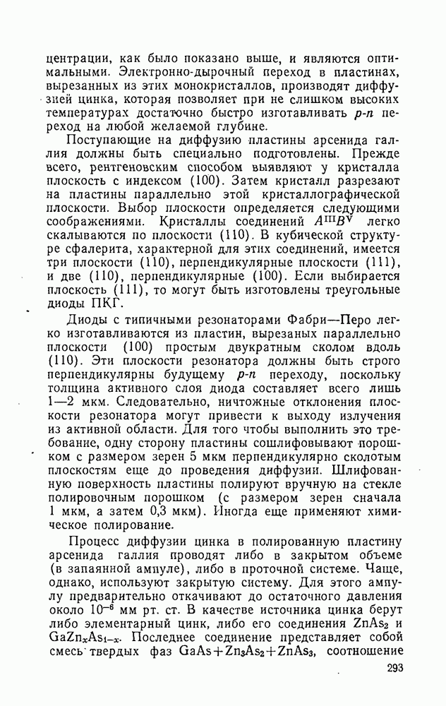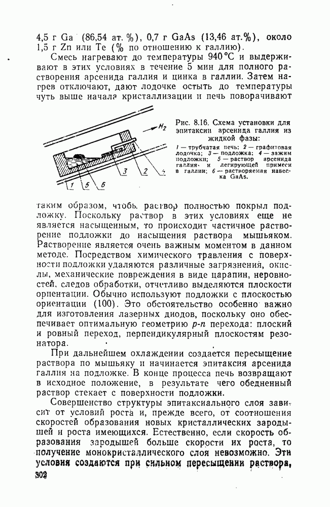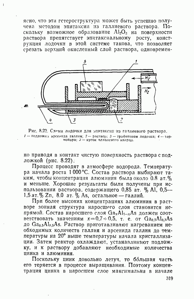 Выделяющийся галлий взаимодействует с парами мышьяка с образованием молекул арсенида галлия, которые кристаллизуются на подложке. Для того чтобы рост происходил только на подложке, применяют локальное охлаждение путем отвода тепла от ампулы под подложкой по металлической проволоке, выведенной из печи. Оптимальные условия процесса следующие: средняя температура В качестве переносимых веществ в закрытой системе применяют не только йод, но и йодиды и хлориды галлия и мышьяка, а также хлористый водород и хлориды других металлов (цинка, кадмия, свинца, ртути). Если в закрытой системе в каждой зоне существуют квазиравновесные условия, смещенные относительно друг друга благодаря концентрационному градиенту, то в открытой системе условия гораздо более динамичны. Постоянный проток газа обеспечивает непрерывную доставку галлия и мышьяка в зону кристаллизации. Одним из наиболее простых методов эпитаксии арсенида галлия в открытой системе является перенос с помощью водяного пара. Механизм процесса может быть описан реакцией