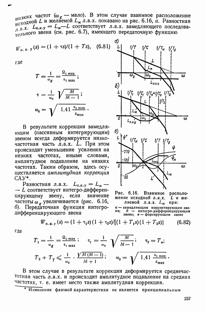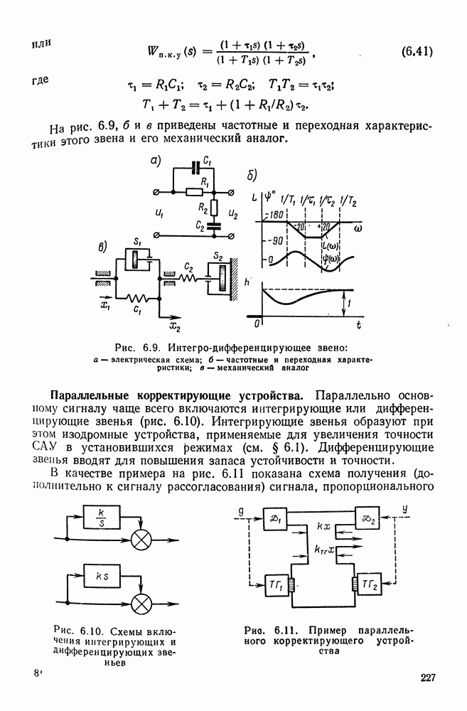 Параллельно основному сигналу чаще всего включаются интегрирующие или дифференцирующие звенья (рис. 6.10). Интегрирующие звенья образуют при этом изодромные устройства, применяемые для увеличения точности САУ в установившихся режимах (см. § 6.1). Дифференцирующие звенья вводят для повышения запаса устойчивости и точности.