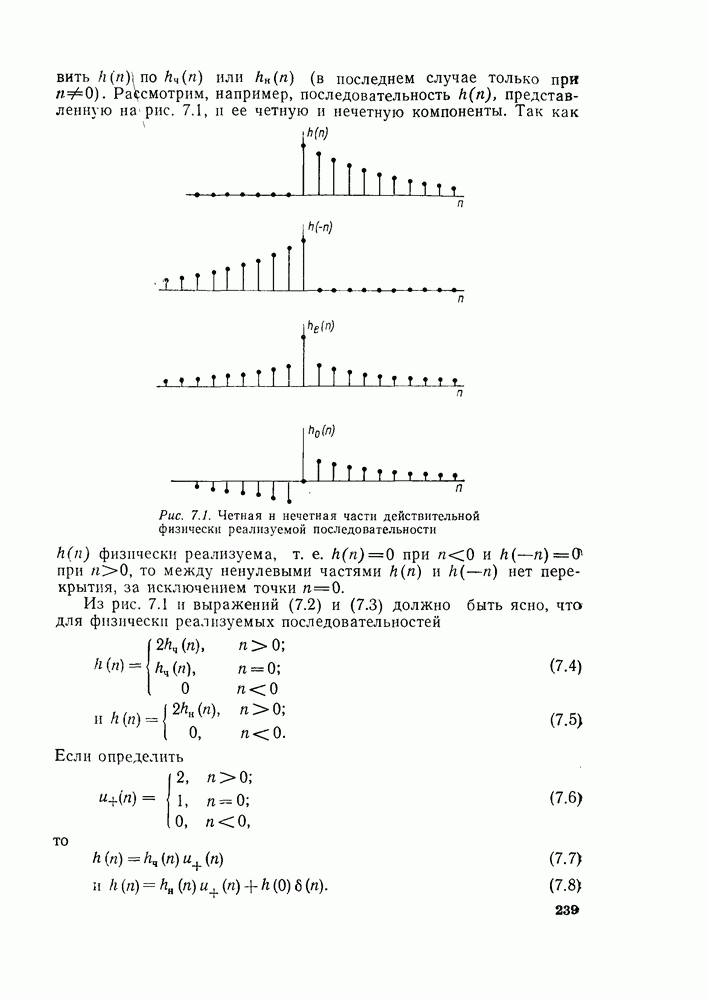 Рис. 7.9. Четизя и нечетная части периодической действительной «физически реализуемой» последовательности