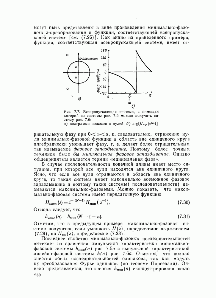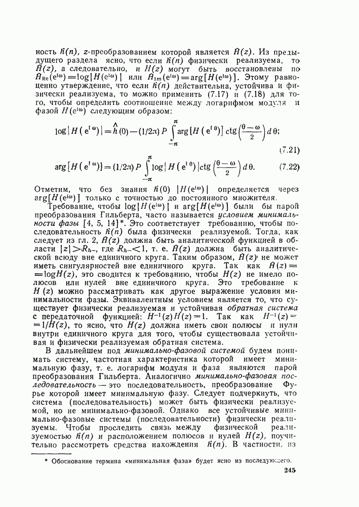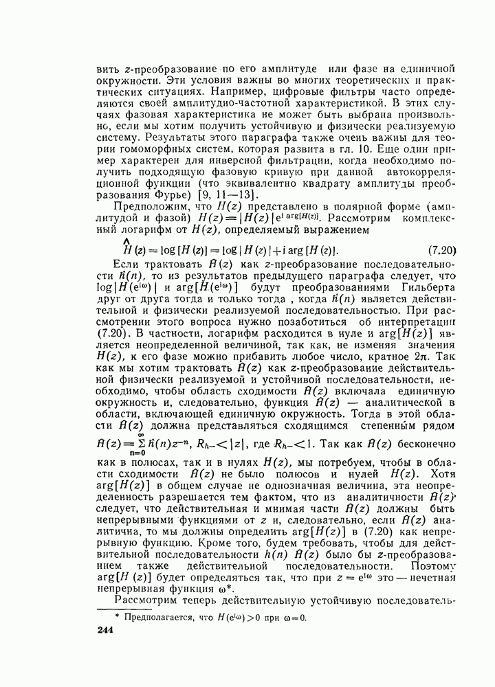 -преобразования установлена связь между логарифмом модуля и фазой для минимально-фазовой последовательности. В общем случае невозможно установить аналогичное соотношение между логарифмом модуля