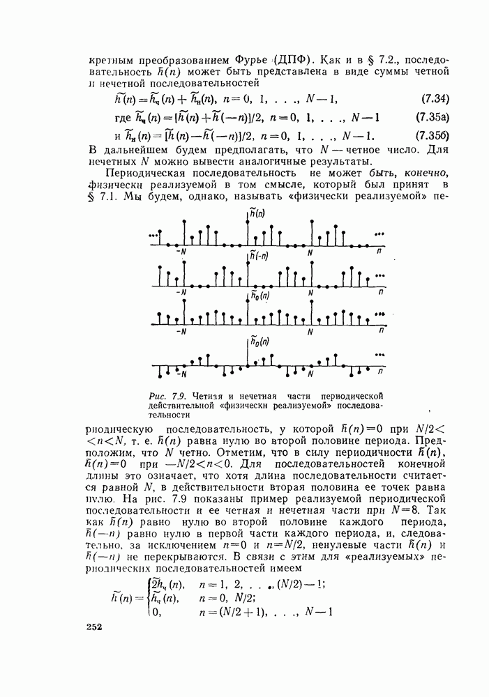 в действительности вторая половина ее точек равна нулю. На рис. 7.9 показаны пример реализуемой периодической последовательности и ее четная и нечетная части при