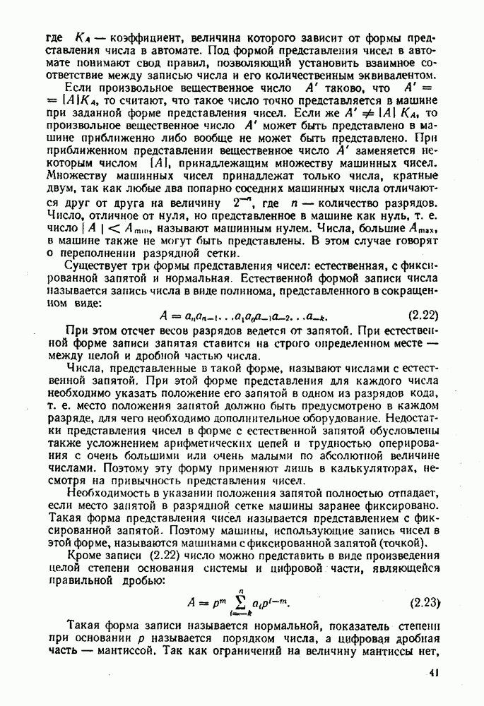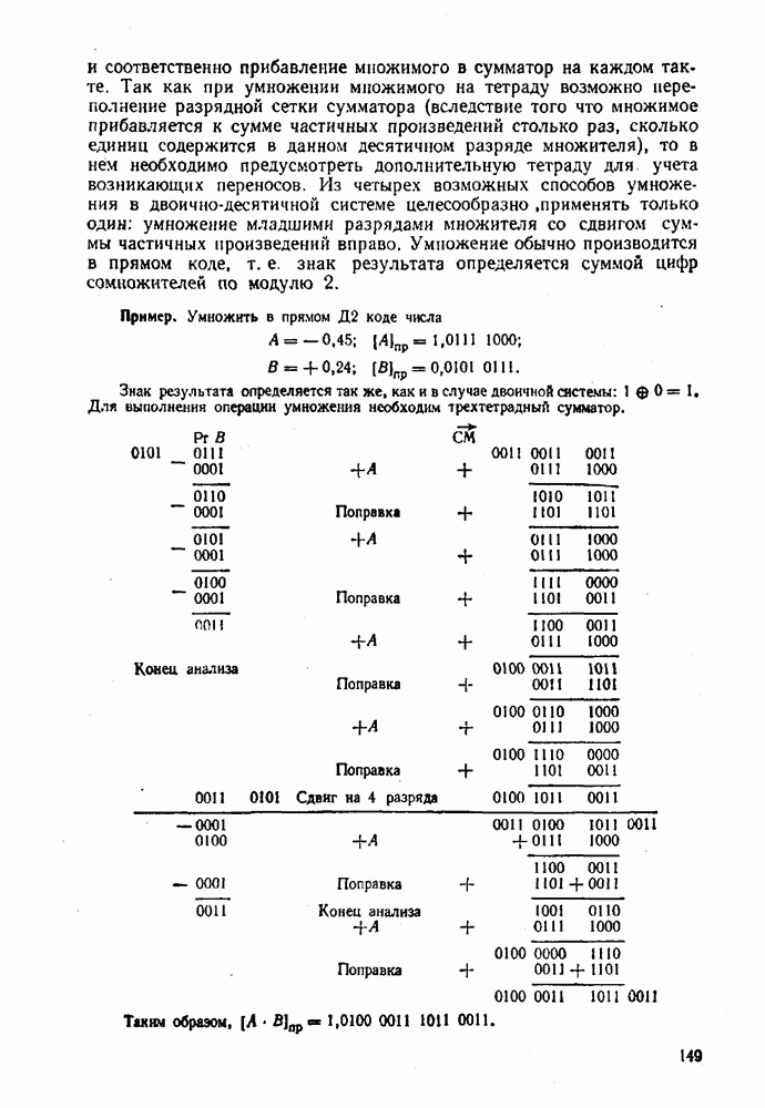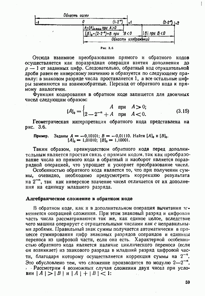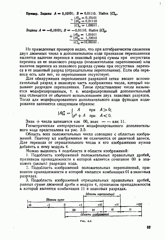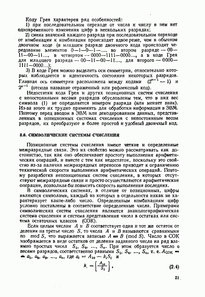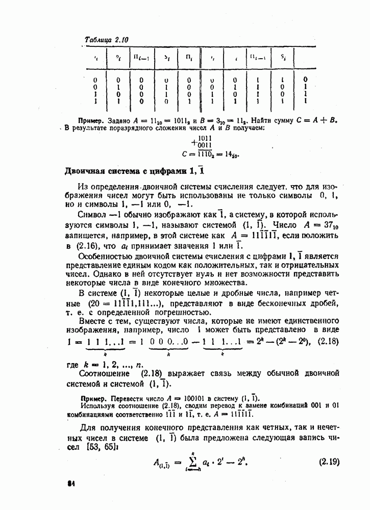 2.7. ПЕРЕВОД ЧИСЕЛ ИЗ ОДНОЙ СИСТЕМЫ СЧИСЛЕНИЯ В ДРУГУЮСуществует два основных метода перевода числа из одной системы счисления в другую: табличный и расчетный. Табличный метод прямого перевода основан на сопоставлении таблиц соответствия чисел различных систем счисления. Этот метод очень громоздок и требует большого объема памяти для хранения таблиц» но применим для любых систем счисления (не только для позиционных). Суть другого вида табличного метода состоит в том, что имеются таблицы эквивалентов в каждой системе только для цифр, т. е. баз, этих систем и степеней основания (положительных и отрицательных), т. е. базиса систем. Задача перевода сводится к тому, что в выражения полиномов (2.2) и (2.3) для исходной системы счисления представляют эквиваленты ил новой системы для всех цифр и их весов разрядов и производят действия (умножения и сложения) по правилам арифметики по новому основанию Пример. Число Таблица эквивалентов
