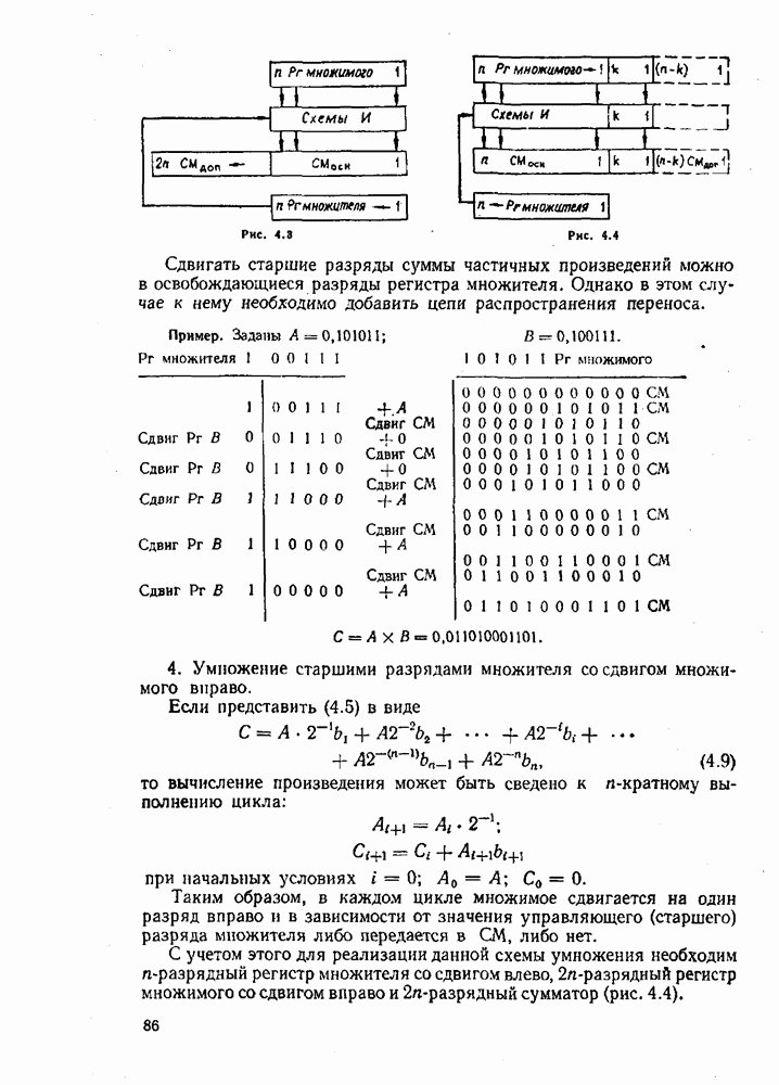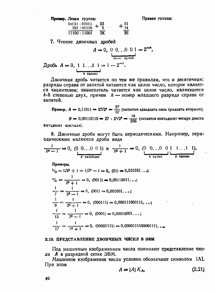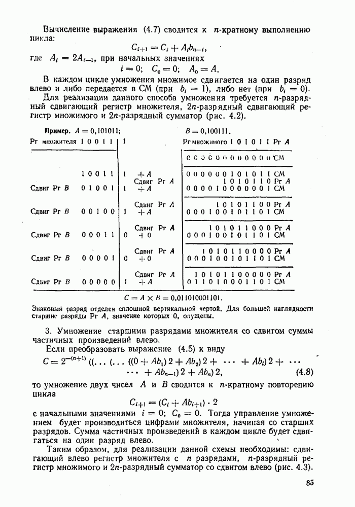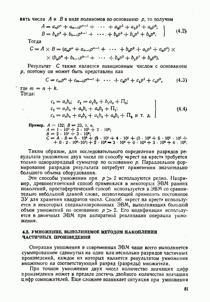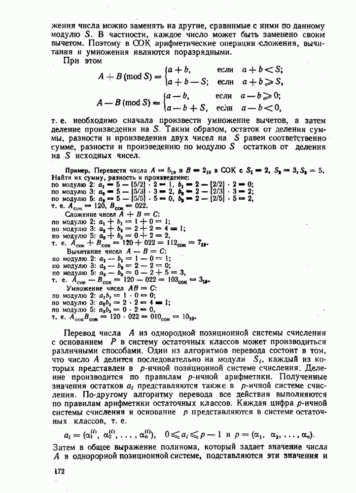 т. е. получим б) при переводе из двоичной системы счисления в десятичную исходное число не обходимо делить на основание новой системы, т. е. 1010. Деление выполнять в двоичной системе трудно. Поэтому на практике при необходимости перевода чисел из системы с малым основанием в систему с большим основанием удобно пользоваться общей записью чисел в виде полинома (2.5). В общем случае можно вычислить многочлен
