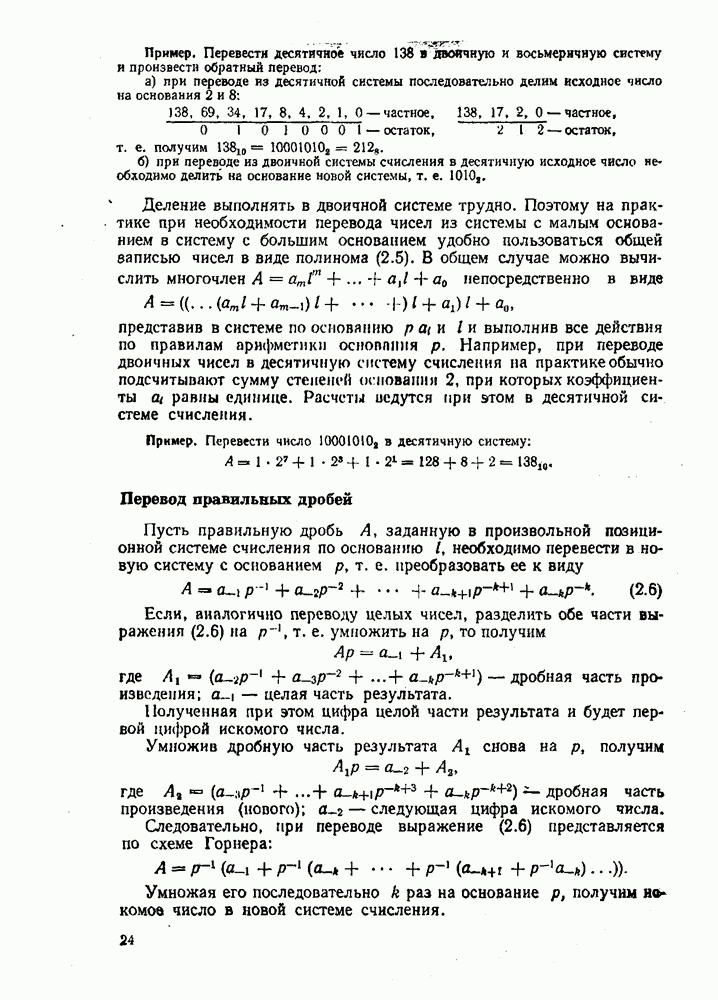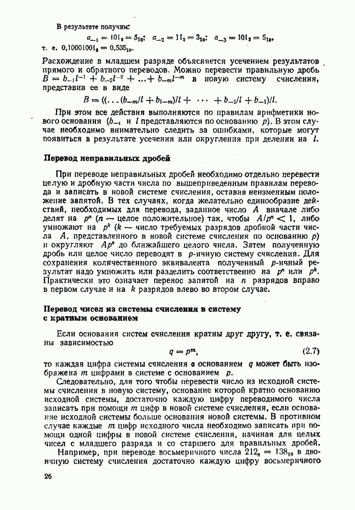 Если, аналогично переводу целых чисел, разделить обе части выражения (2.6) на