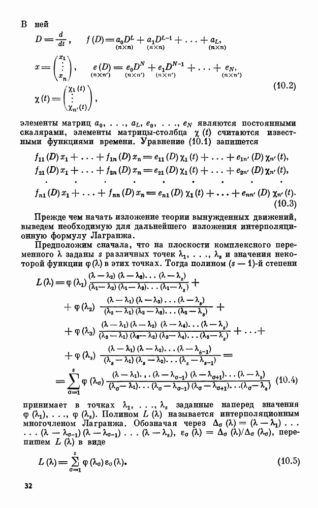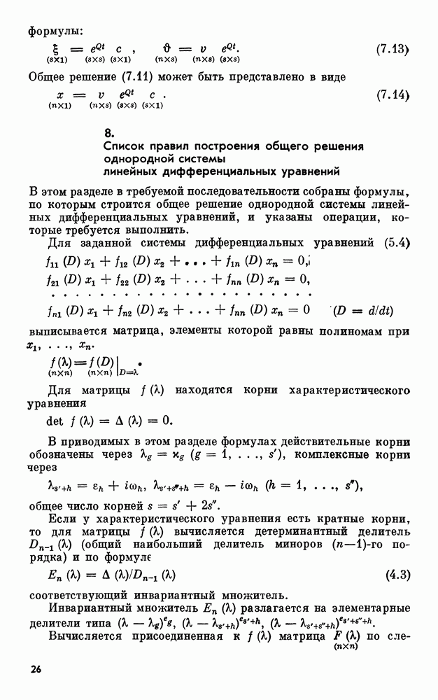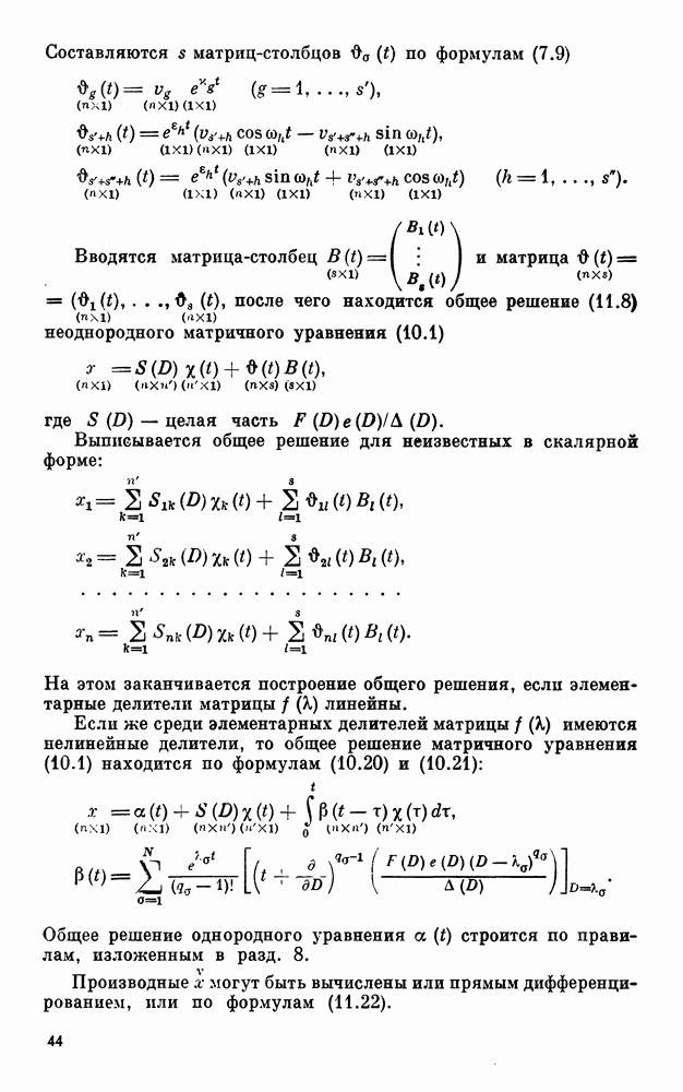 Решение (7.2) можно также представить в другой форме. Для этого введем матрицу