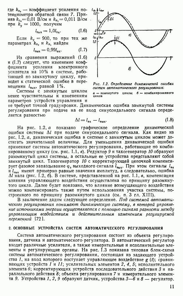 Используя рис. 1.4, а, нетрудно найти зависимость динамической ошибки от времени для системы автоматического регулирования в установившемся состоянии. Динамическая ошибка системы определяется с помощью следующего выражения: