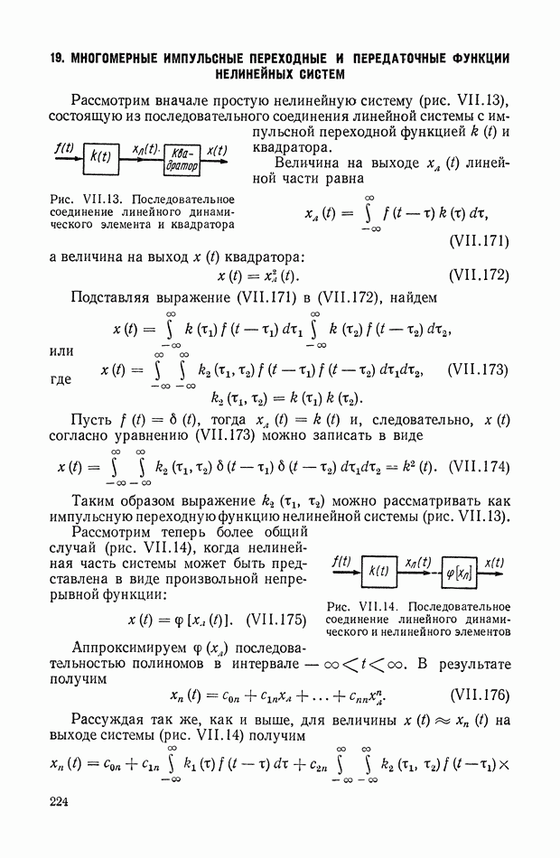 Рассмотрим вначале простую нелинейную систему (рис. VII. 13), состоящую из последовательного соединения линейной системы с импульсной переходной функцией
