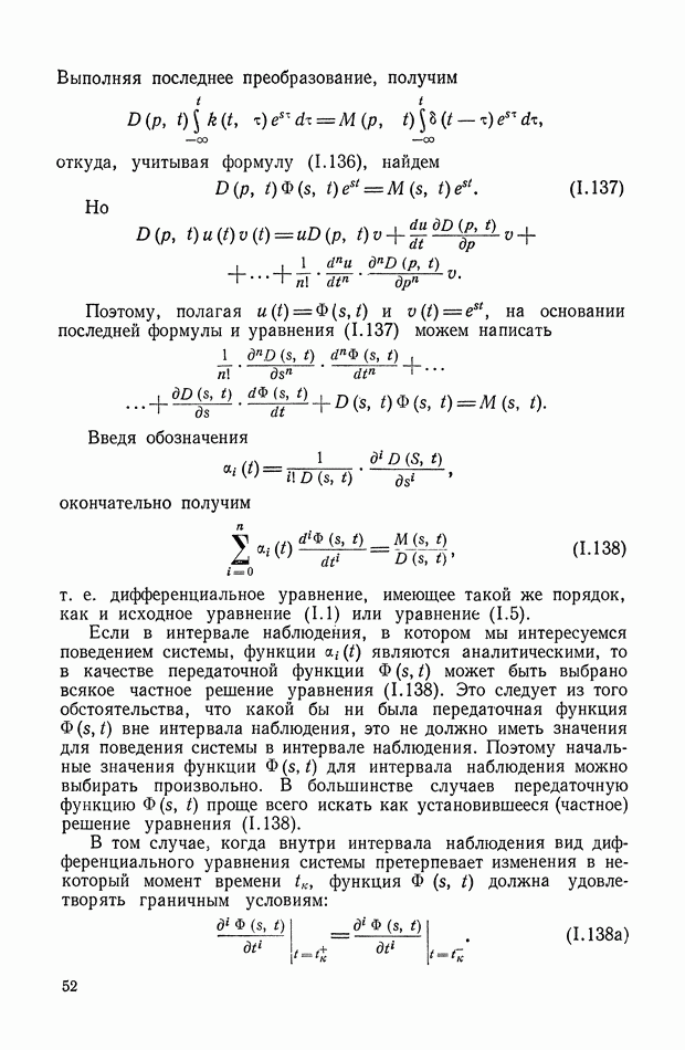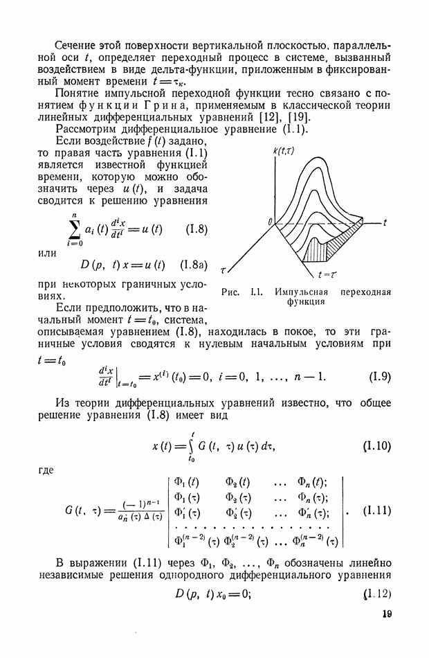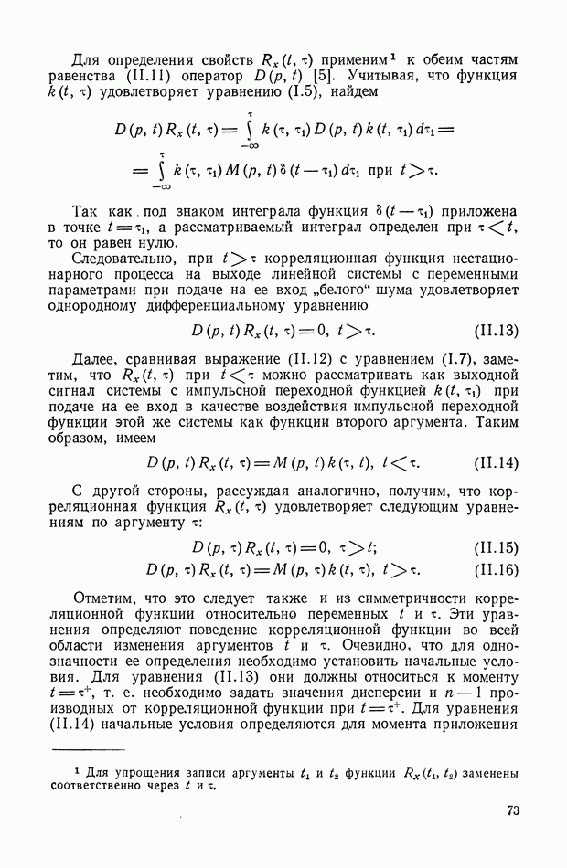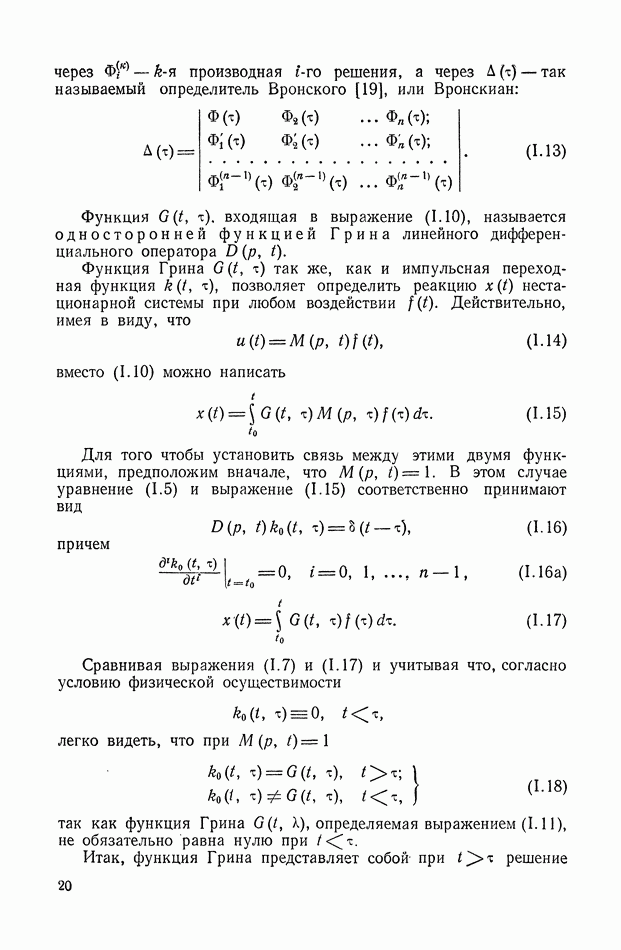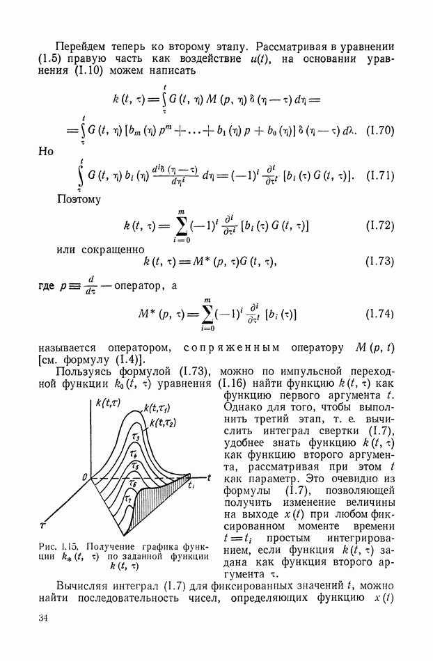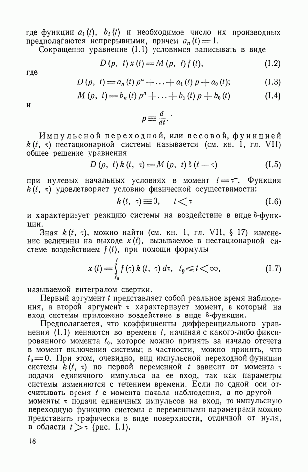 Установим теперь связь двумерной нестационарной передаточной функции с дифференциальным уравнением системы. Для этого можно было бы воспользоваться уравнением (IV.82) и выражением сопряженной передаточной функции через двумерную (IV.47).