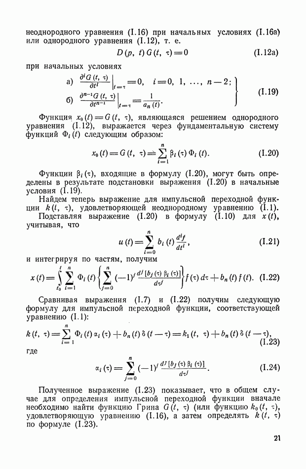 . Аналогично можно показать, что нестационарная нормальная передаточная функция системы является решением дифференциального уравнения, сопряженного с исходным, при