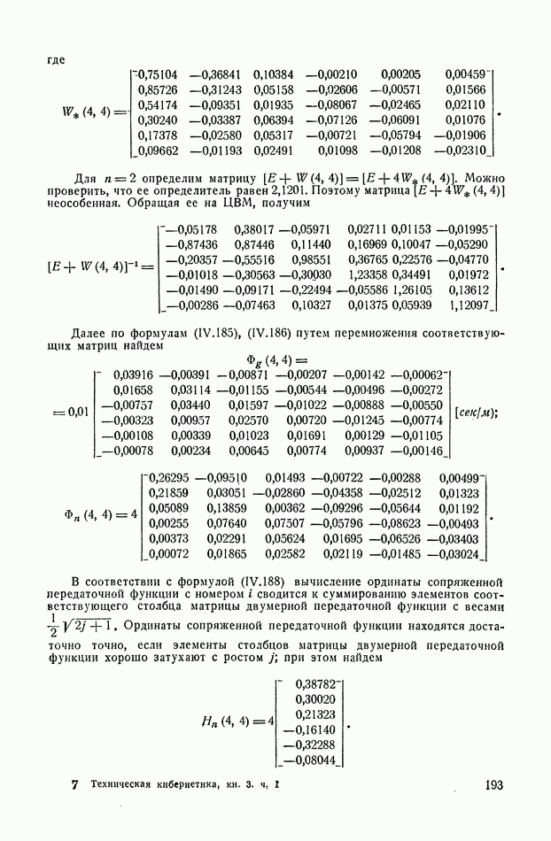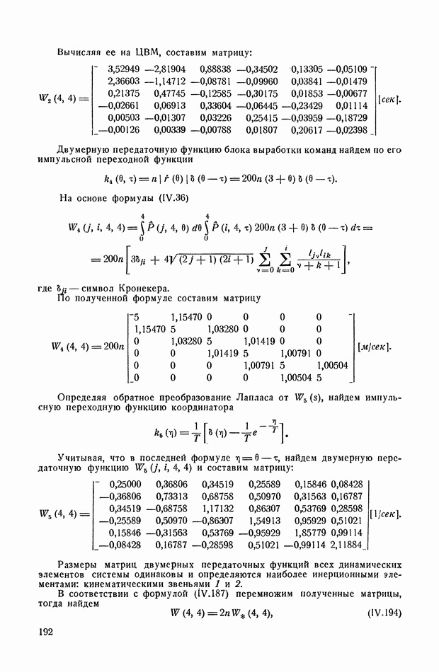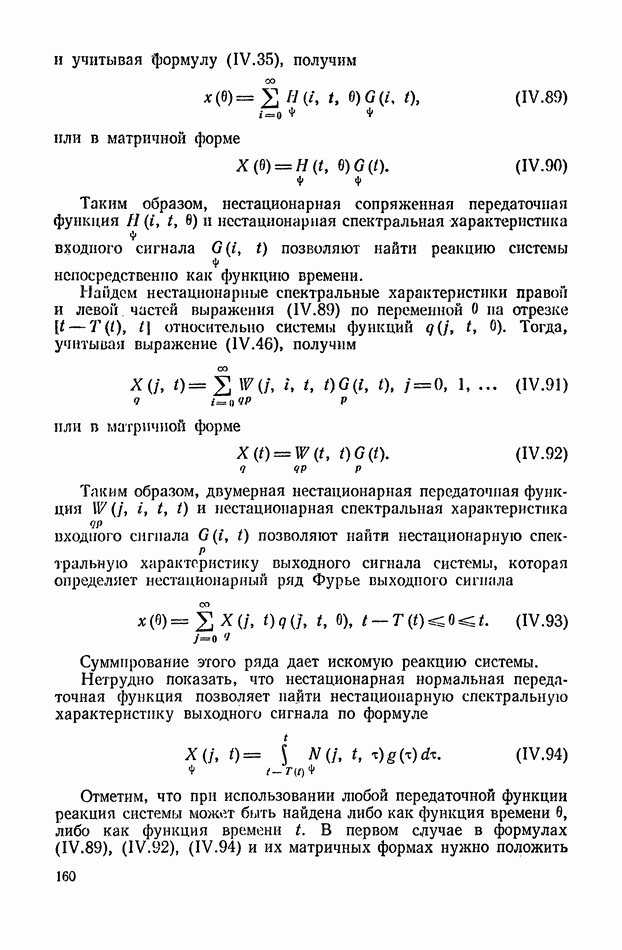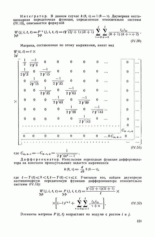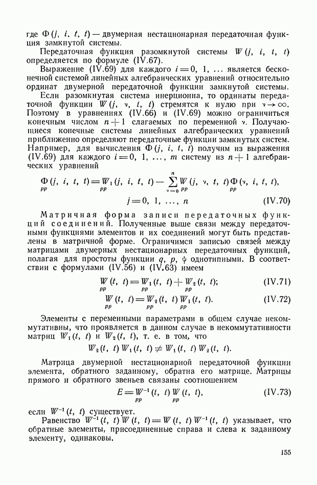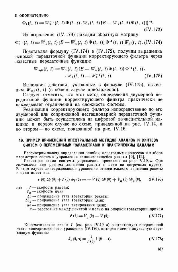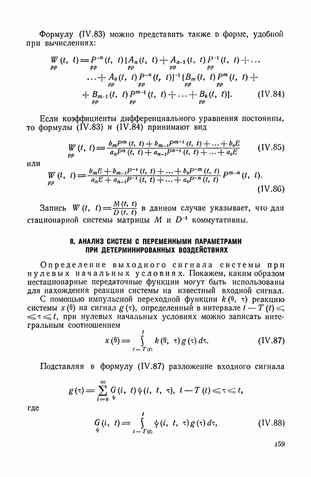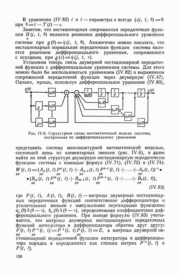 определяемыми коэффициентами дифференциального уравнения. При выводе формулы (IV.83) учитывается, что матрицы двумерных нестационарных передаточных функций интегратора и дифференциатора обратны друг другу: