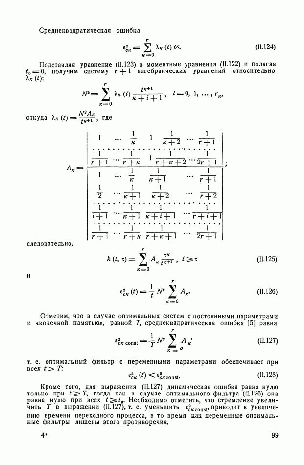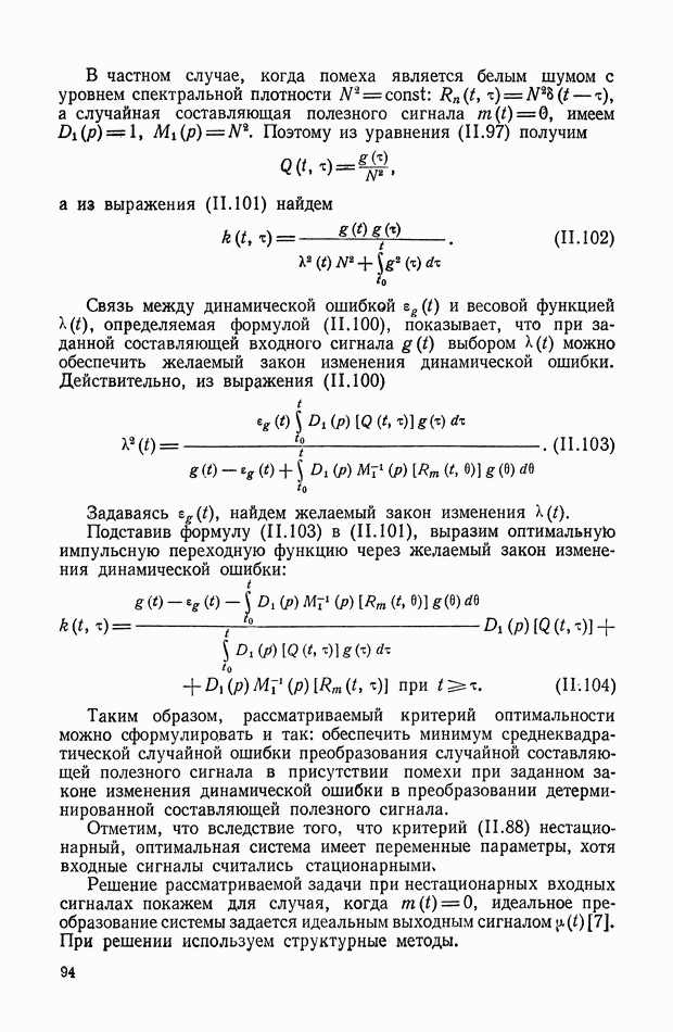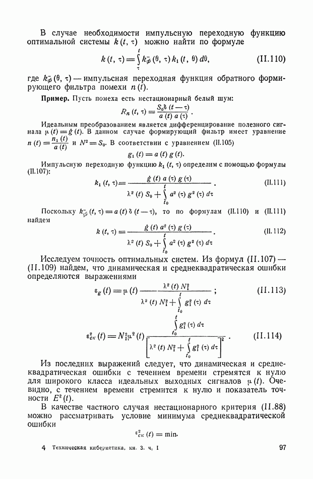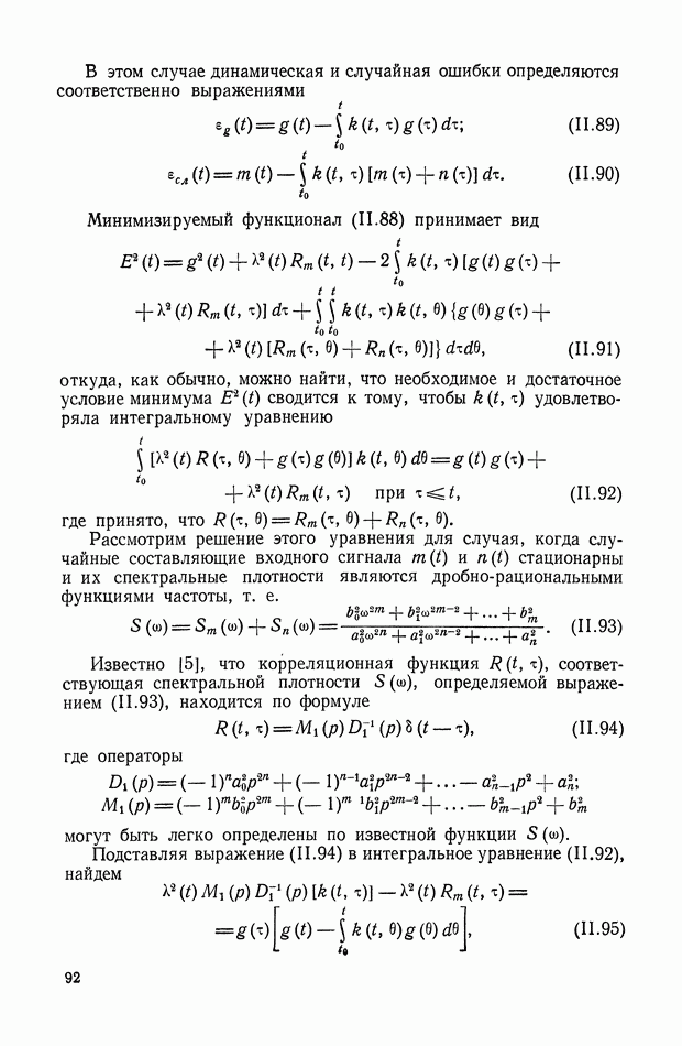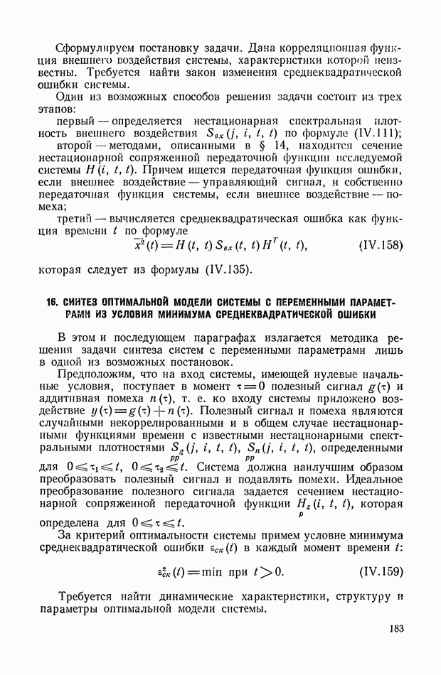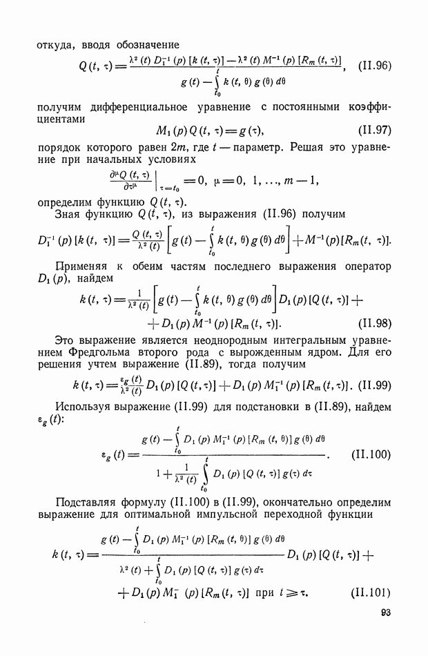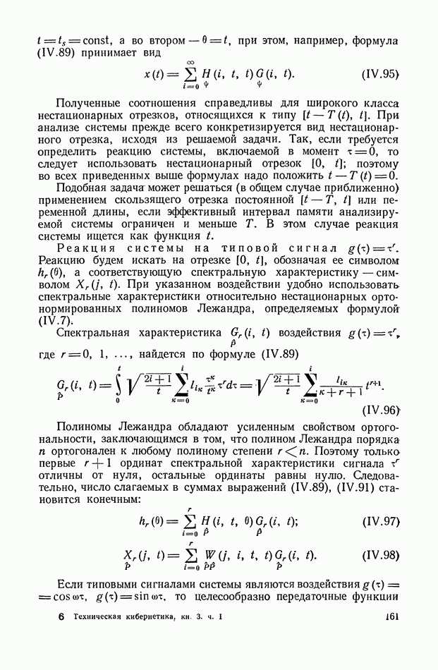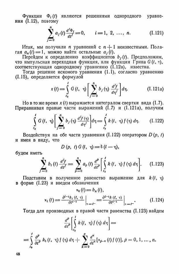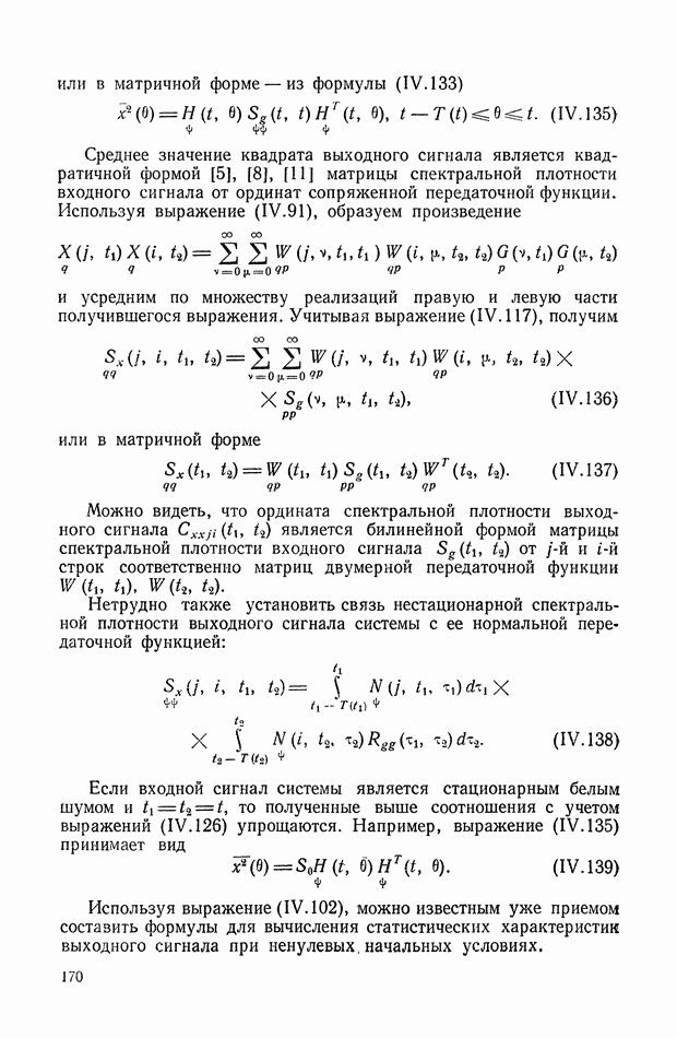 определяемыми коэффициентами дифференциального уравнения. При выводе формулы (IV.83) учитывается, что матрицы двумерных нестационарных передаточных функций интегратора и дифференциатора обратны друг другу: